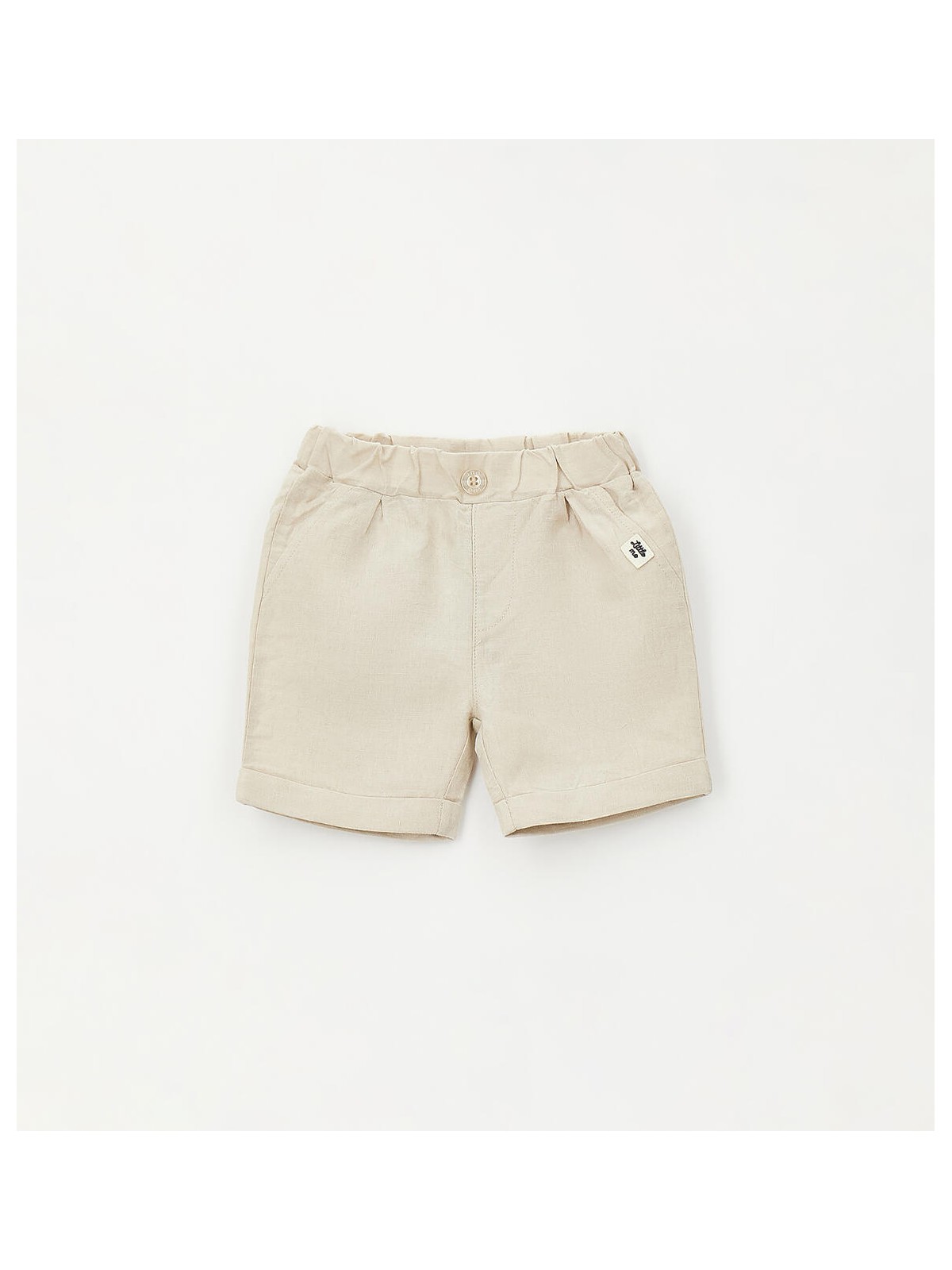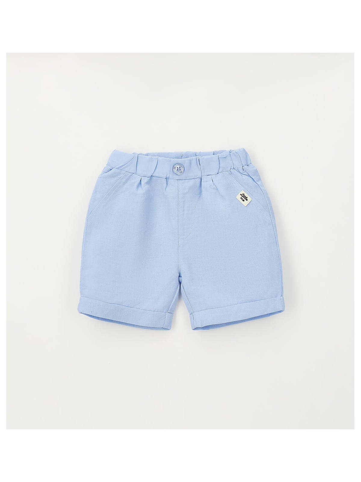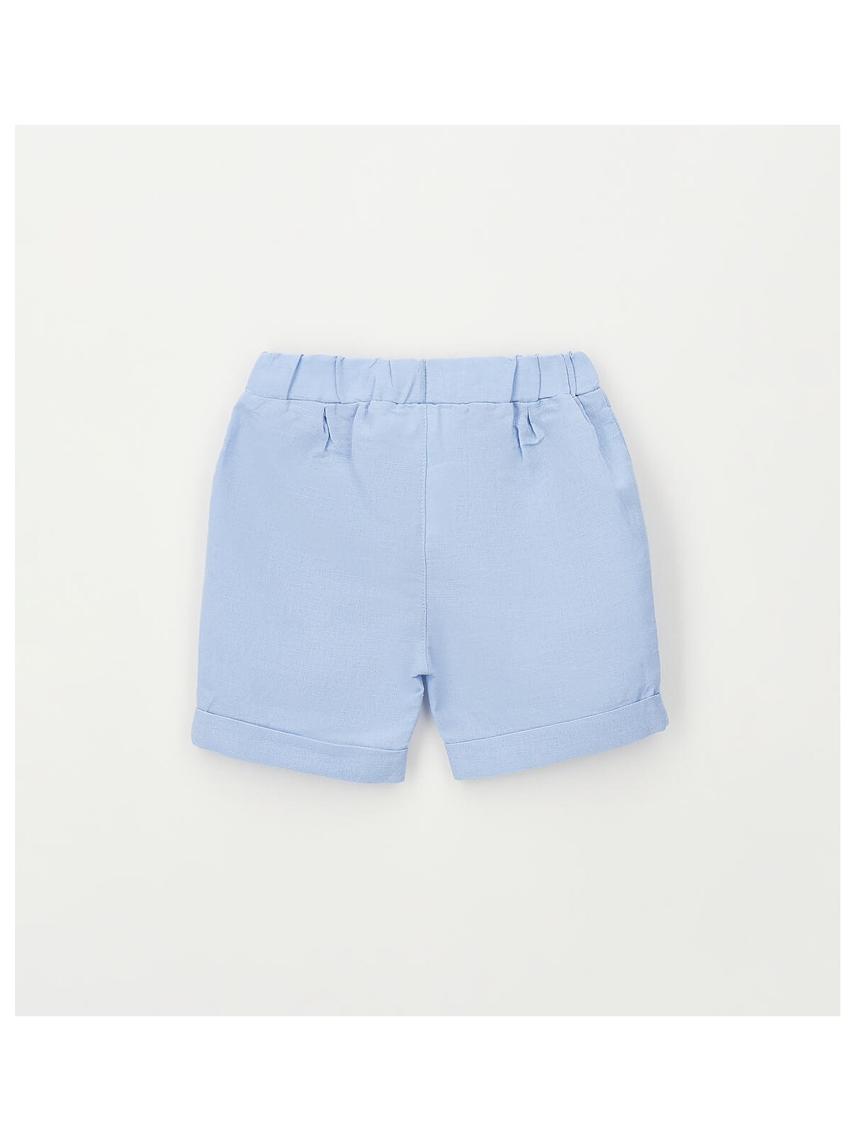 Fresco ed elagante pantalone corto in lino e cotone. Finta apertura e finte tasche. Risvoltino sul fondo. Cavallo calato