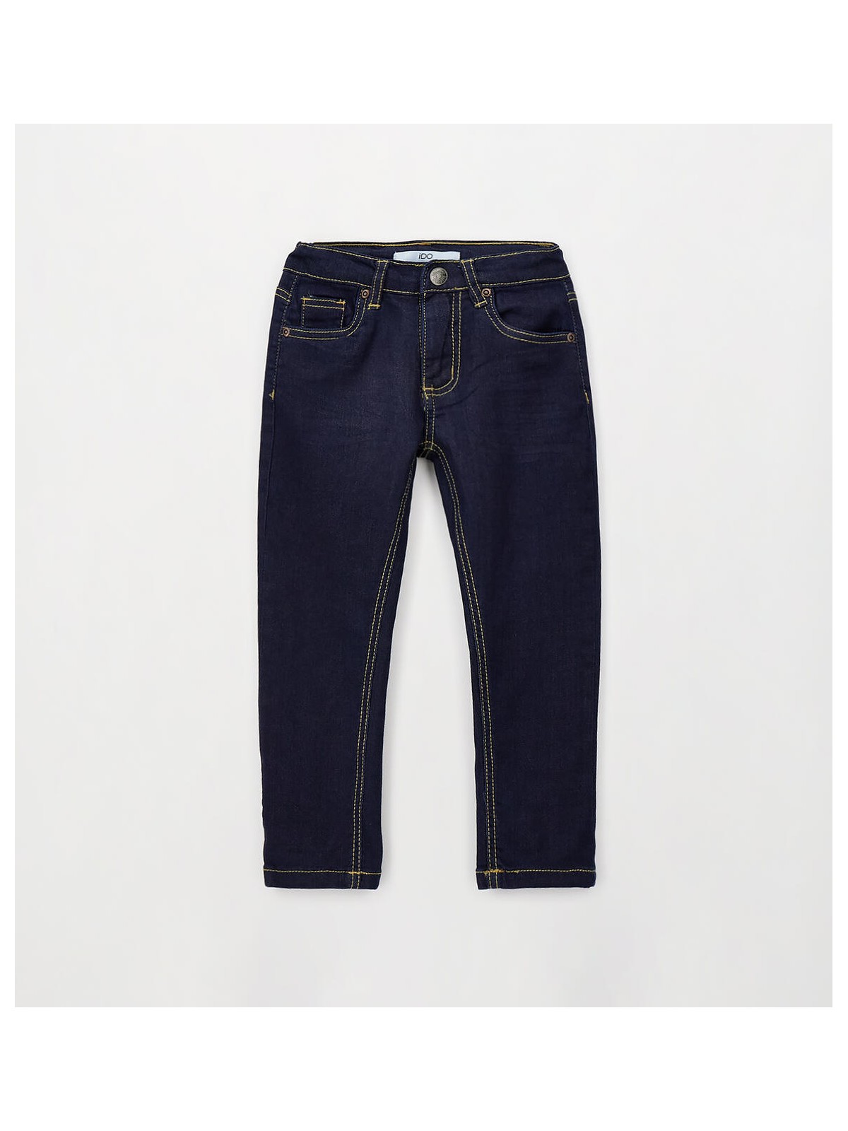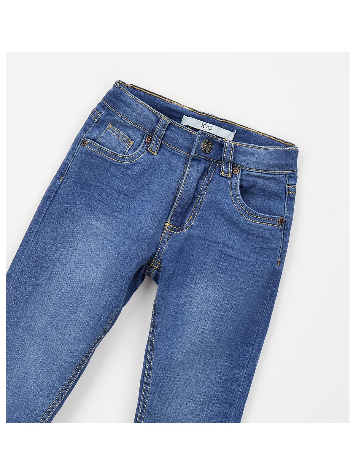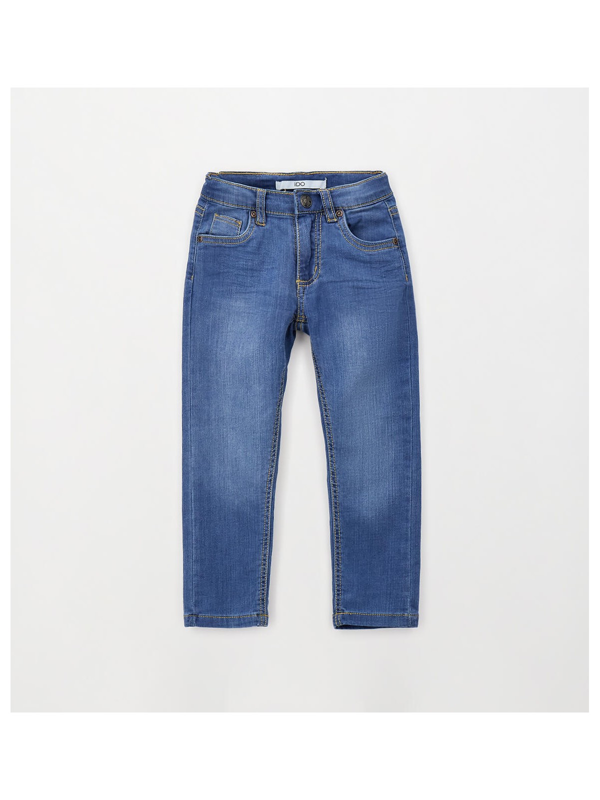 Pantalone lungo in denim maglia di cotone per bambino iDO. Regular fit. Vita regolabile con elastico asolato interno. Apertura con zip e bottone.
