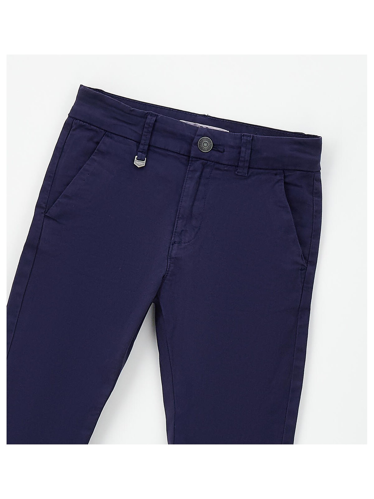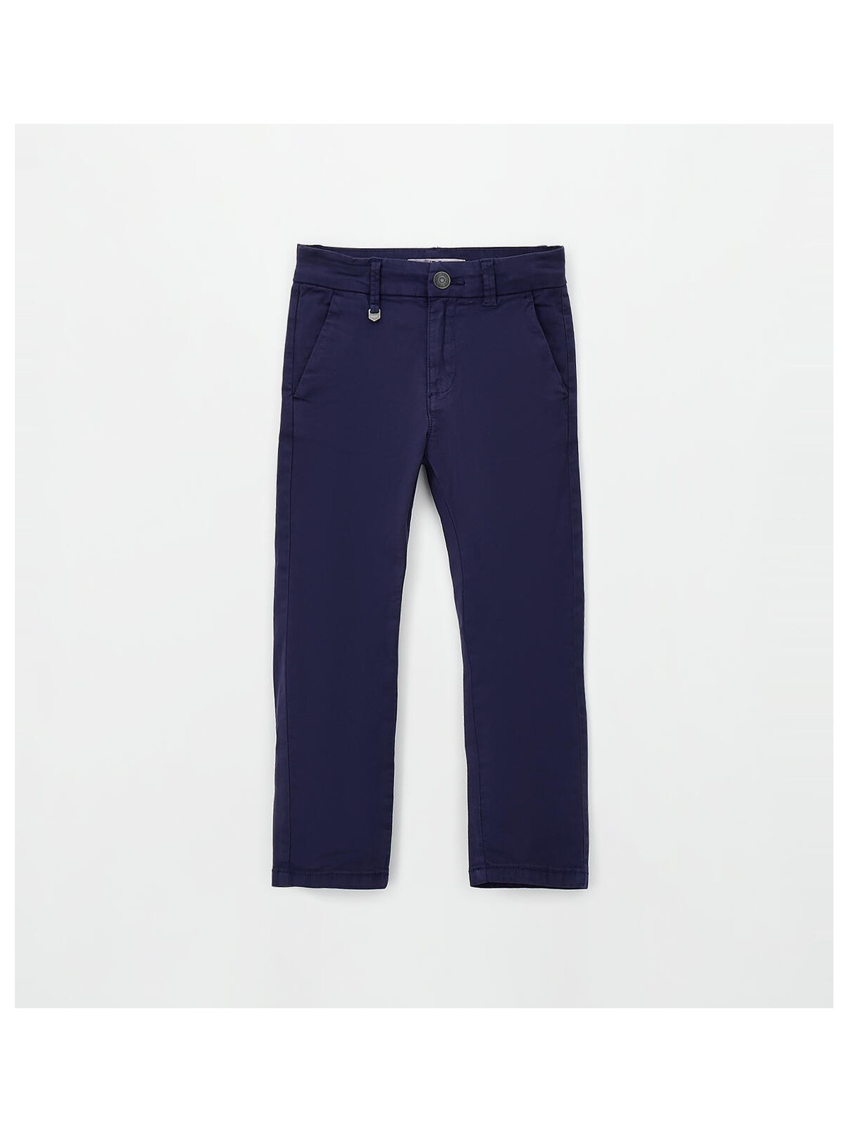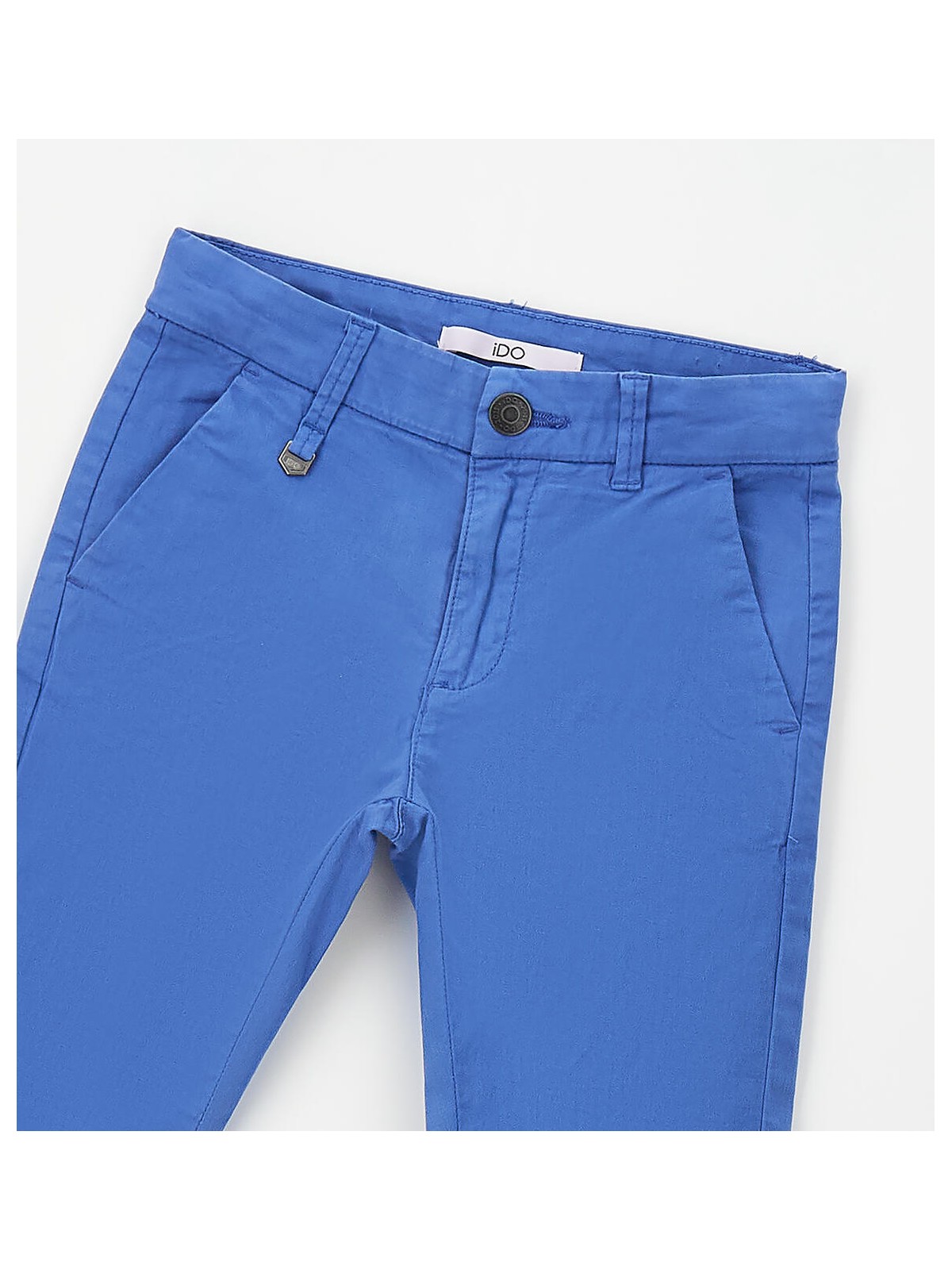 Pantalone lungo per bambino iDO realizzato in twill stretch di cotone. Regular fit. Vita regolabile con elastico asolato interno. Apertura con zip e bottone