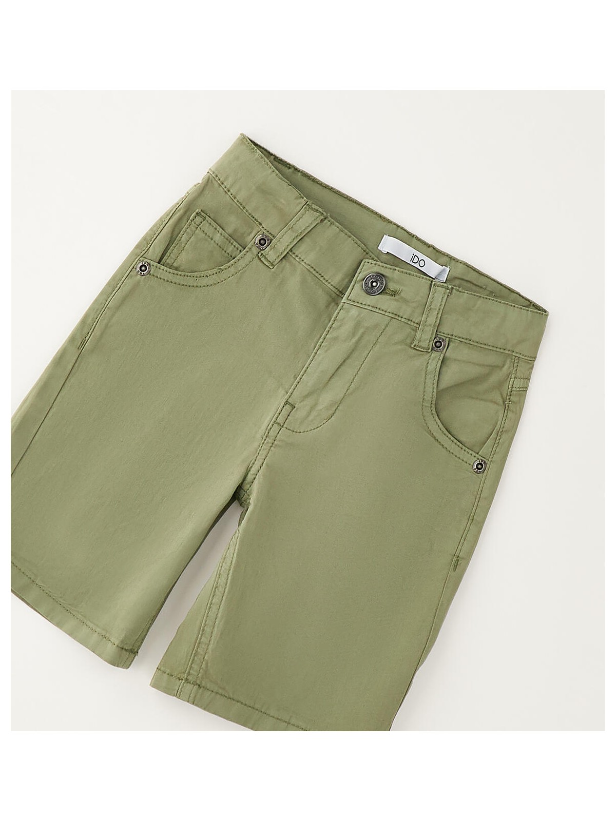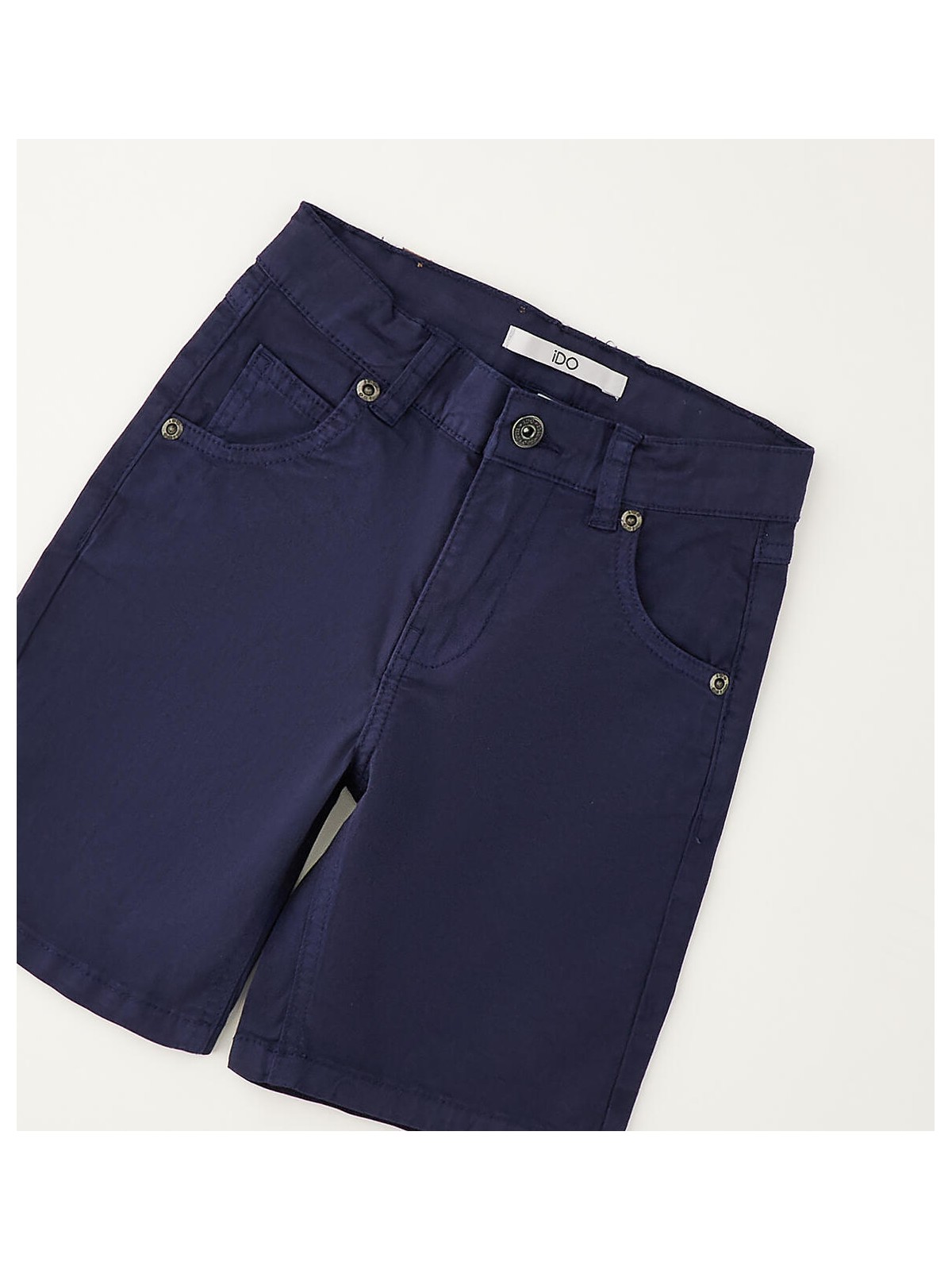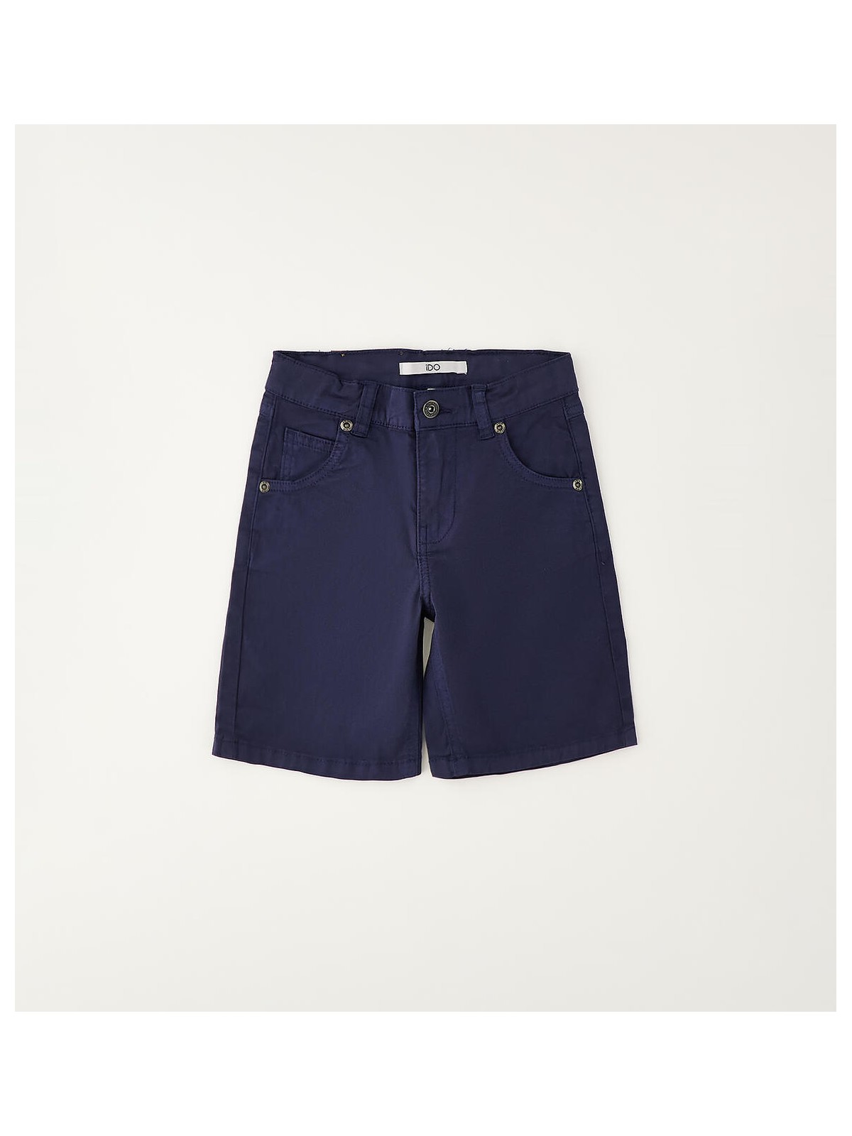 Pantalone corto per bambino iDO realizzato in twill stretch di cotone. Apertura con zip e bottone. Lunghezza al ginocchio. Vestibilità regular. Vita regolabile con elastico asolato interno.