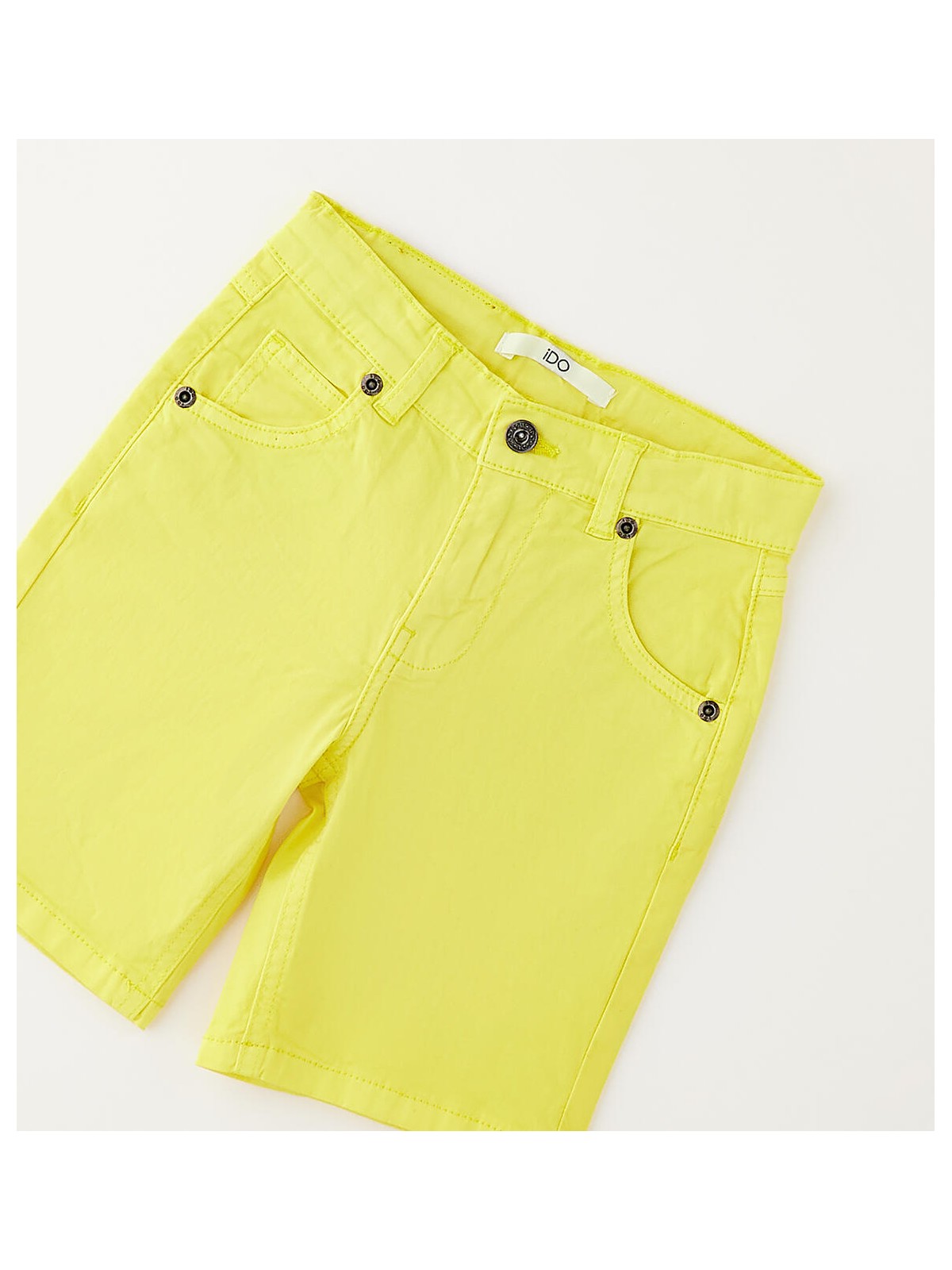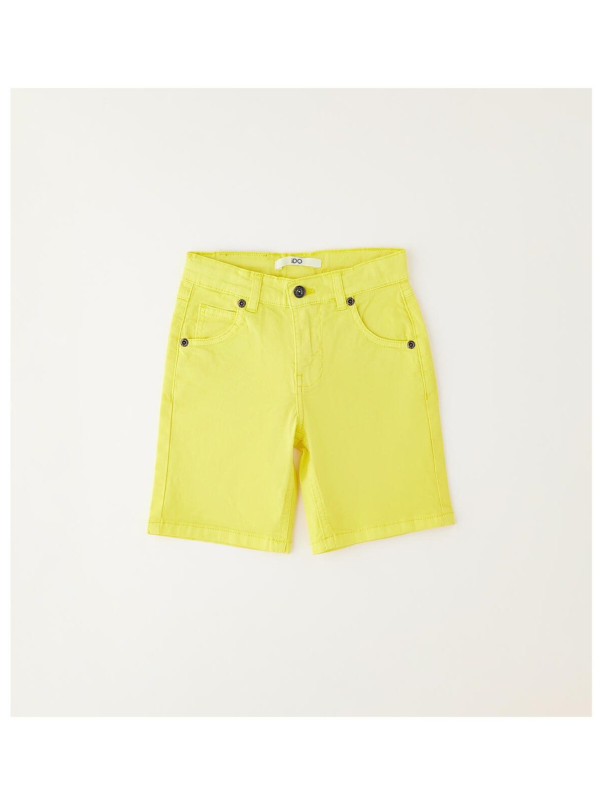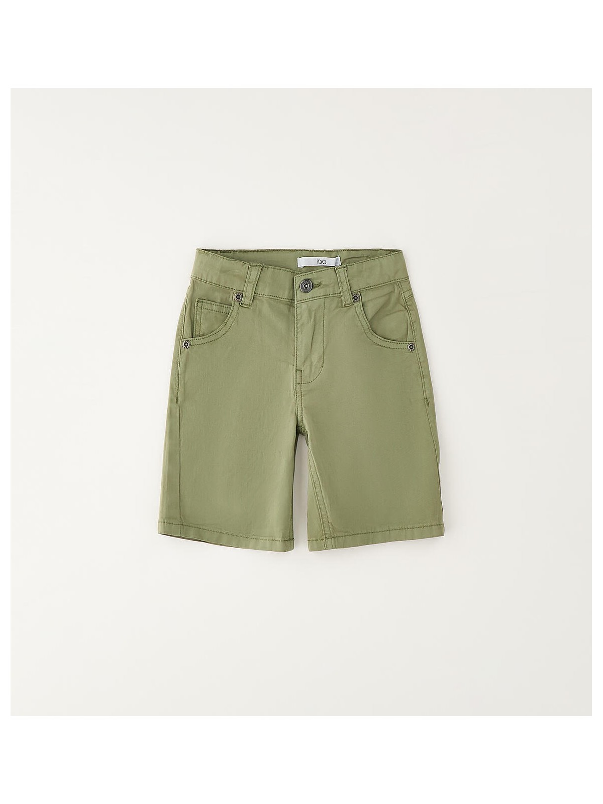 Pantalone corto per bambino iDO realizzato in twill stretch di cotone. Apertura con zip e bottone. Lunghezza al ginocchio. Vestibilità regular. Vita regolabile con elastico asolato interno.