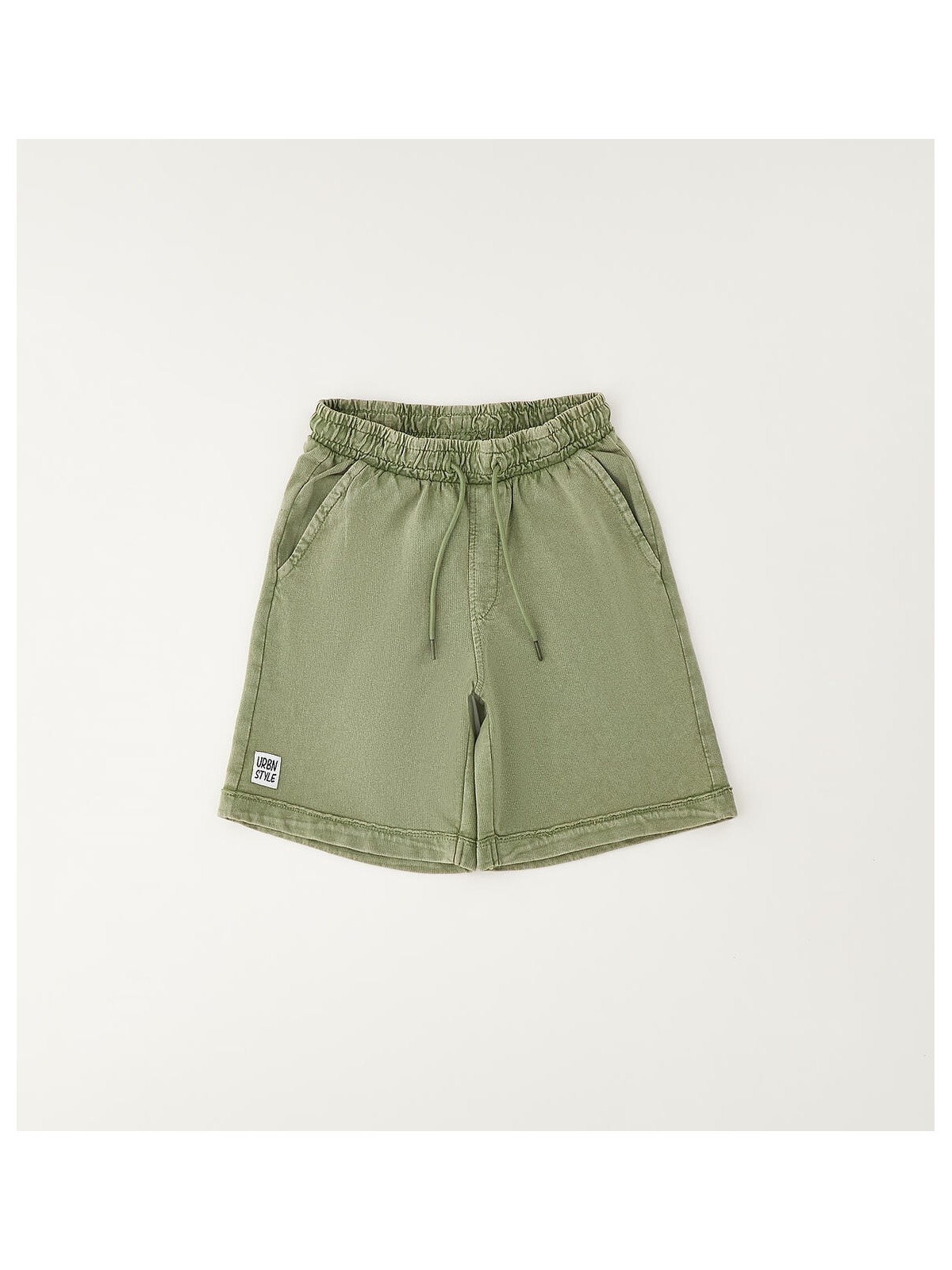 Pantalone corto in felpa 100% cotone per bambino iDO con elastico in vita e coulisse. Modello basket con lunghezza al ginocchio. Etichetta Urbn Style in applicazione