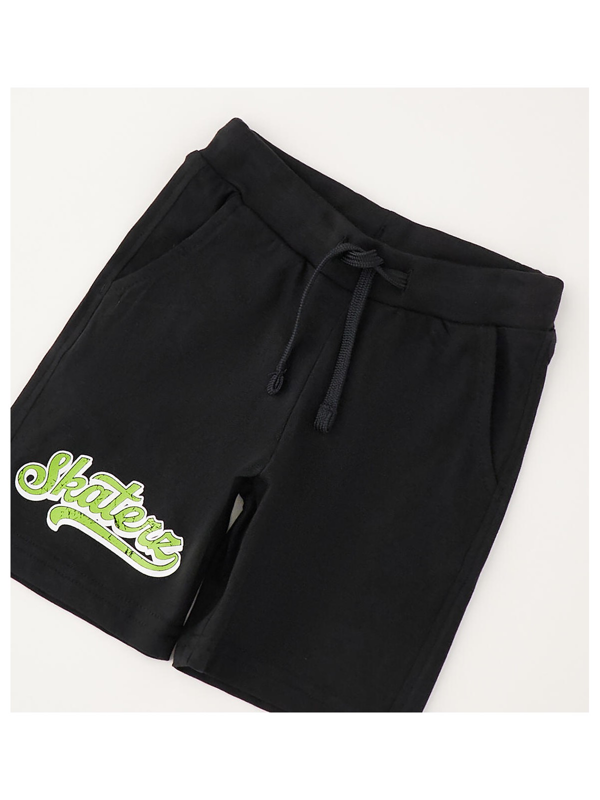 Pantalone corto in jersey 100% cotone per bambino iDO con stampa tema skate. Lunghezza al ginocchio. Elastico in vita con coulisse