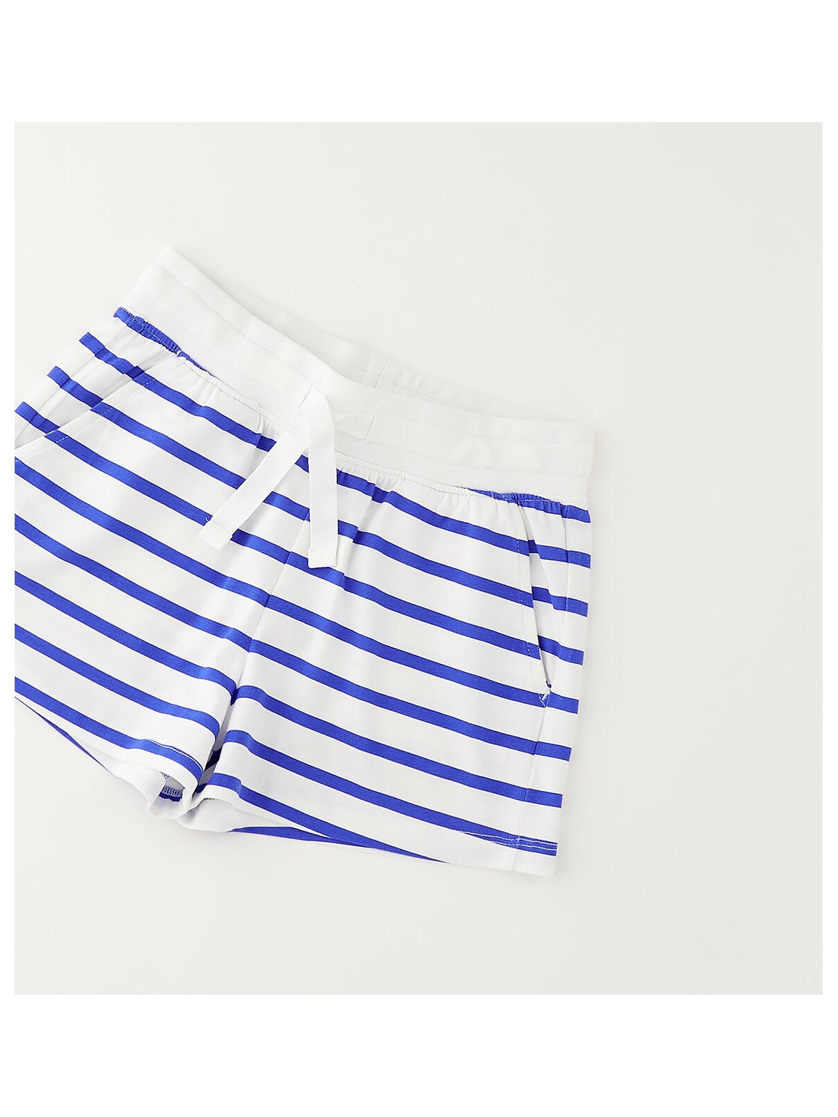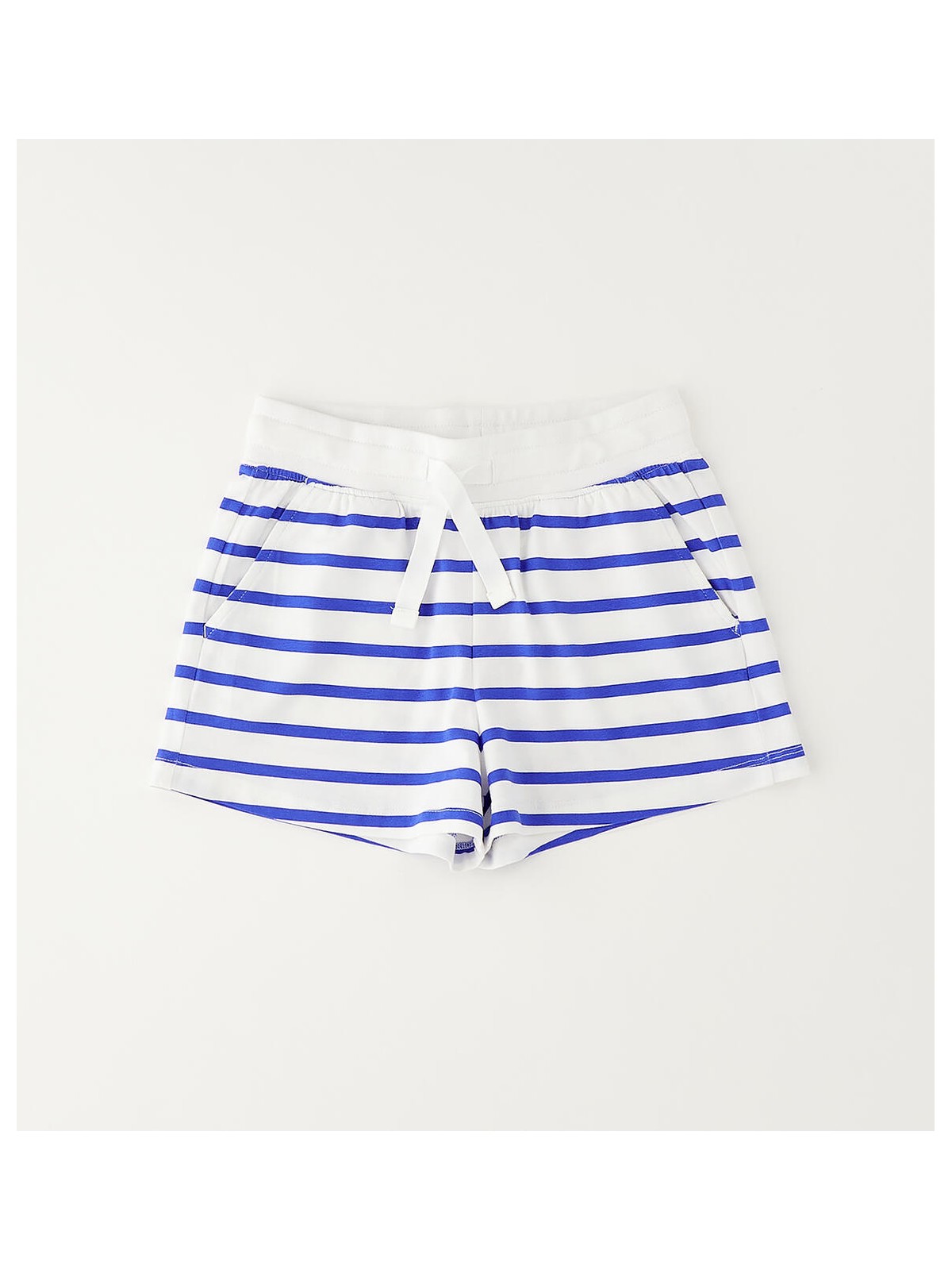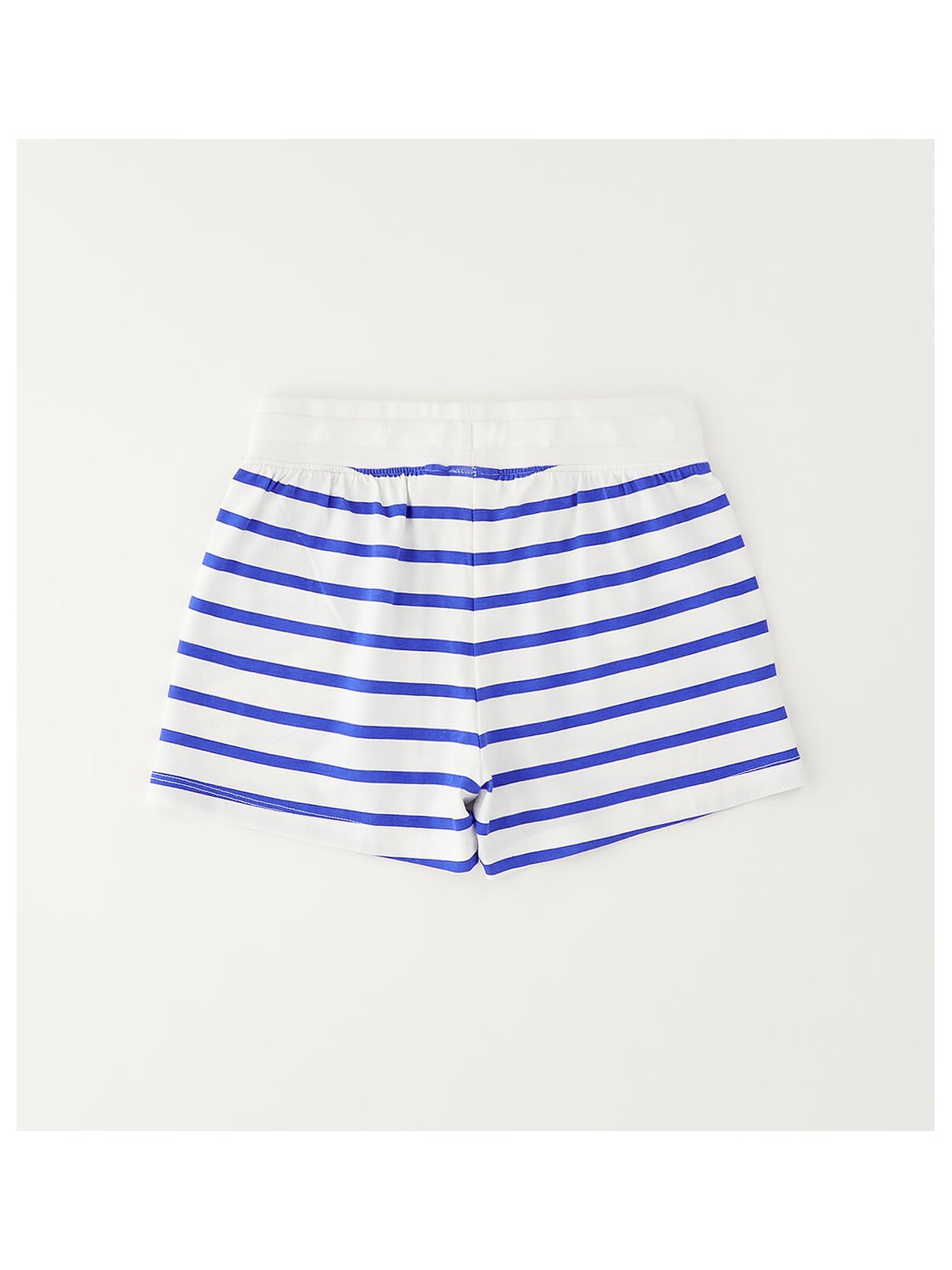 Pantalone corto per ragazza iDO realizzato in jersey stretch di cotone. Fantasia a righe, elastico in vita e coulisse