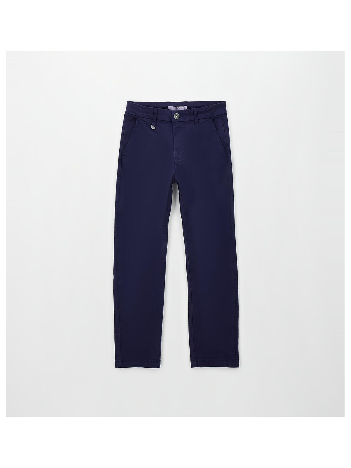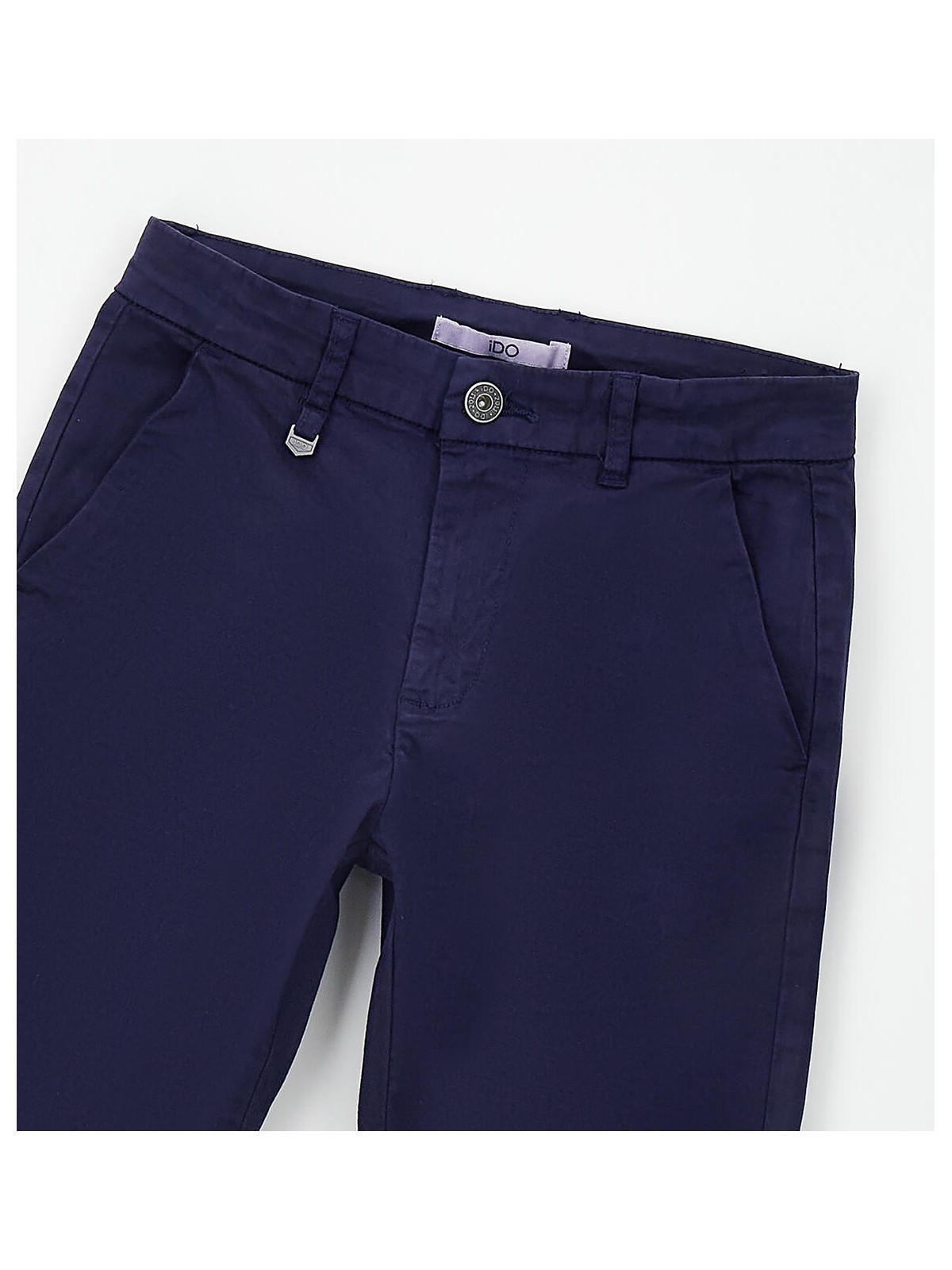 Pantalone lungo per ragazzo iDO realizzato in twill stretch di cotone con apertura tramite zip e bottone. Regula fit. Vita regolabile con elastico asolato interno