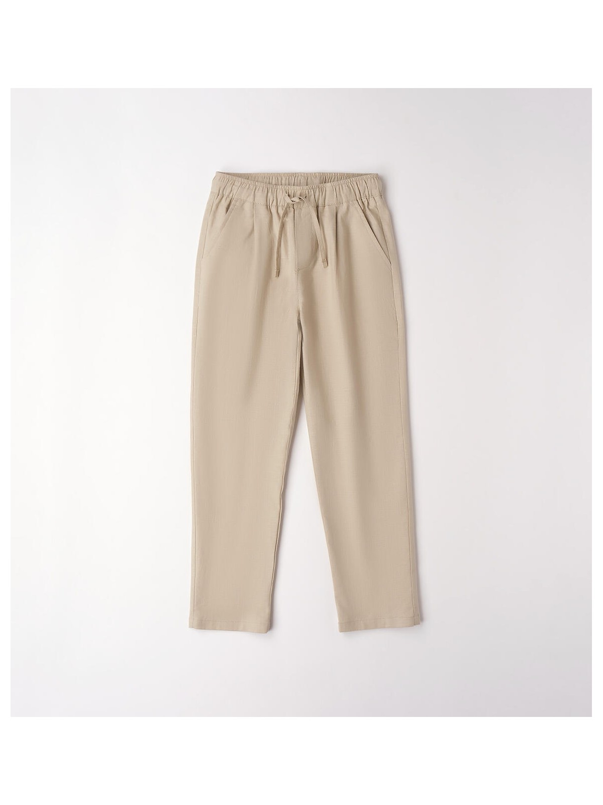 Pantalone lungo per ragazzo iDO realizzato in lino e cotone. Elastico in vita e coulisse. Relaxed fit. Vita regolabile con elastico asolato interno