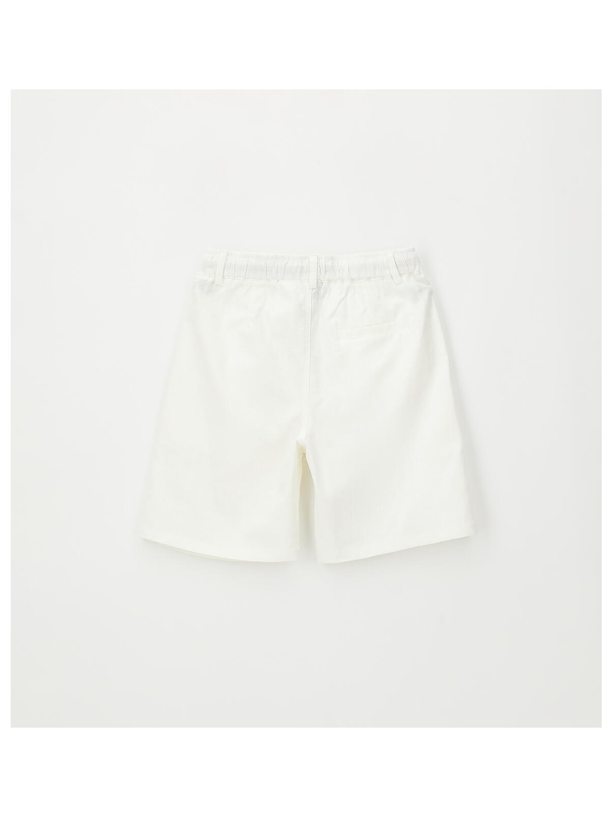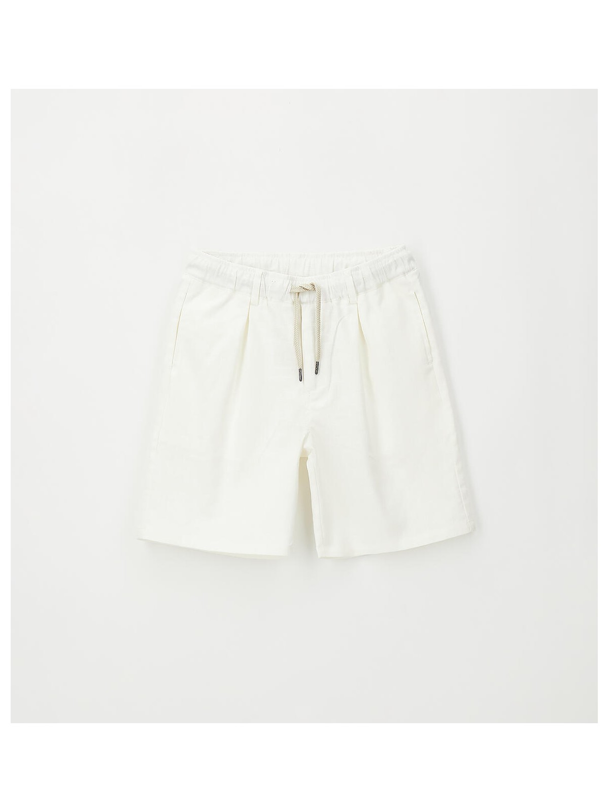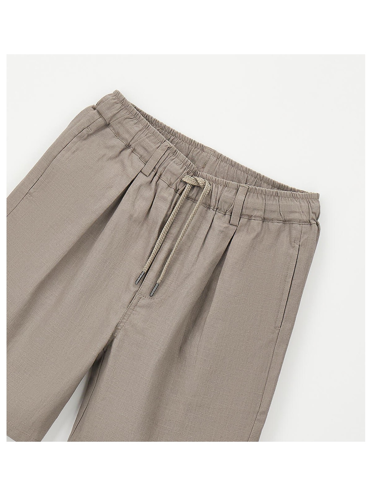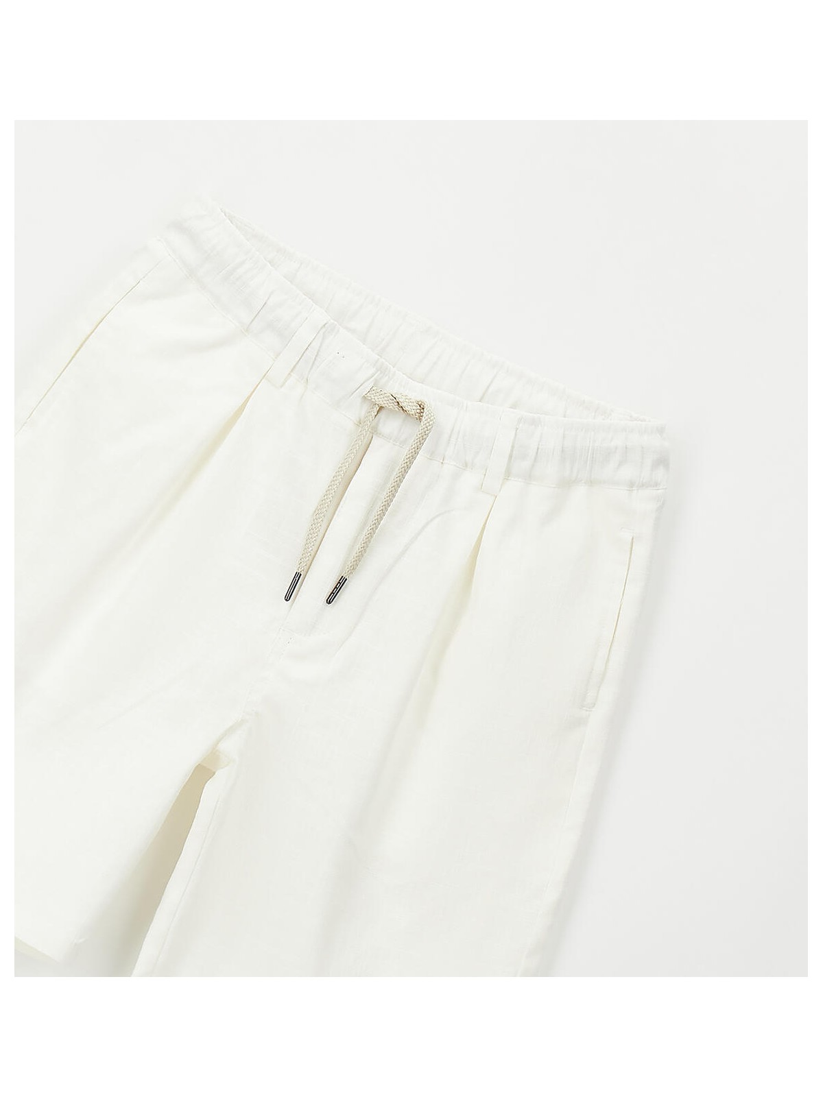 Pantalone corto per ragazzo Sarabanda realizzato in lino e cotone con elastico in vita e coulisse. Lunghezza al ginocchio. Carrot fit