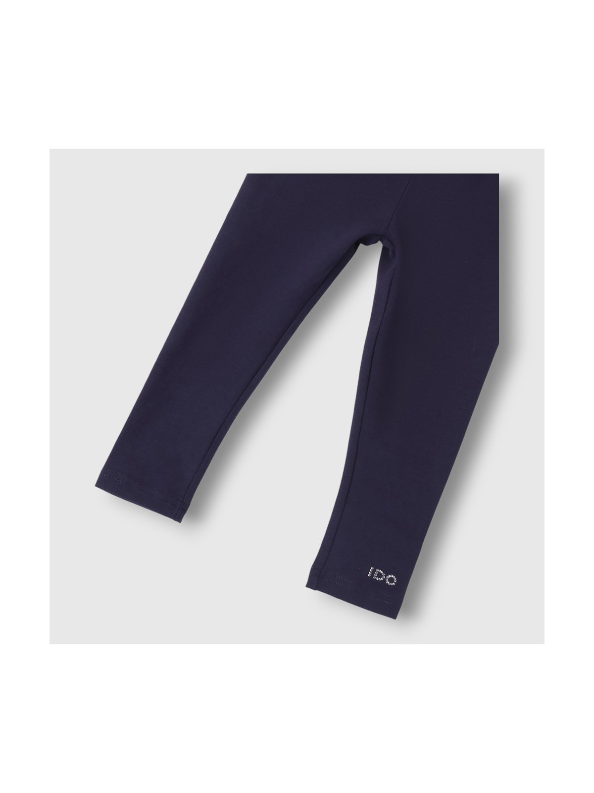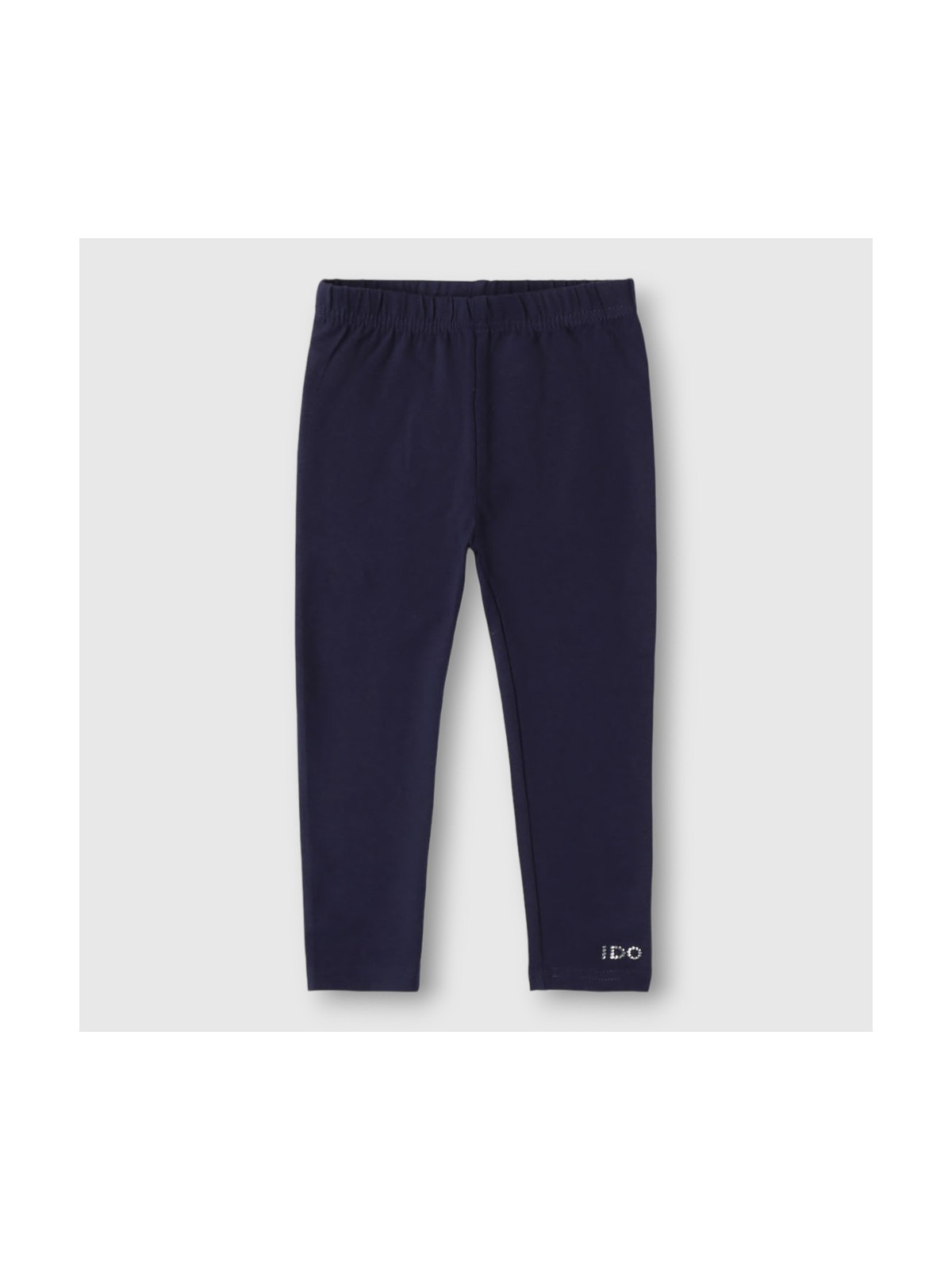 Leggings iDO per bambina da 9 mesi a 8 anni realizzato in jersey stretch di cotone tinta unita dettaglio logo con strass sul fondo.
