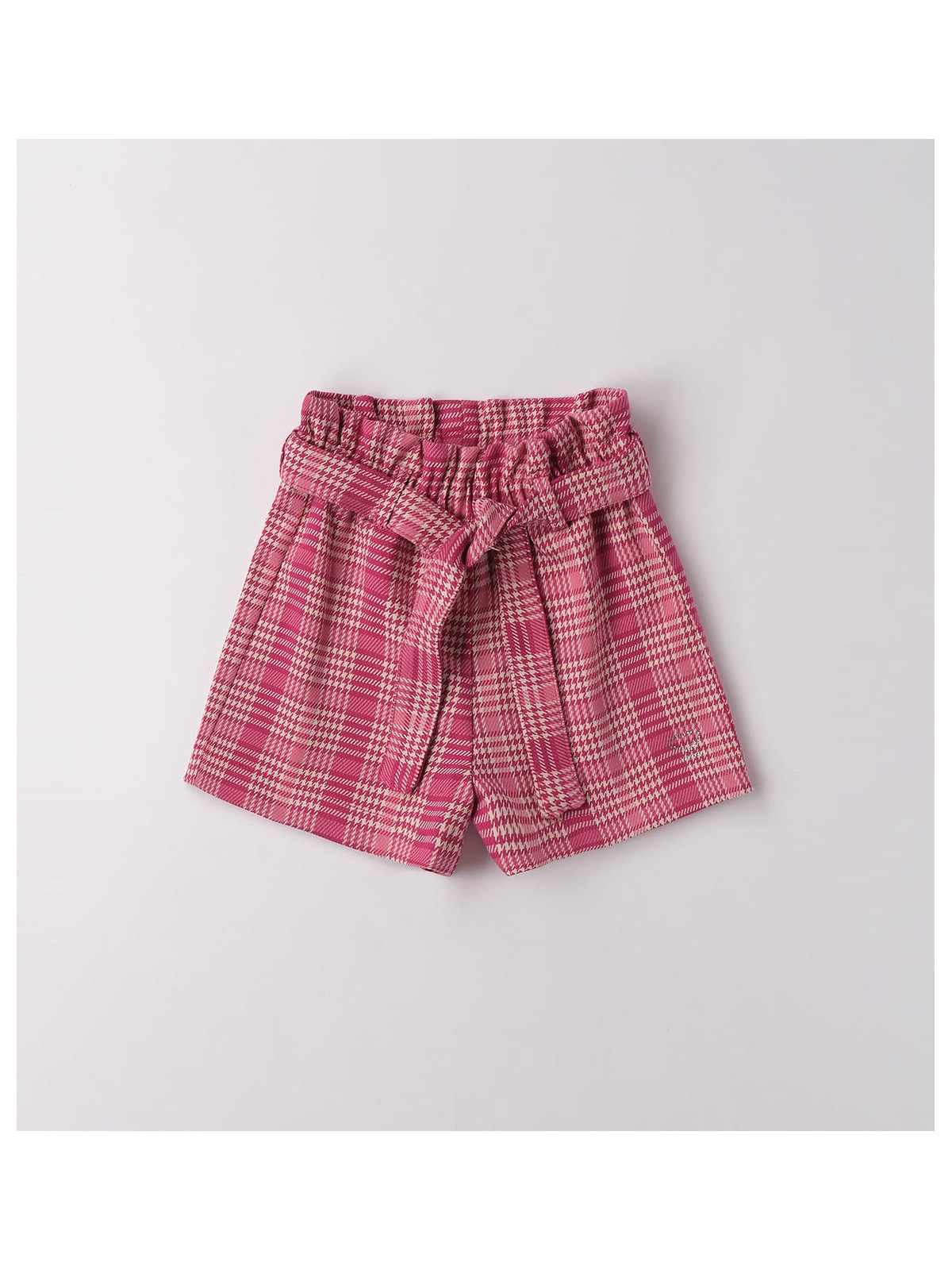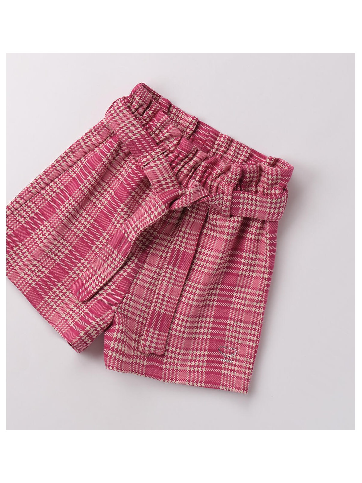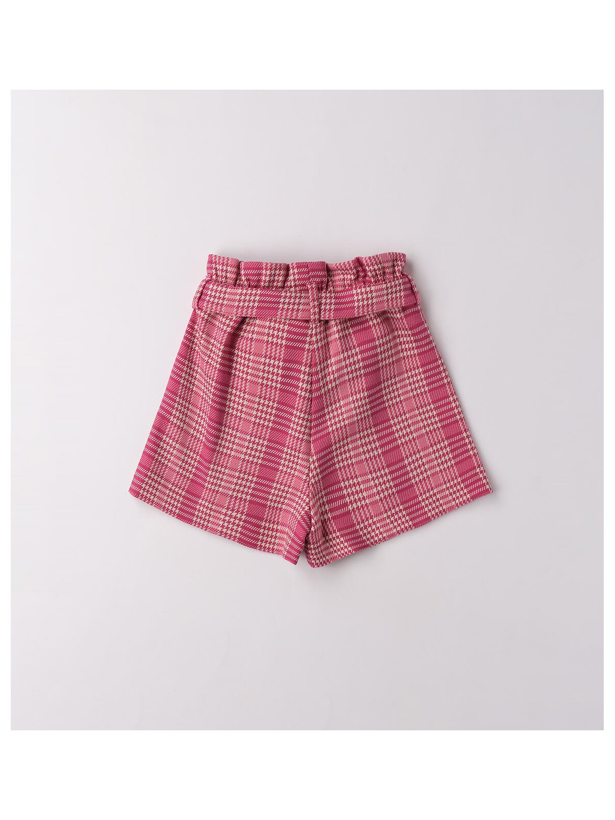 Shorts per bambina realizzati in graziosa fantasia con elastico arricciato in vita. Il modello è arricchito da cintura