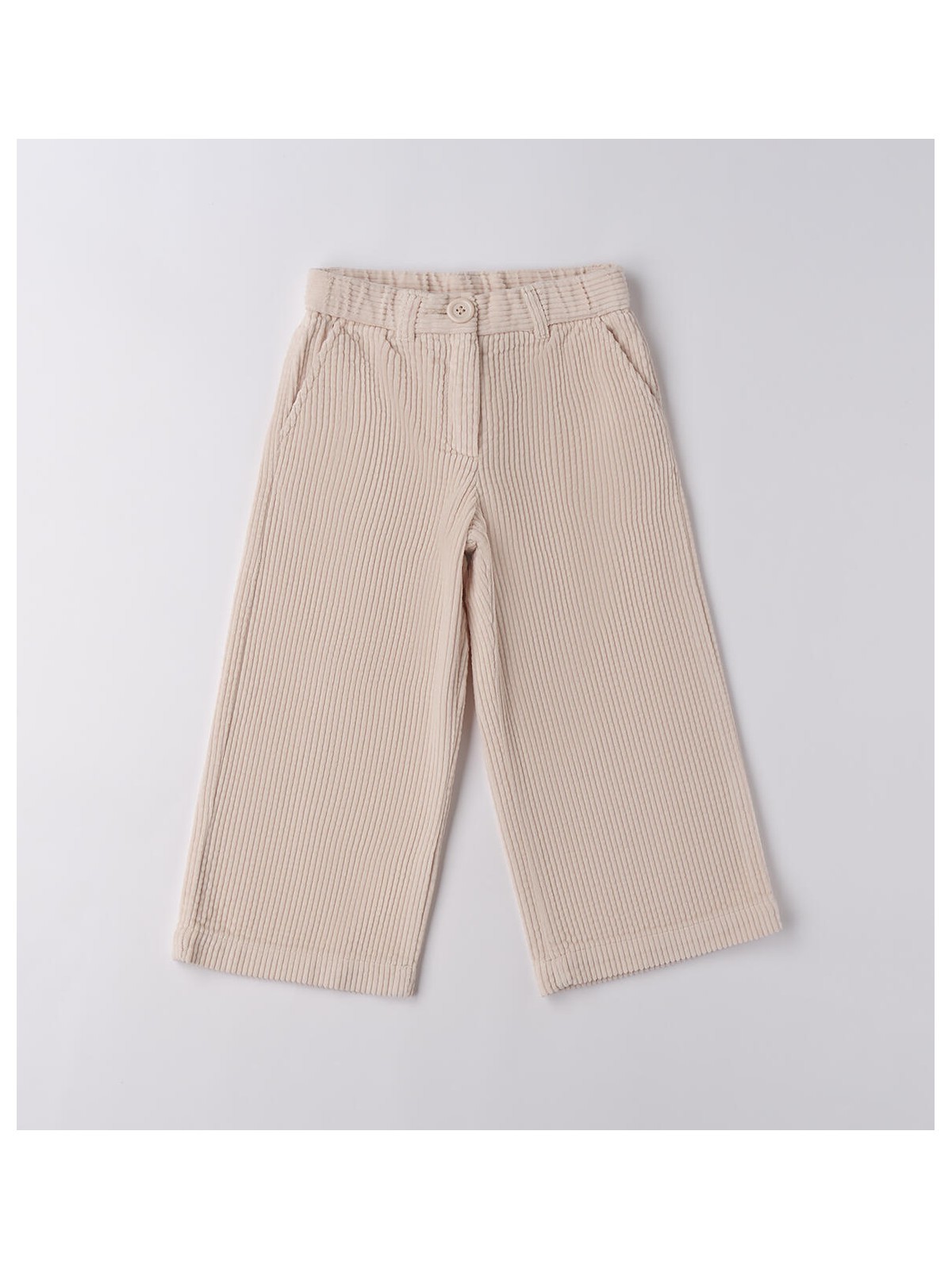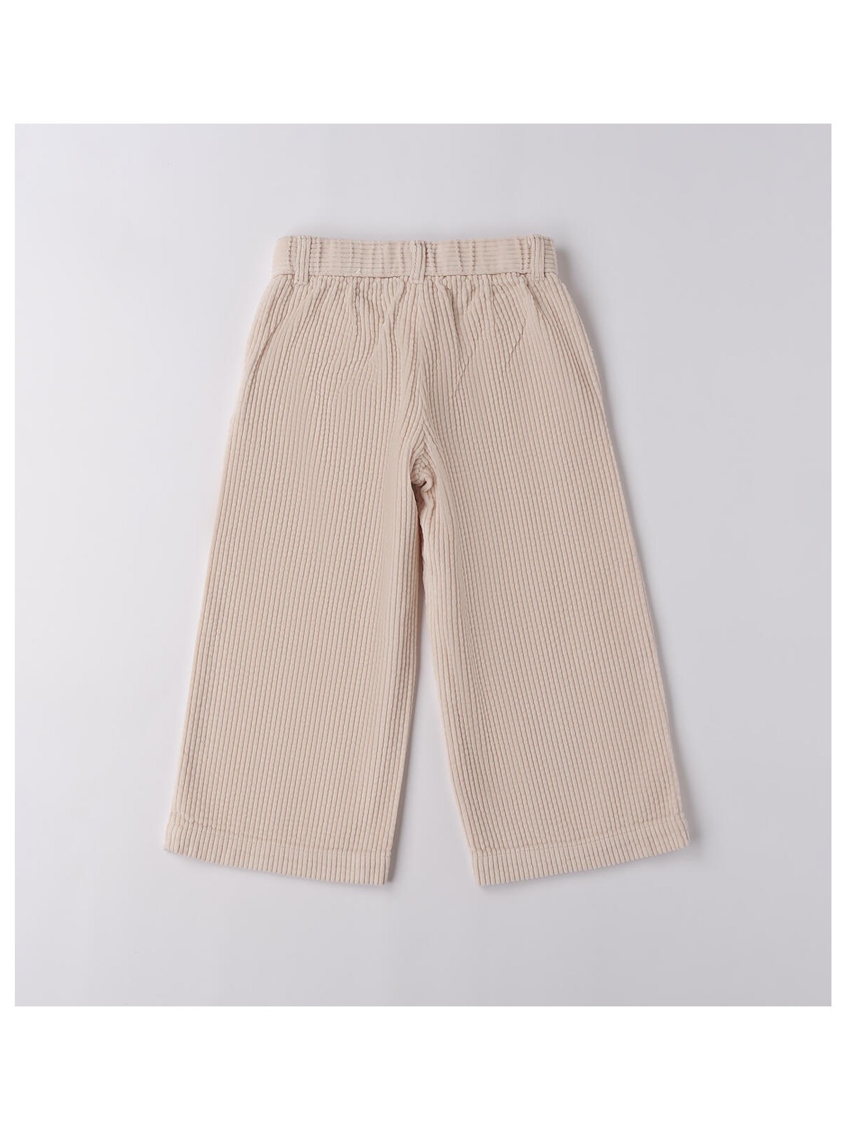 Pantaloni bambina realizzati in velluto 100% cotone. Apertura con zip e bottone. Vita regolabile con elastico asolato interno.