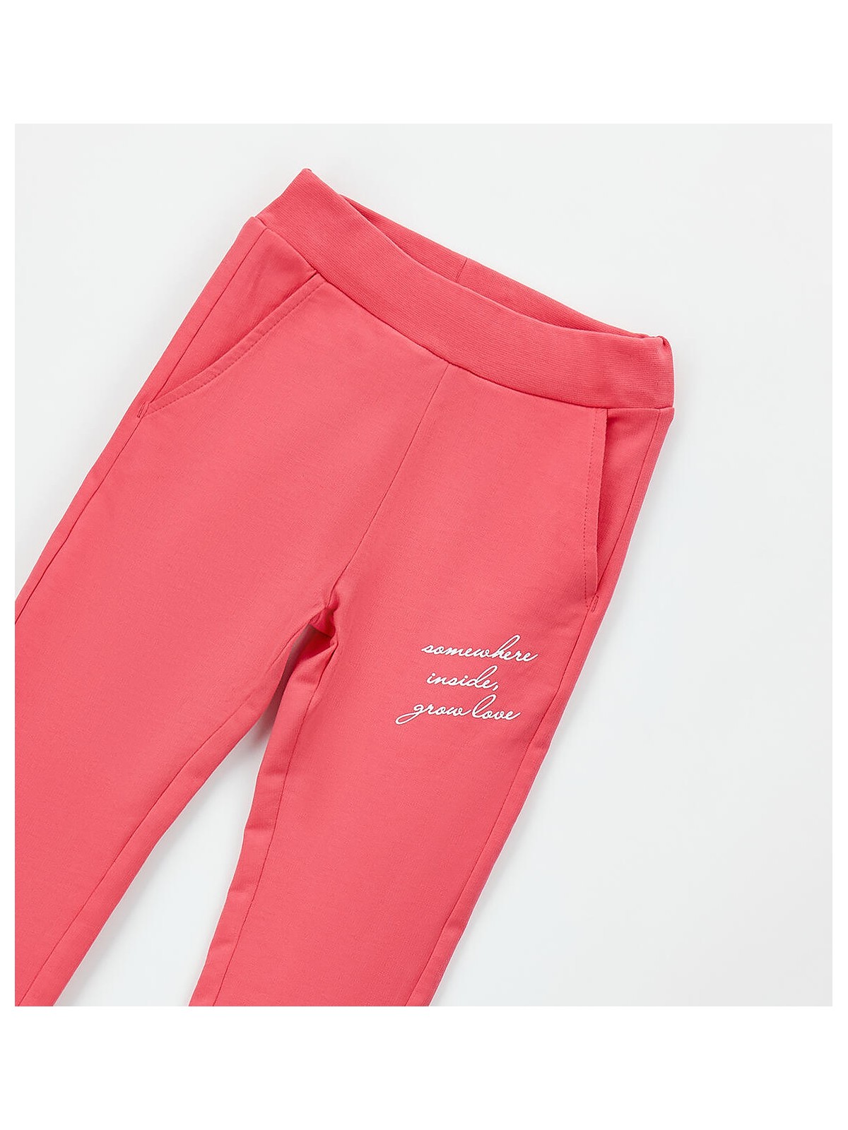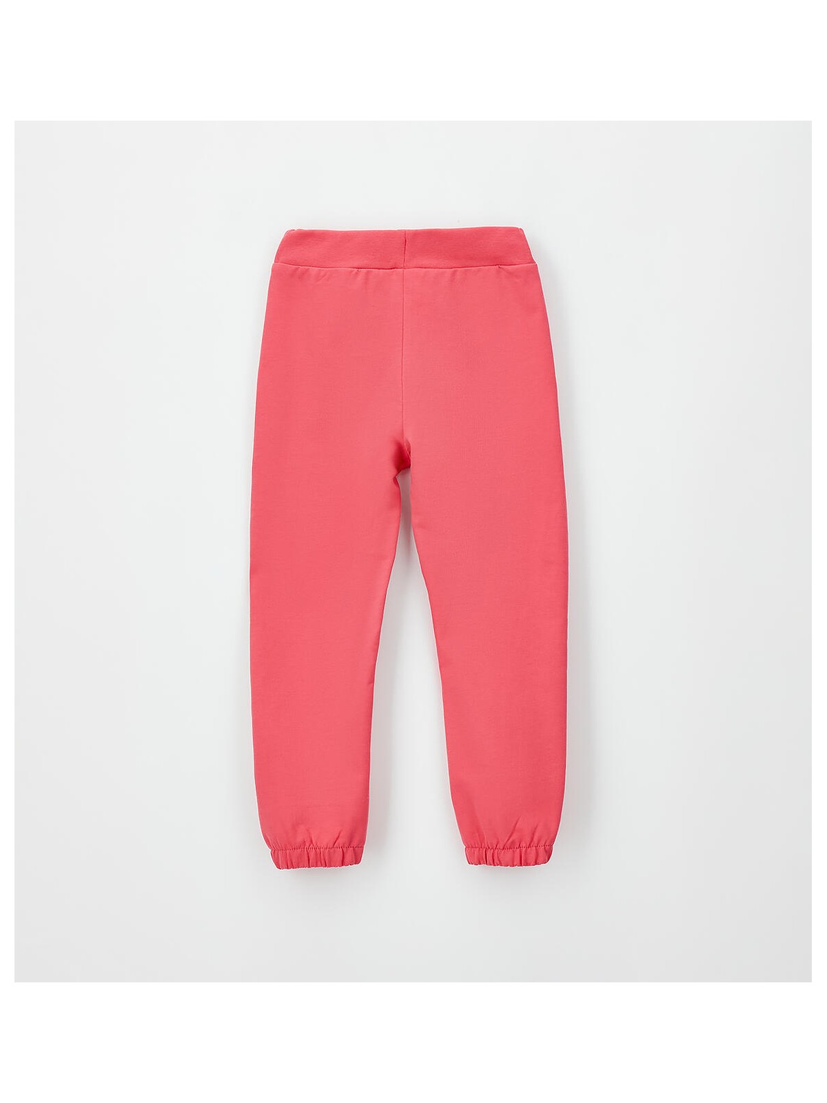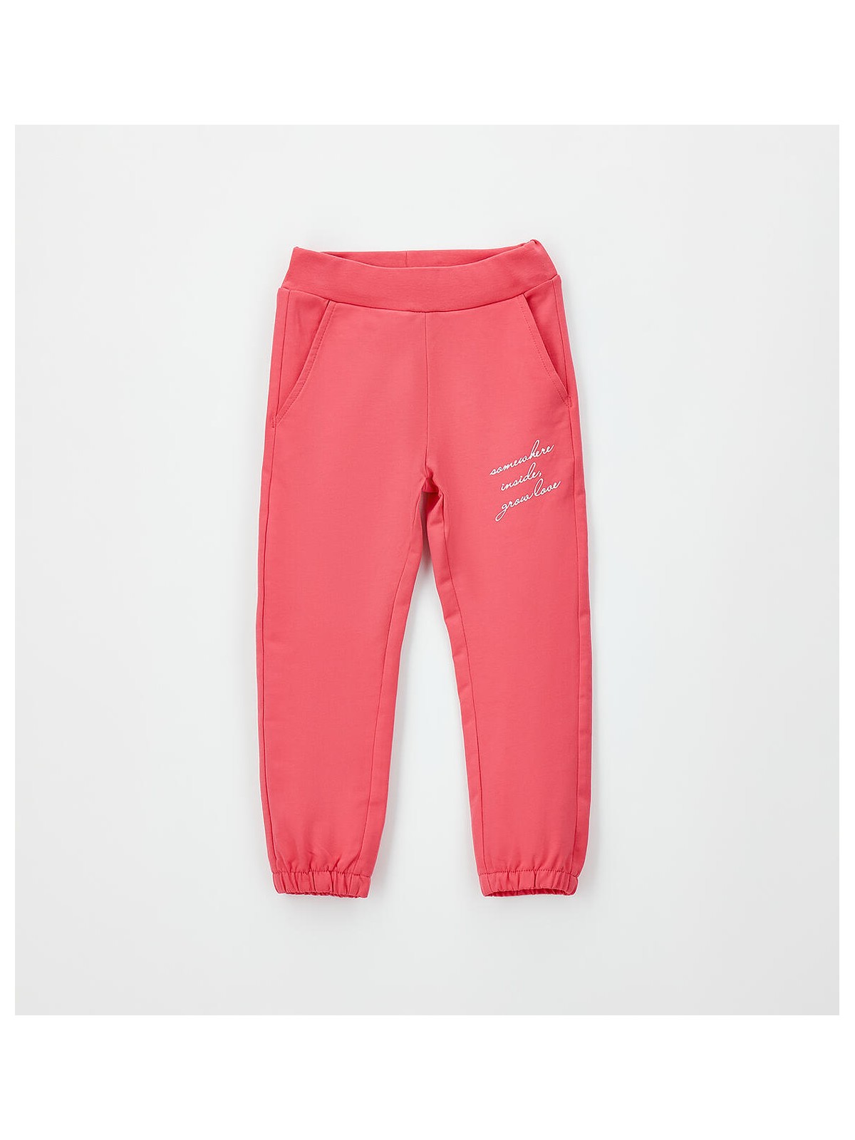 Pantalone lungo in felpa 100% cotone con elastico in vita e coulisse. Modello con tasche e stampa davanti. Polsino sul fondo
