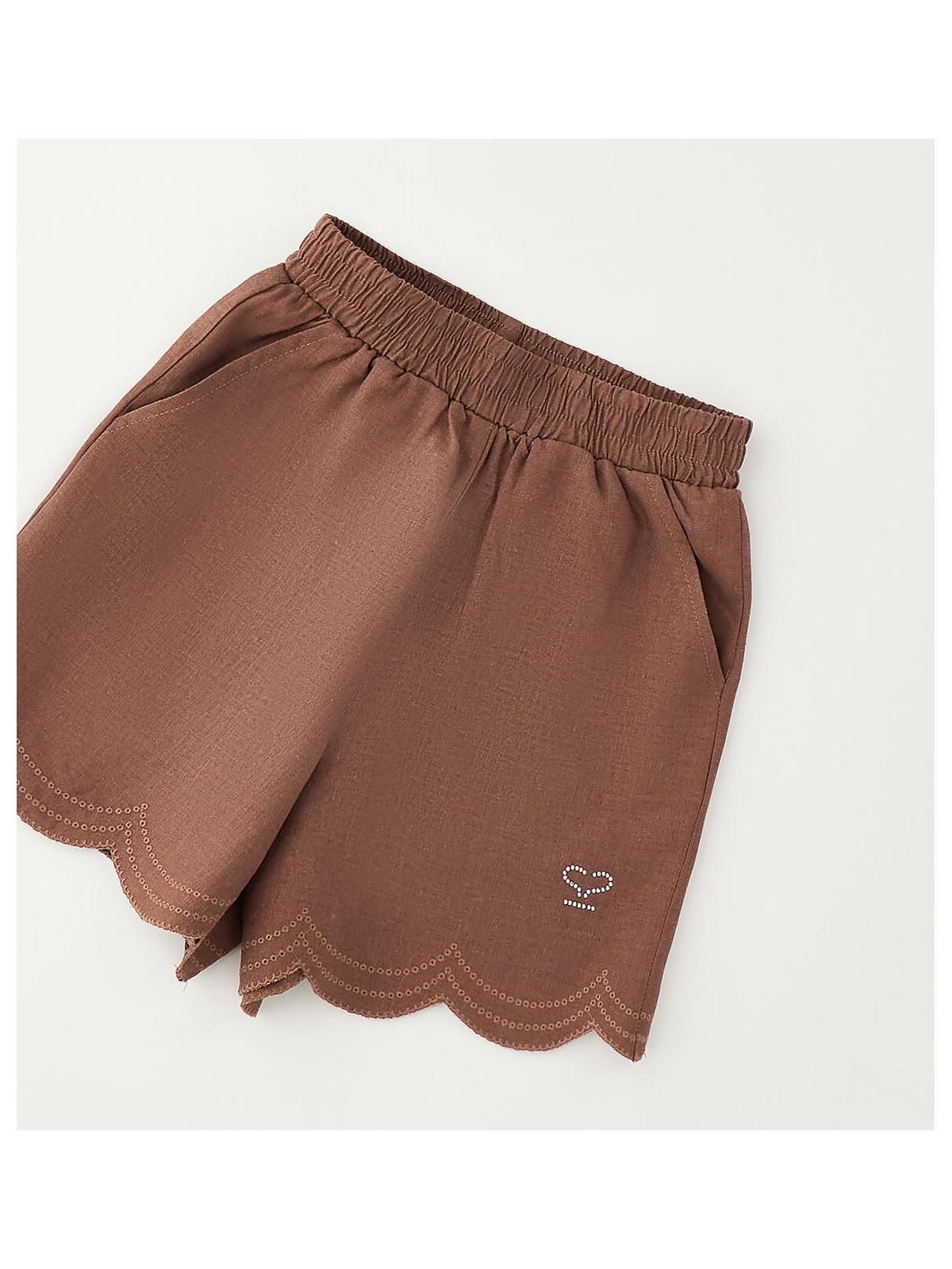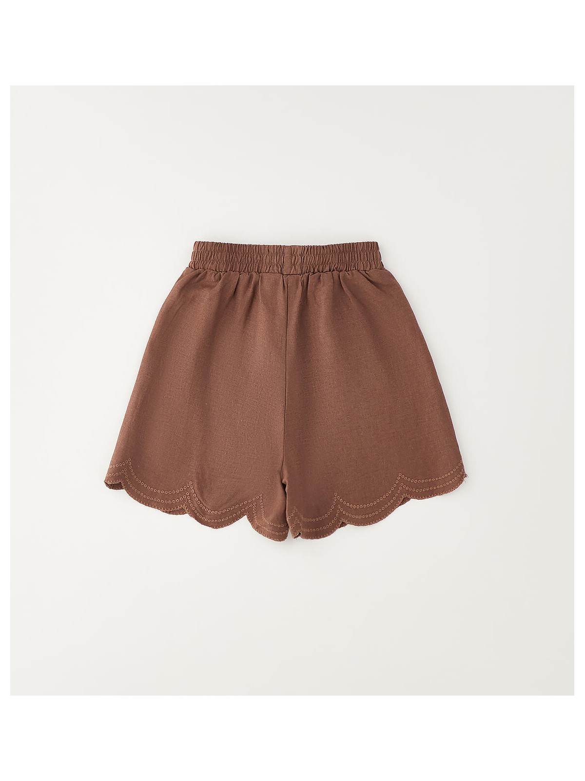 Abito per bambina Sarabanda realizzato in viscosa e lino. Modello arricchito da ricami. Fodera in cotone. Lunghezza al ginocchio