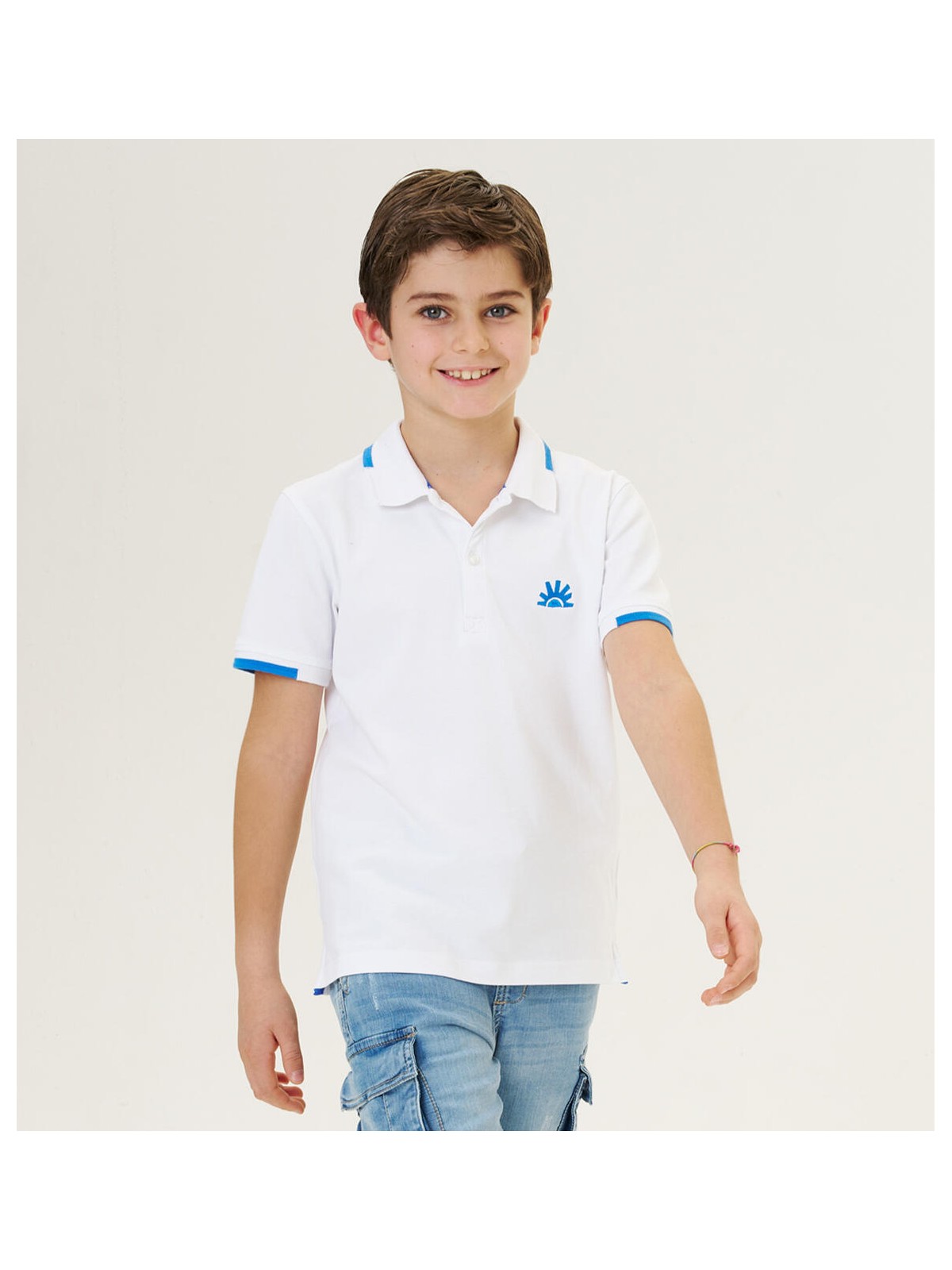 Polo iDO per ragazzo realizzata in piquet stretch di cotone con apertura frontale con bottoni. Ricamo sul petto.