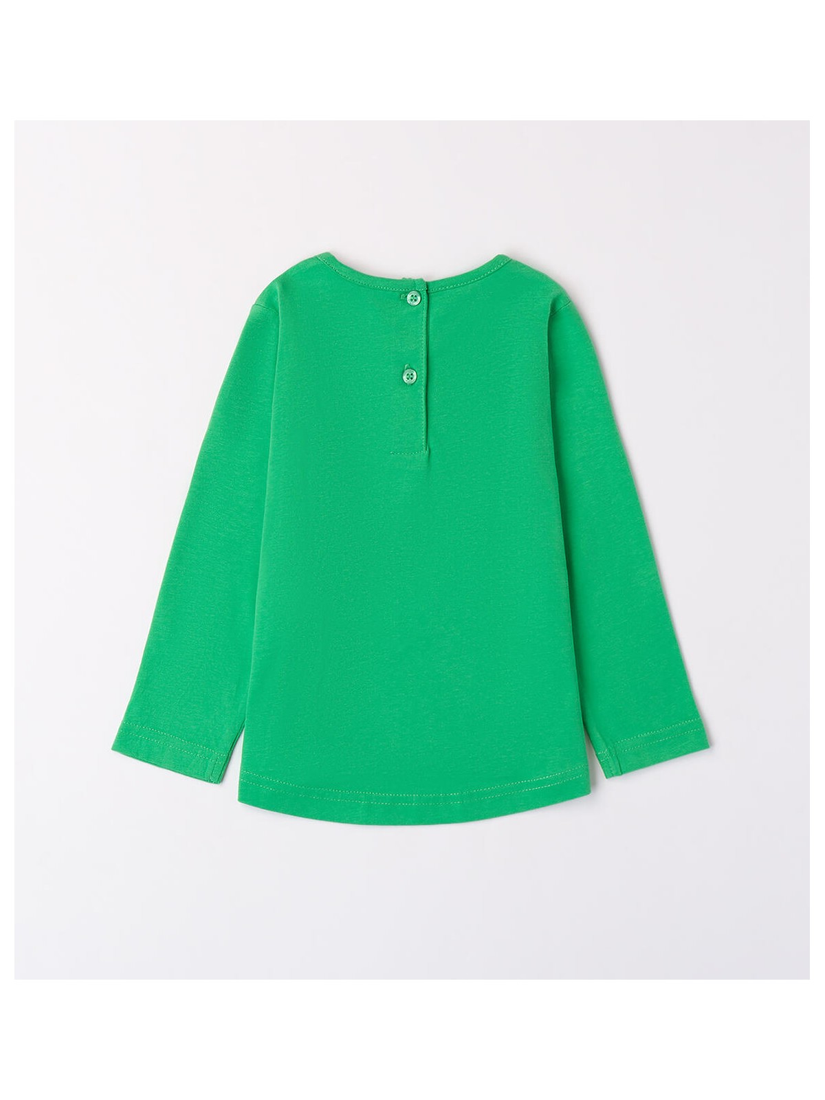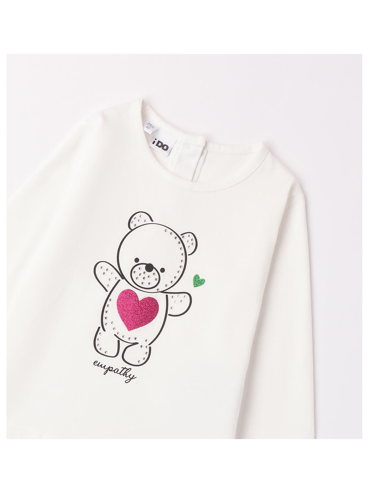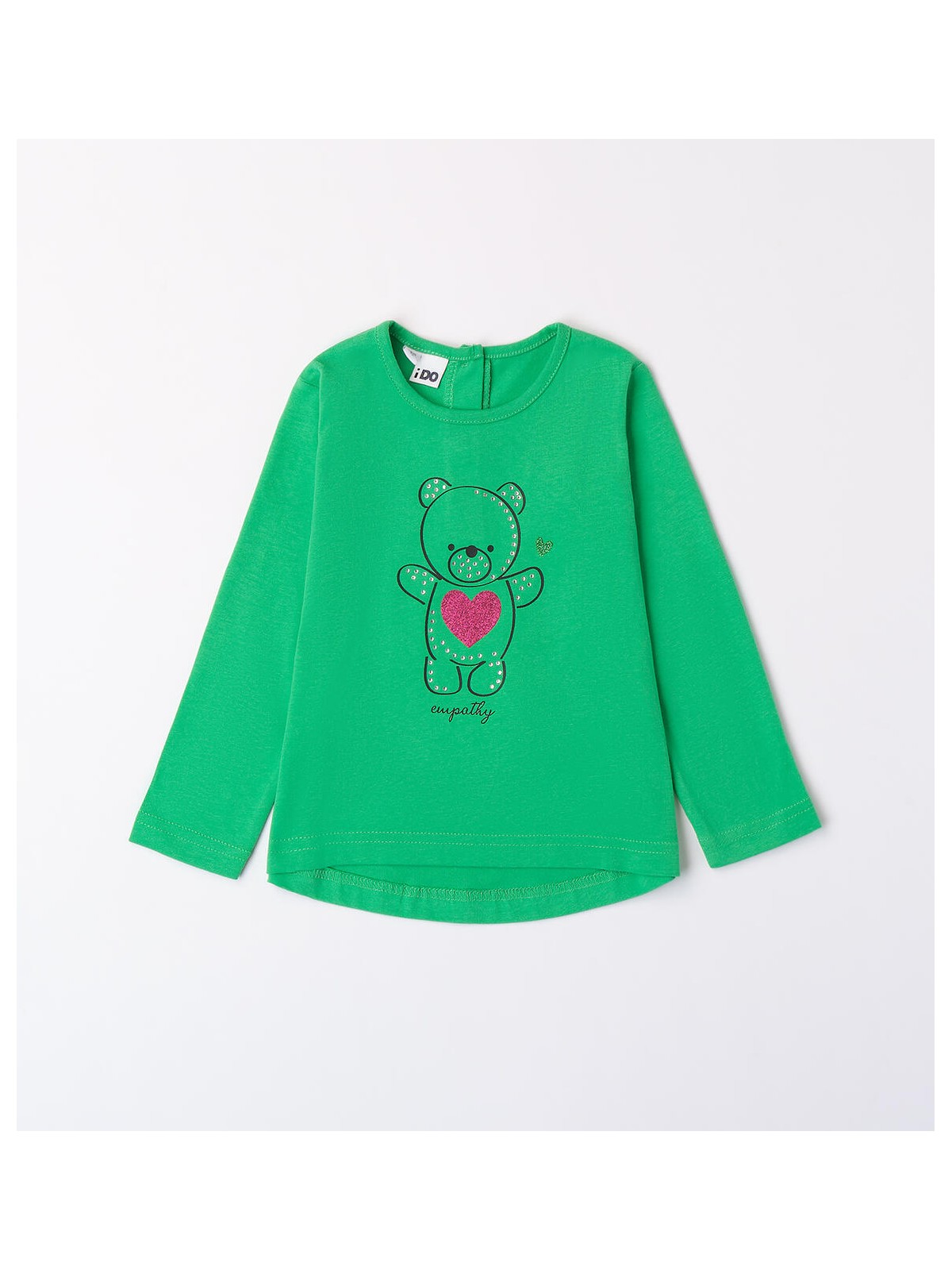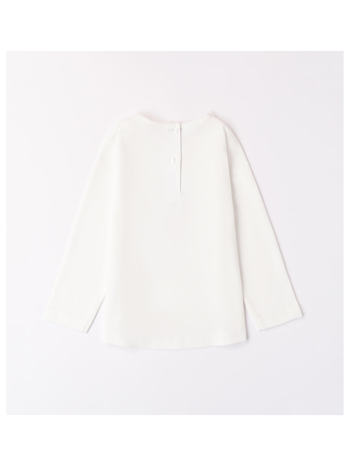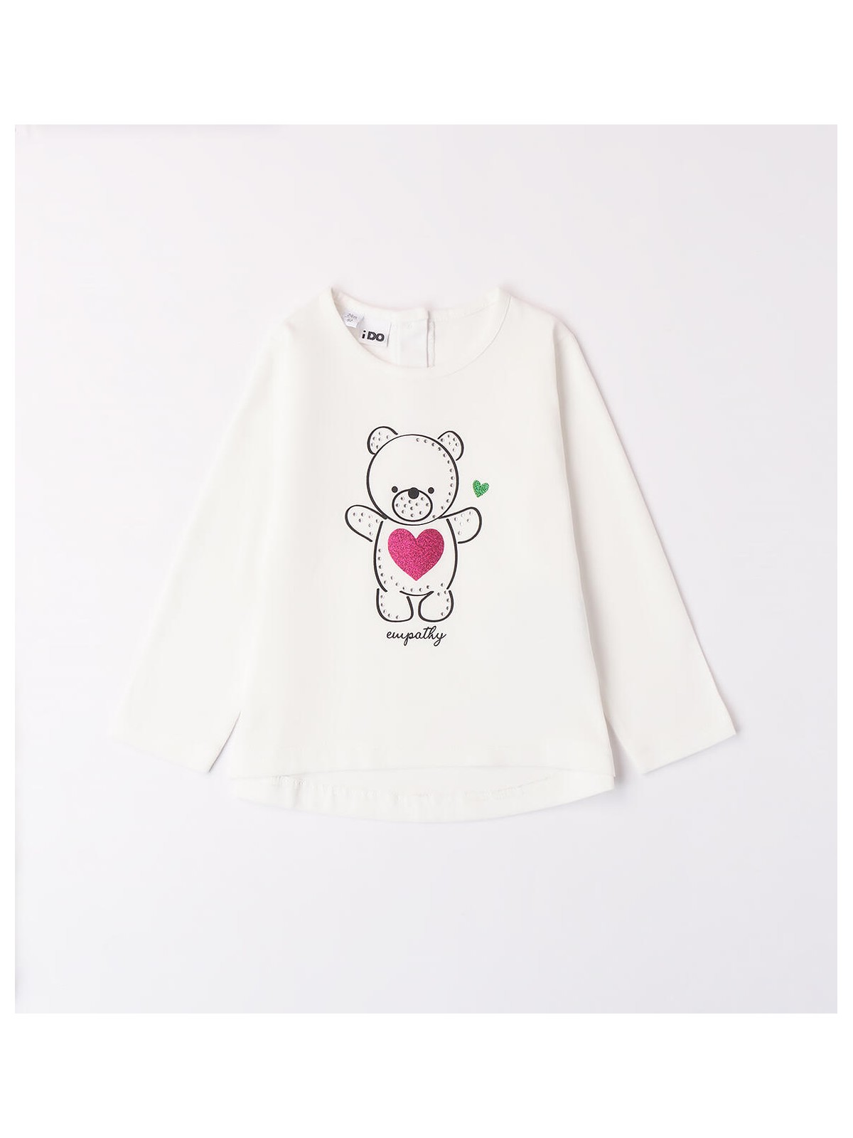 Maglietta per bambina iDO 9 mesi - 8 anni realizzata in caldo cotone. Il modello presenta apertura sul retro con bottoni. La maglietta è in fantasia tinta unita con grafica orsetto.