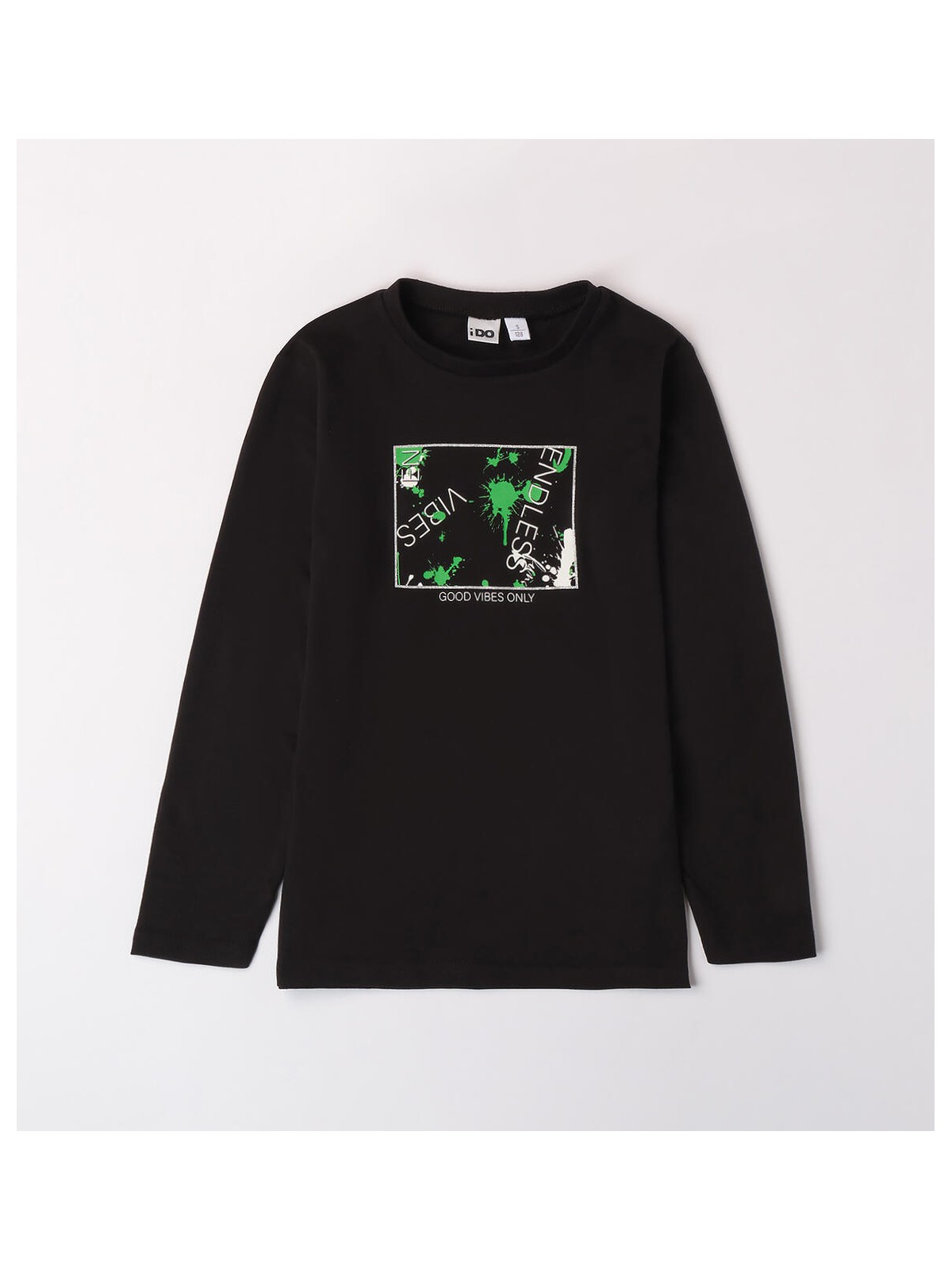 Maglietta per ragazza iDO 8-16 anni realizzata in jersey 100% cotone, mano pesca. Il modello è in fantasia tinta unita con stampa frontale