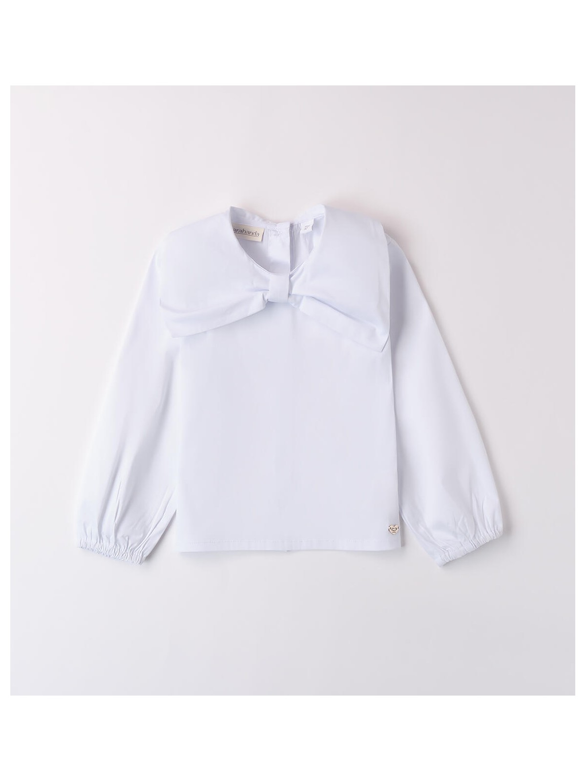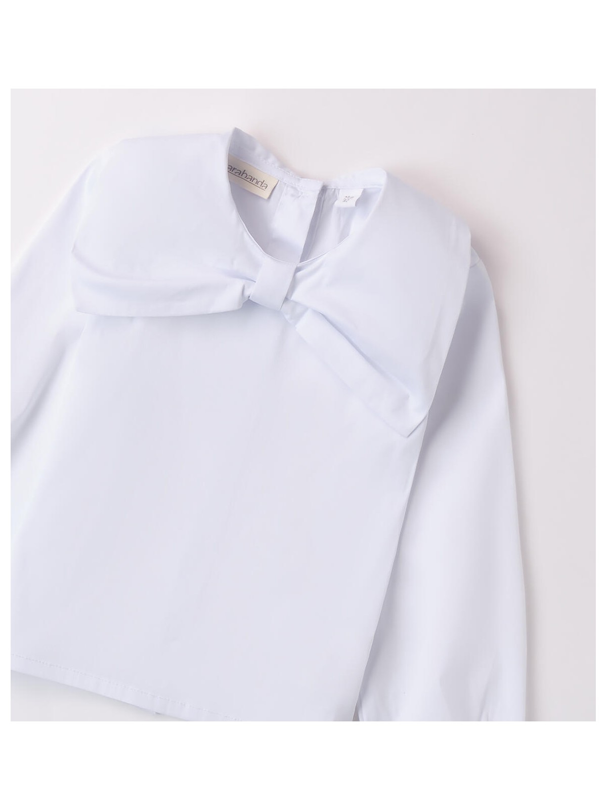 Camicia per bambina Sarabanda 9 mesi - 8 anni in popeline stretch di cotone. Il modello presenta apertura sul retro con bottoni, fiocco frontale e fantasia tinta unita.