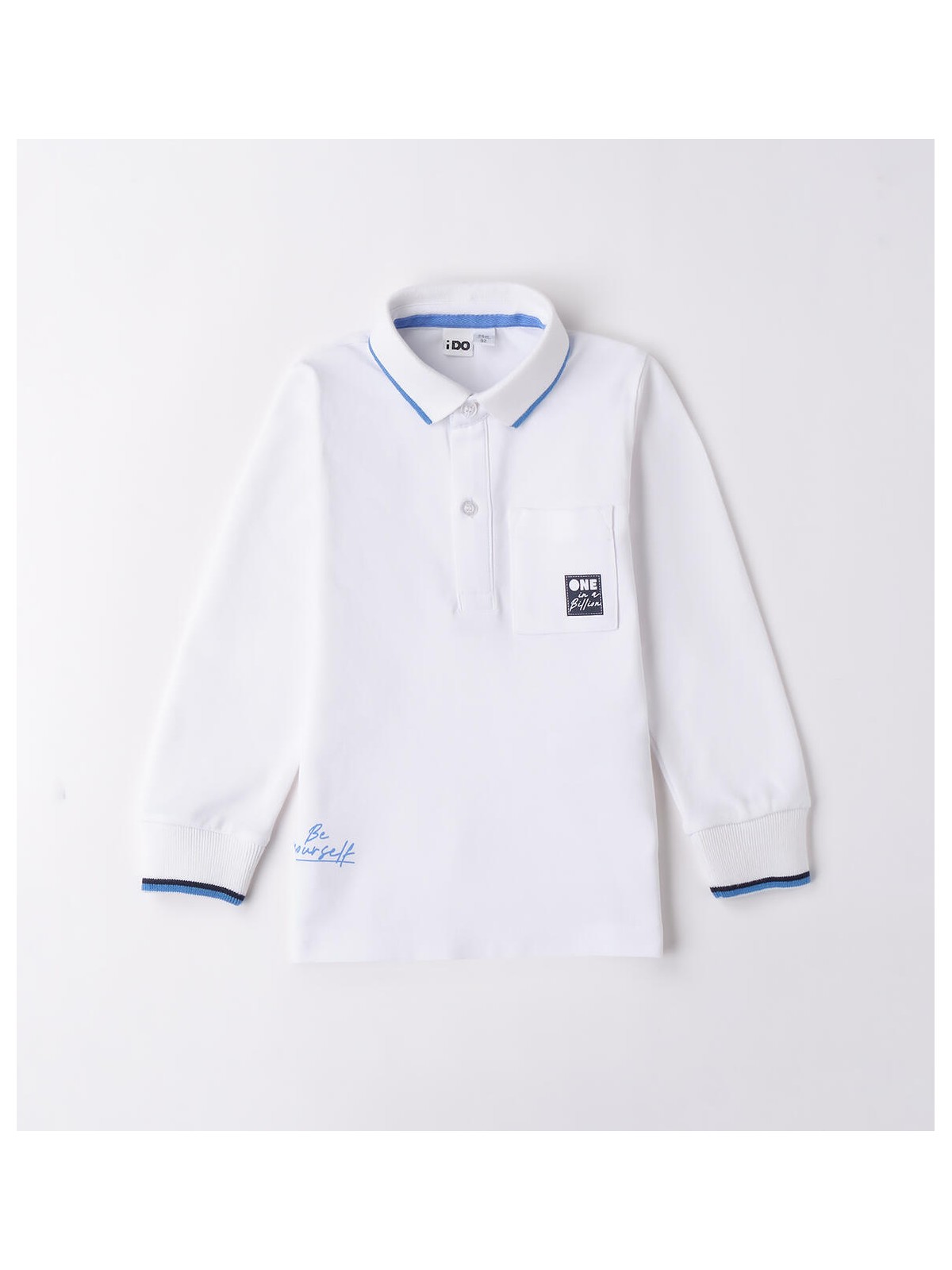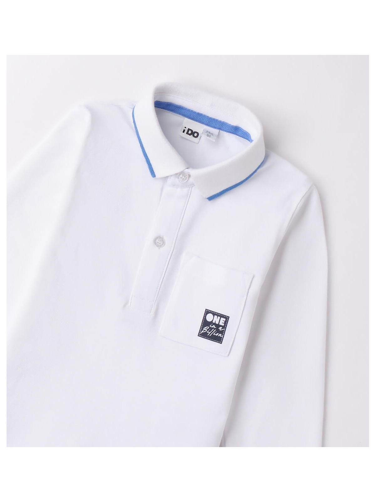Polo bambino iDO da 9 mesi a 8 anni realizzata in tessuto pique di cotone. Il modello presenta apertura frontale con bottoni, taschino laterale e fantasia tinta unita con dettagli a contrasto nel colletto in maglia e sul fondo delle maniche.