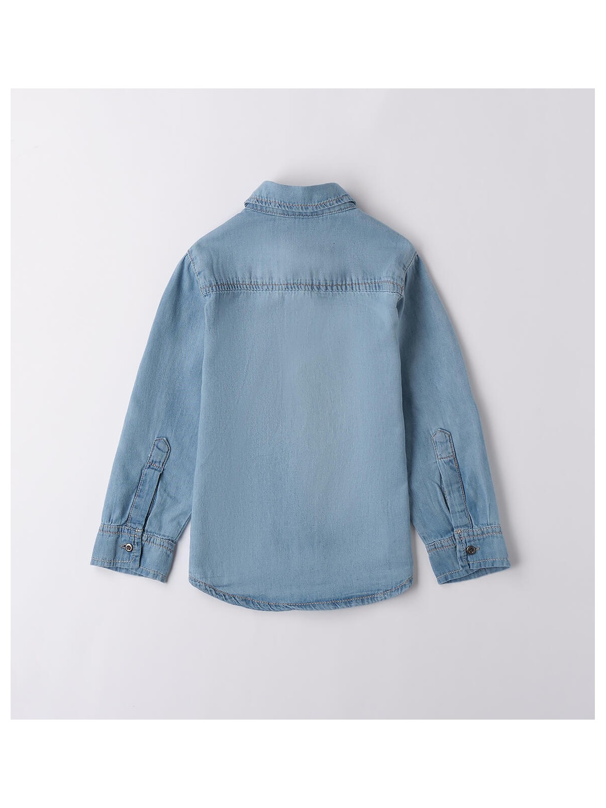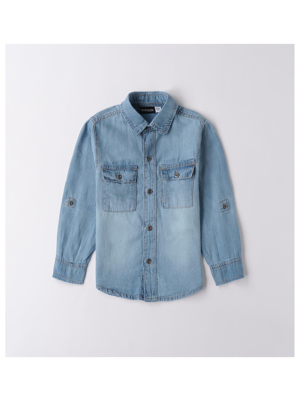 Camicia jeans bambino Sarabanda da 9 mesi a 8 anni realizzato in denim 100% cotone. Il modello presenta apertura frontale con bottoni e tasche laterali.
