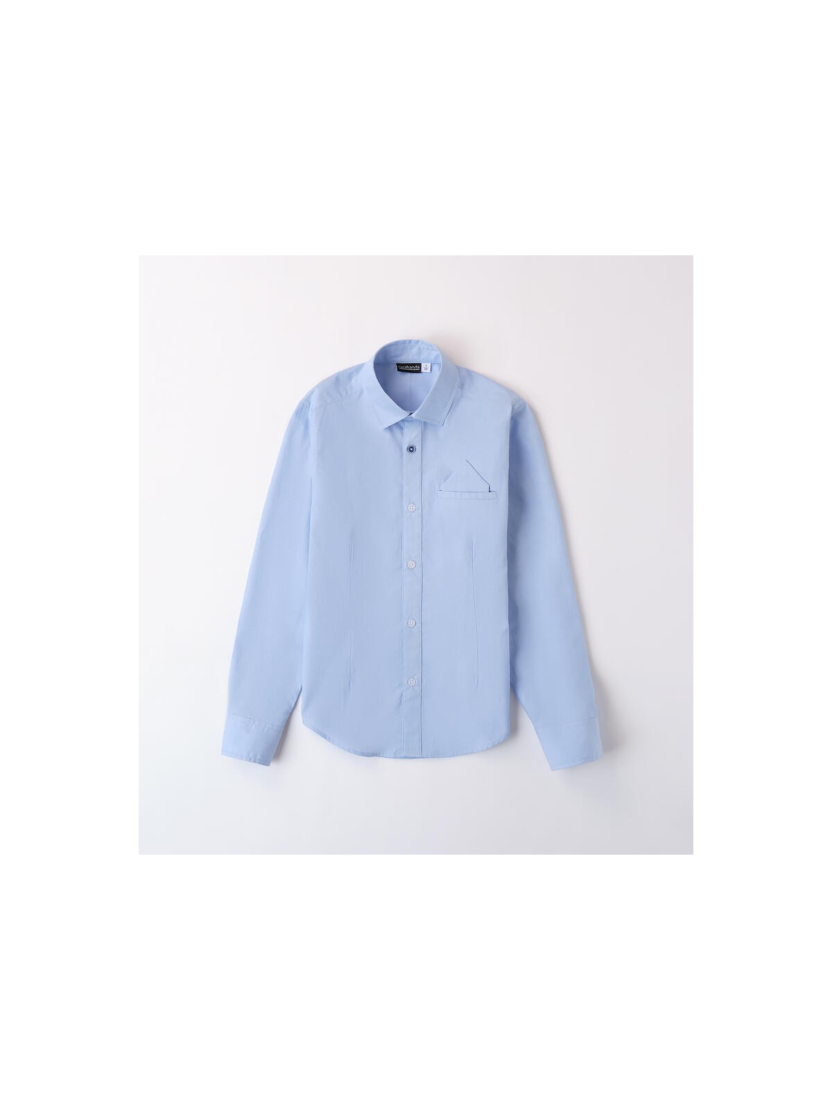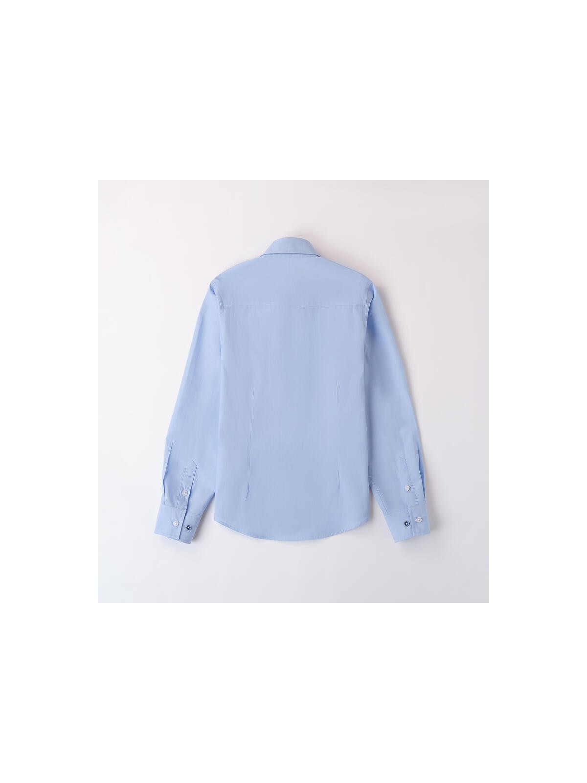 Camicia bambino Sarabanda realizzata in 100% cotone. Il modello presenta apertura frontale con bottoni e fantasia tinta unita. Modello taglio classico