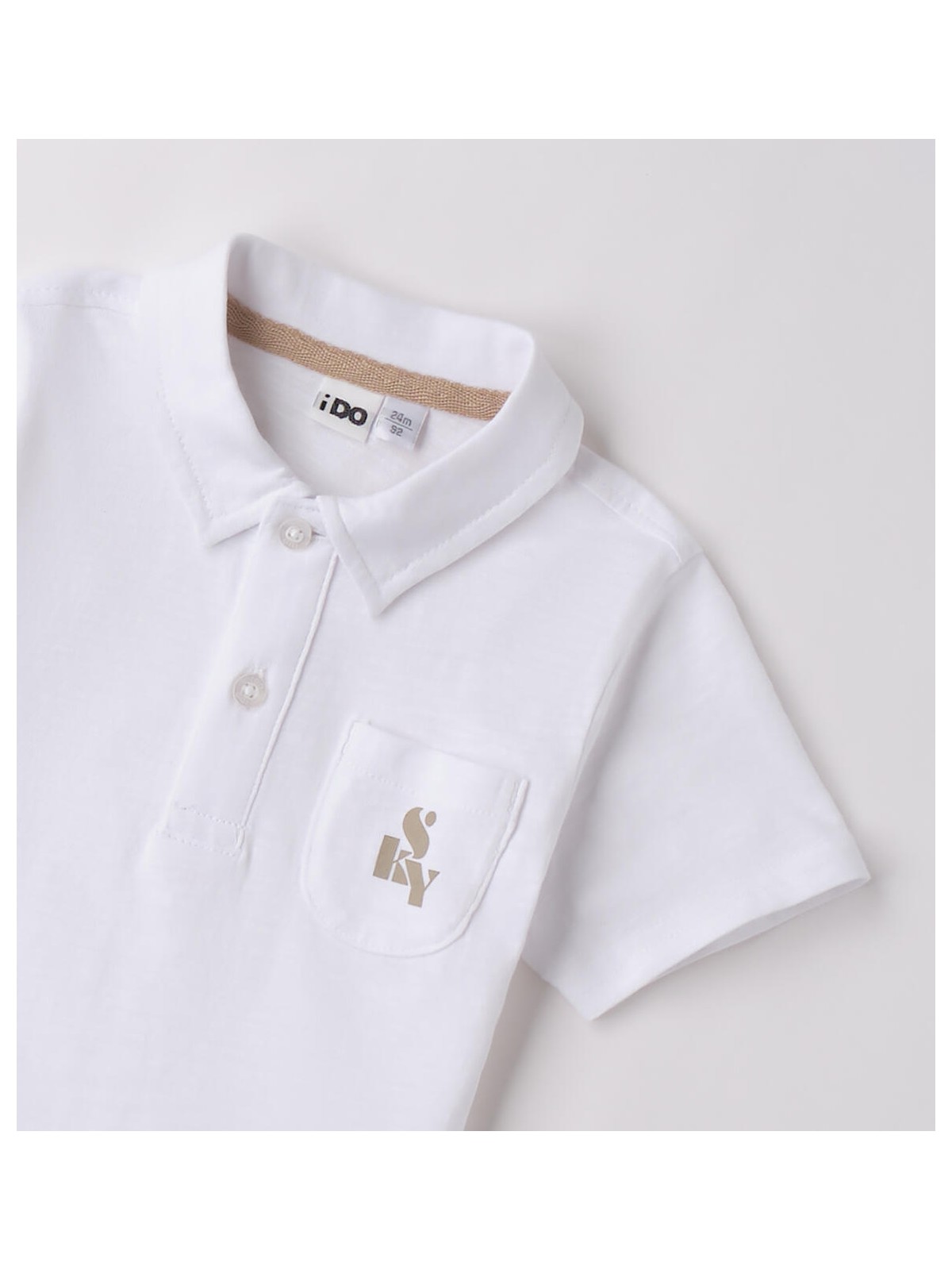 Polo per bambino iDO da 9 mesi a 8 anni realizzata in jersey 100% cotone. Il modello presenta apertura frontale con bottoni, taschino e fantasia tinta unita.