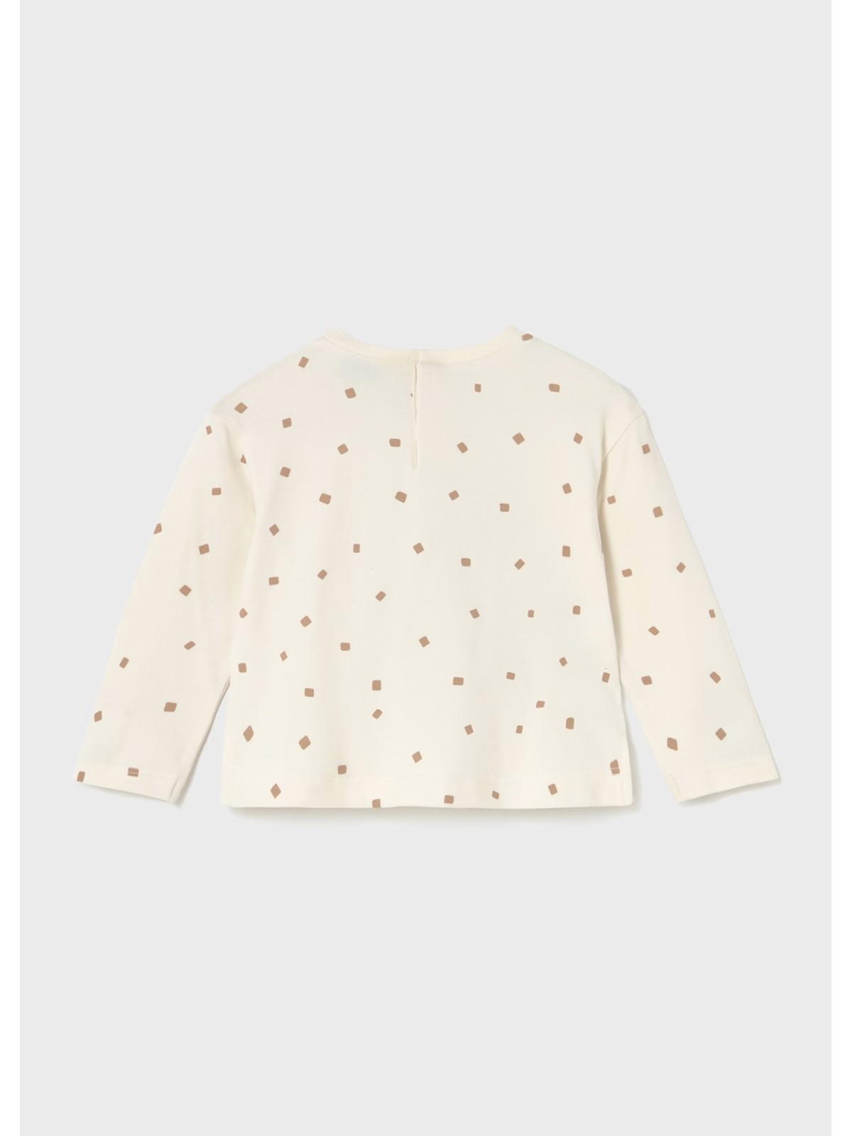 Maglietta manica lunga per neonata. Girocollo. Chiusura con bottoni a pressione nella parte posteriore. Elementi decorativi: Serigrafia (print). Design stampato.
