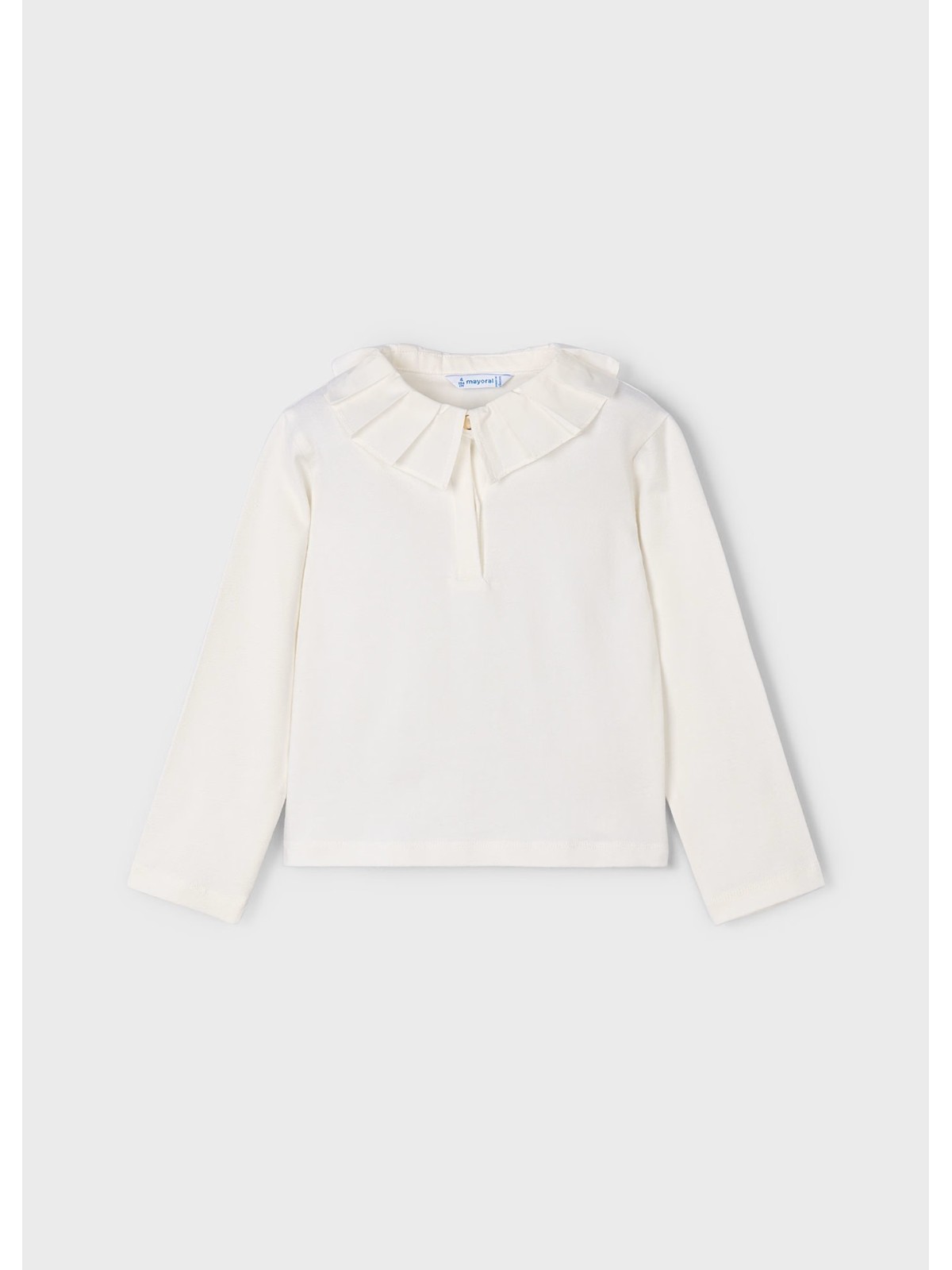 Polo manica lunga per bambina. Colletto bebè. Chiusura con bottoni nella parte anteriore. Elementi decorativi: strass.