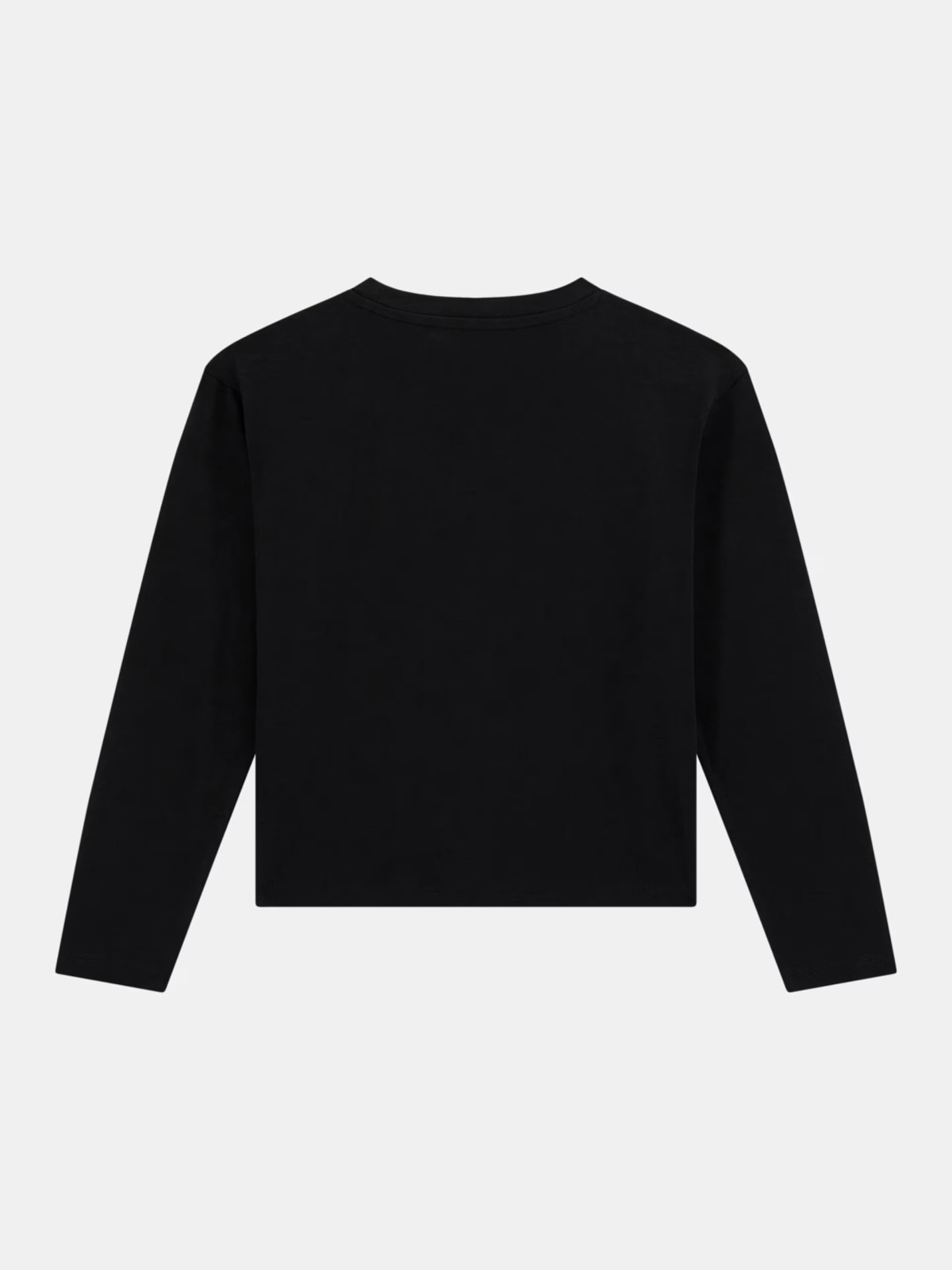 T-shirt in misto cotone biologico stretch. Scollo tondo. Manica lunga, logo frontale con paillettes.