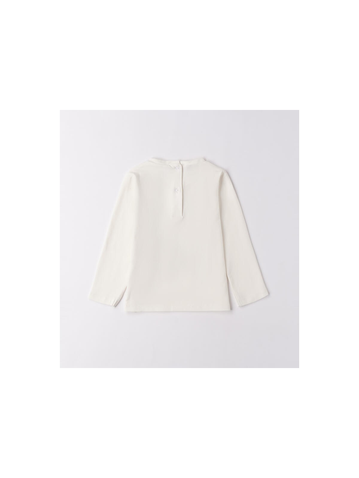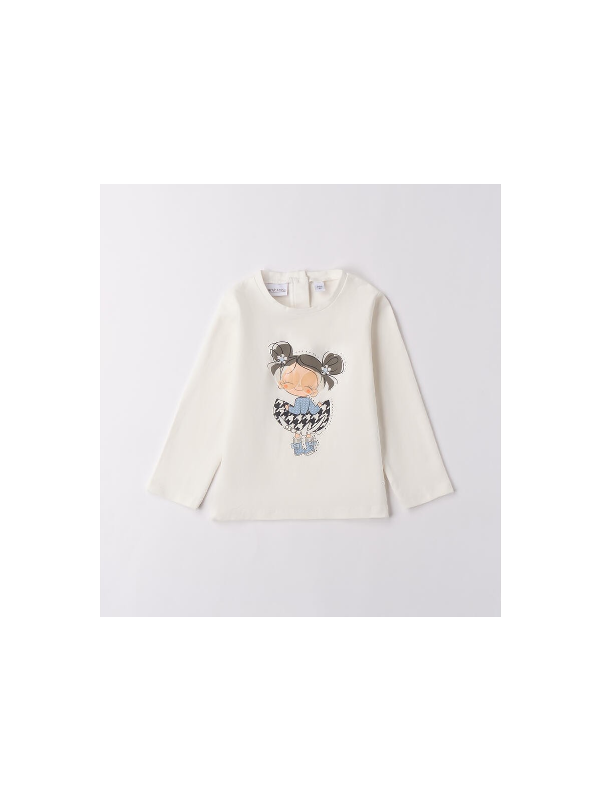 Maglietta bambina Sarabanda realizzata in jersey stretch di cotone, manopesca. Il modello è arricchito da stampa e strass