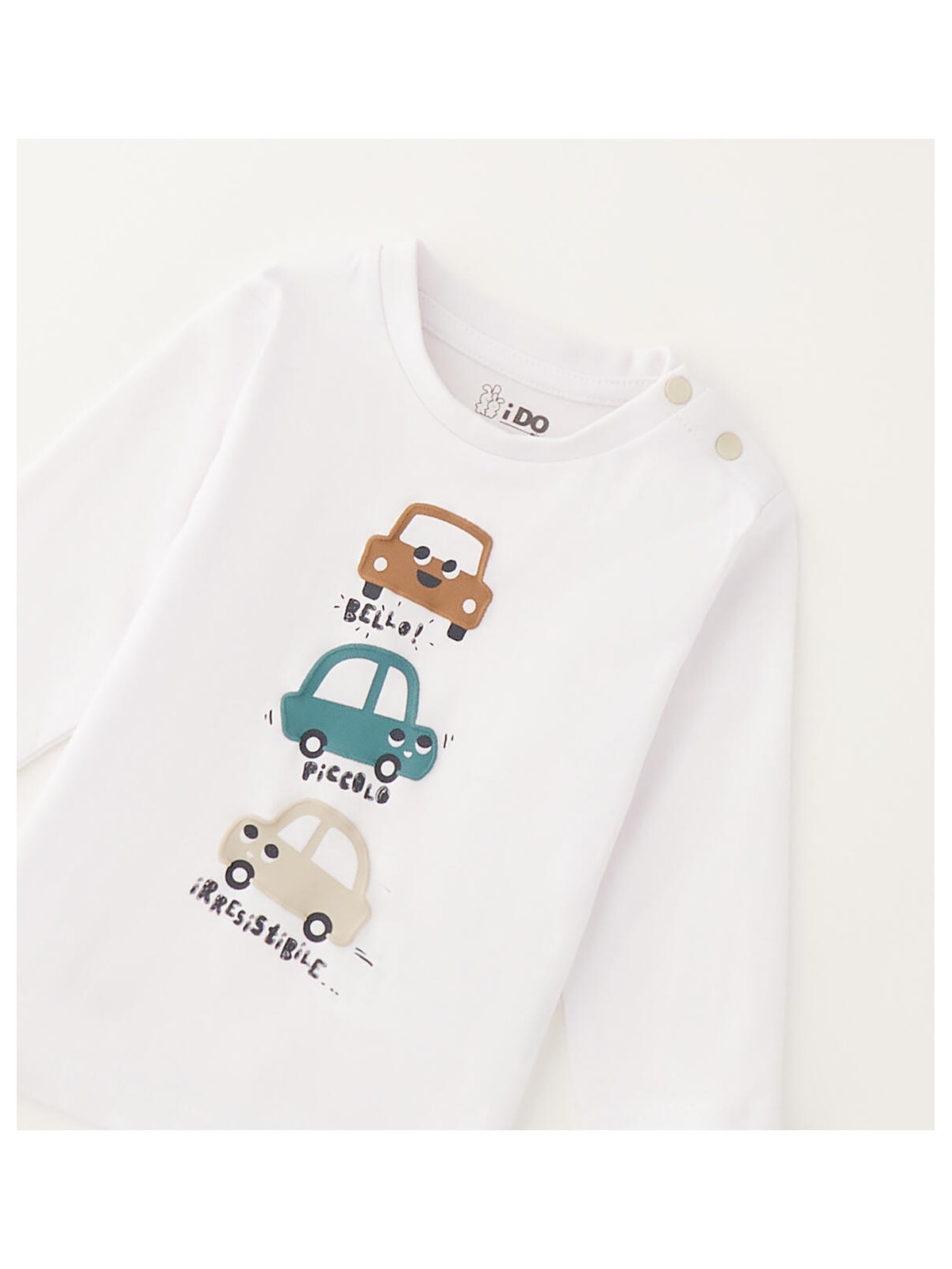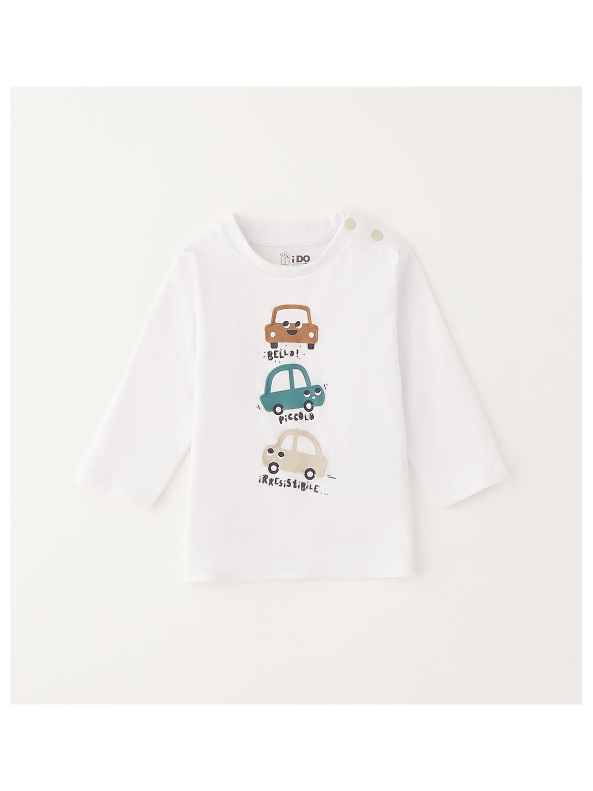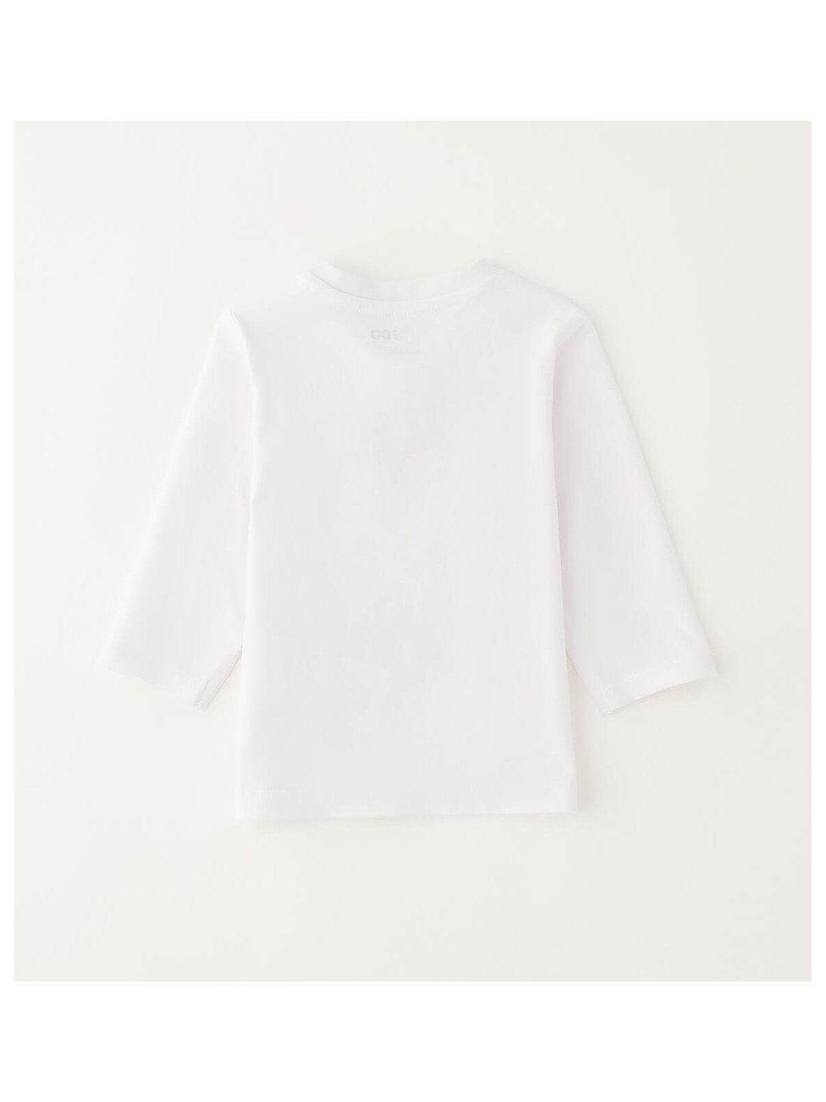 Maglietta a manica lunga realizzata in jersey 100% cotone. Apertura sulla spalla con bottoni a pressione. Stampa davanti con dettagli a rilievo.