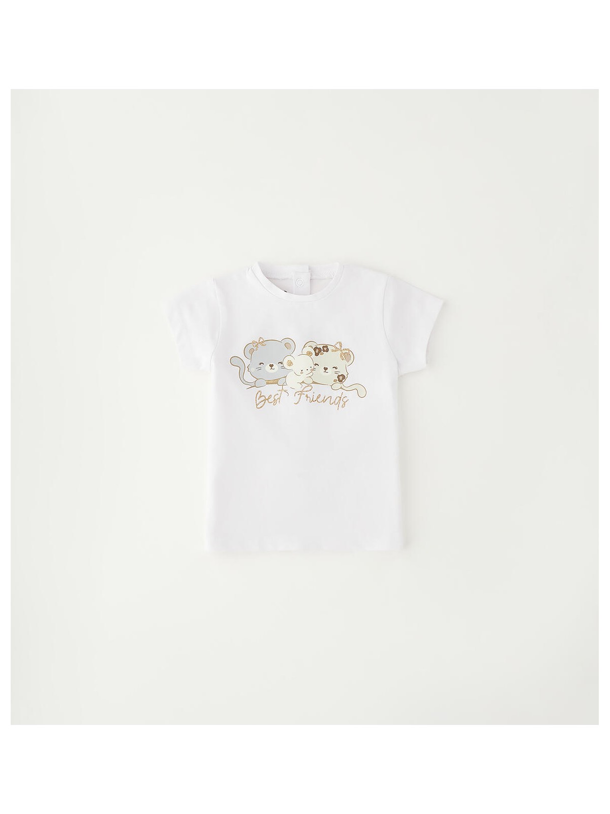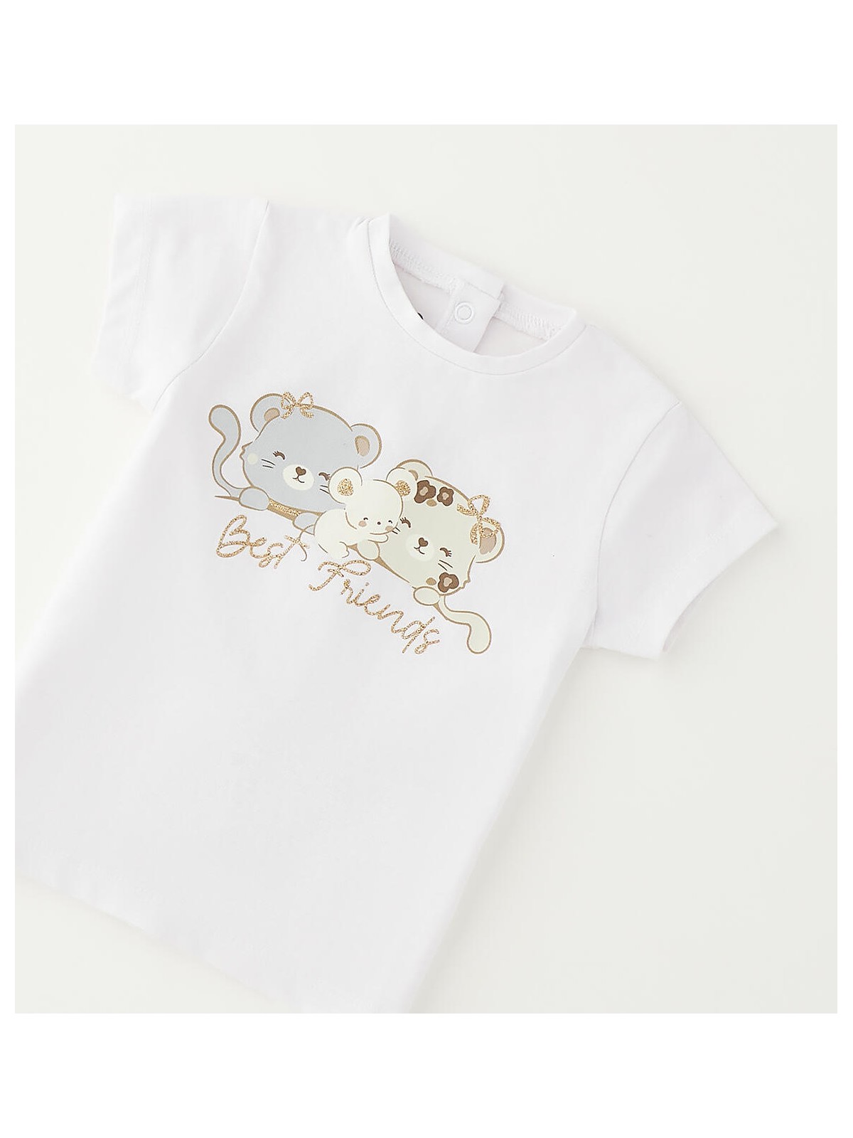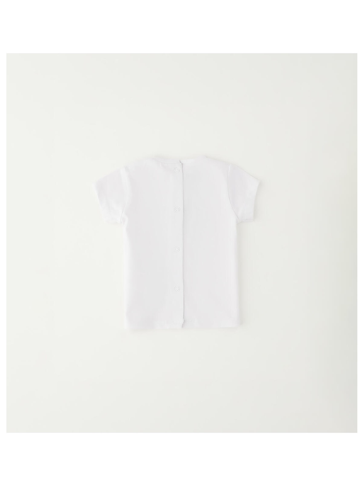 T-shirt iDO per bimba da 1 a 24 mesi realizzata in jersey stretch di cotone con apertura sul retro con bottoni a pressione. stampa davanti con dettagli glitter