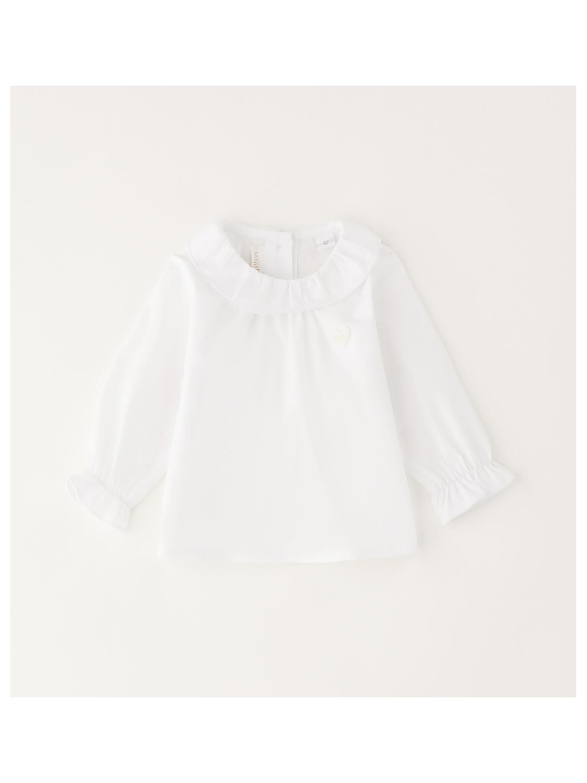 Camicia a manica lunga per bimba Minibanda realizzata in popeline stretch di cotone con apertura dietro tramite bottoni.