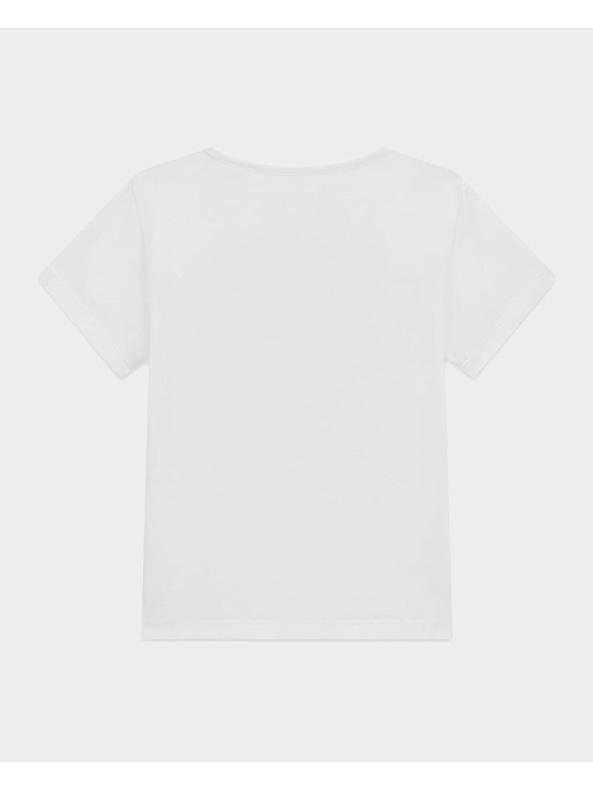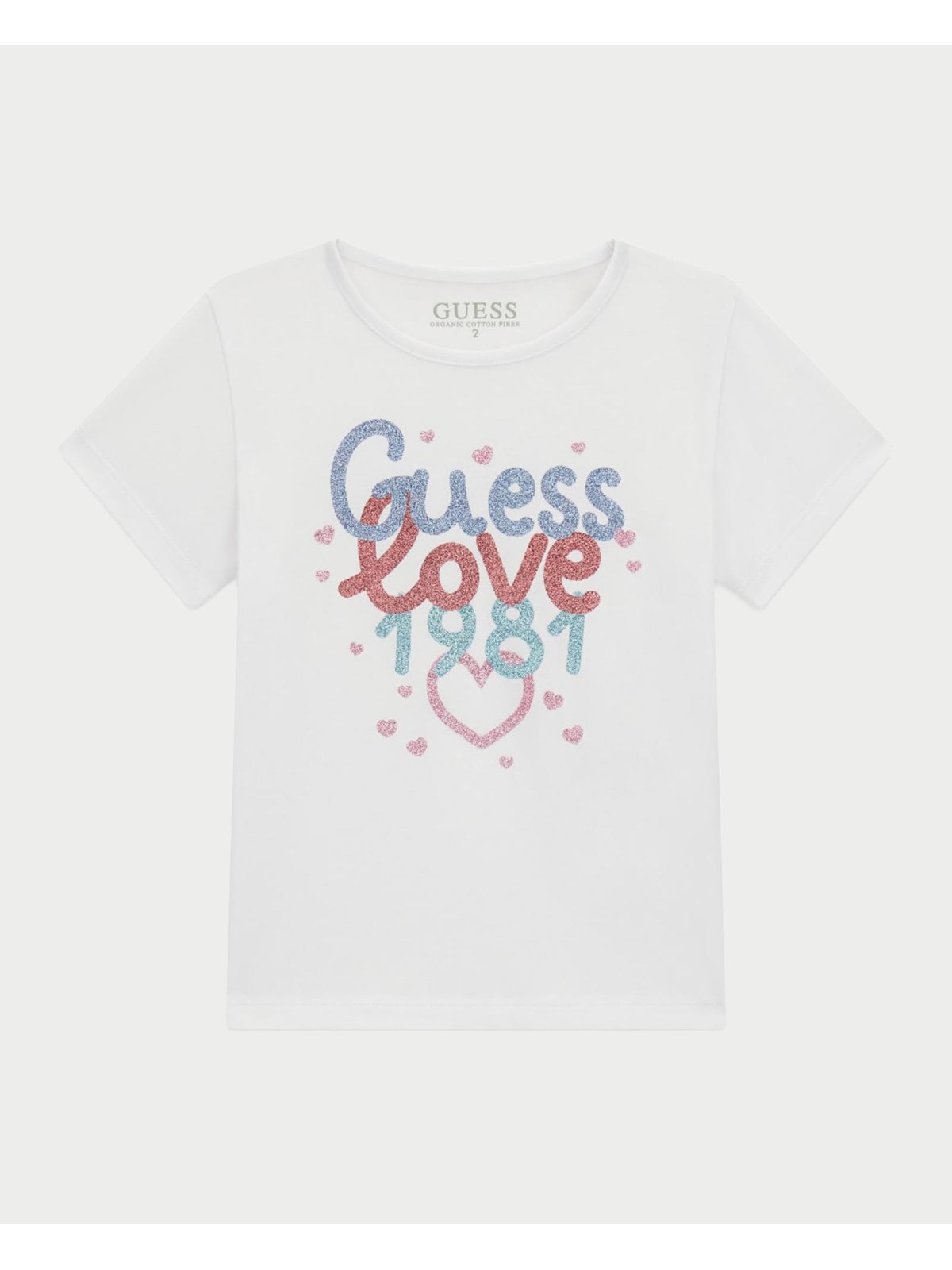 T-shirt in jersey di cotone con vestibilità regular. Girocollo e maniche corte. Stampa glitter e logo frontale.