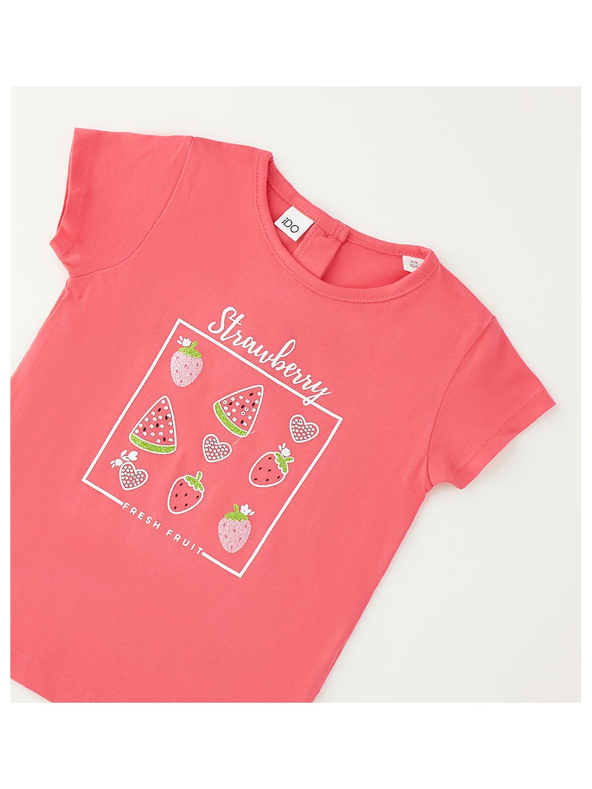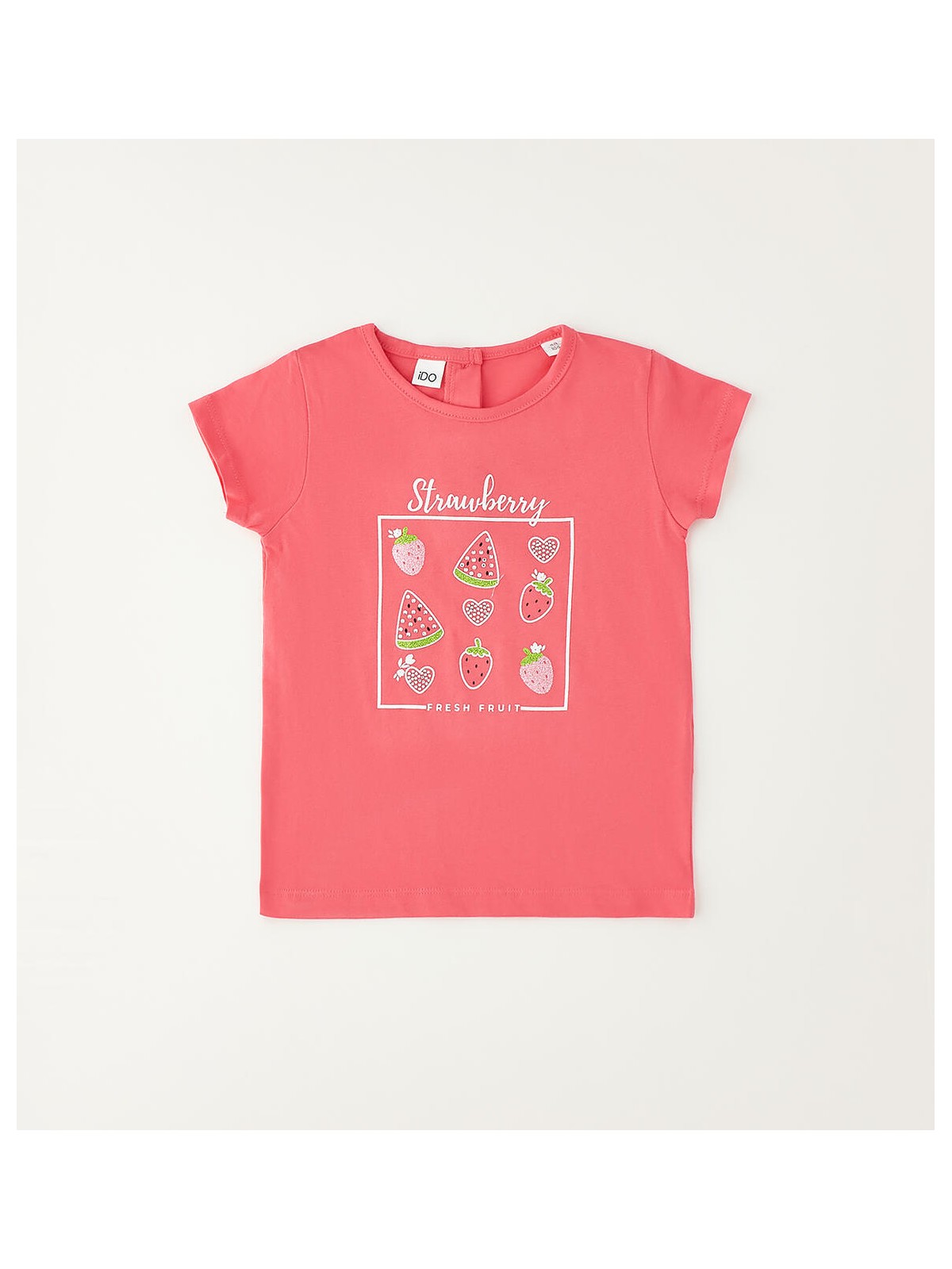 T-shirt per bambina iDO in jersey 100% cotone con stampa fragole.