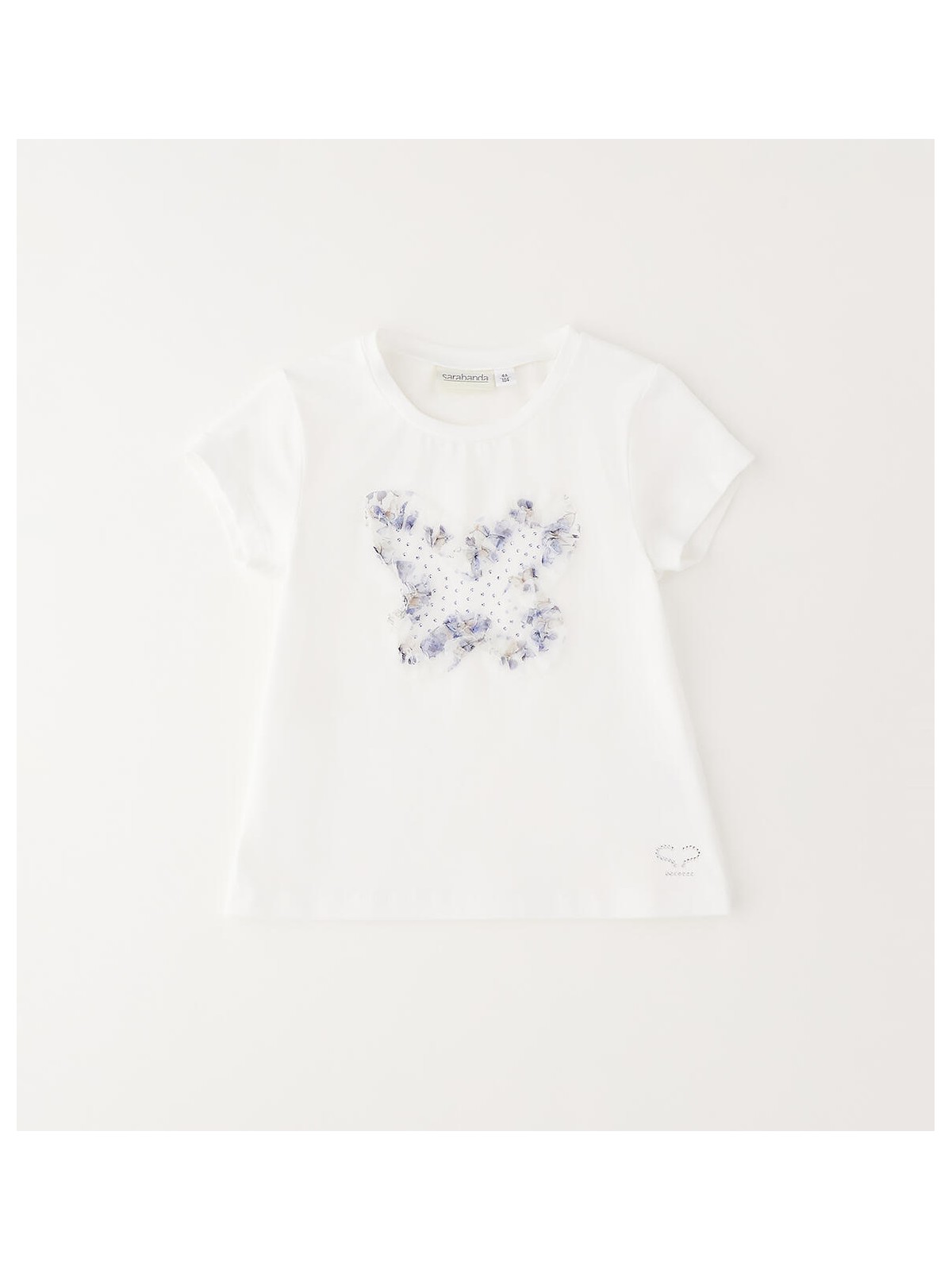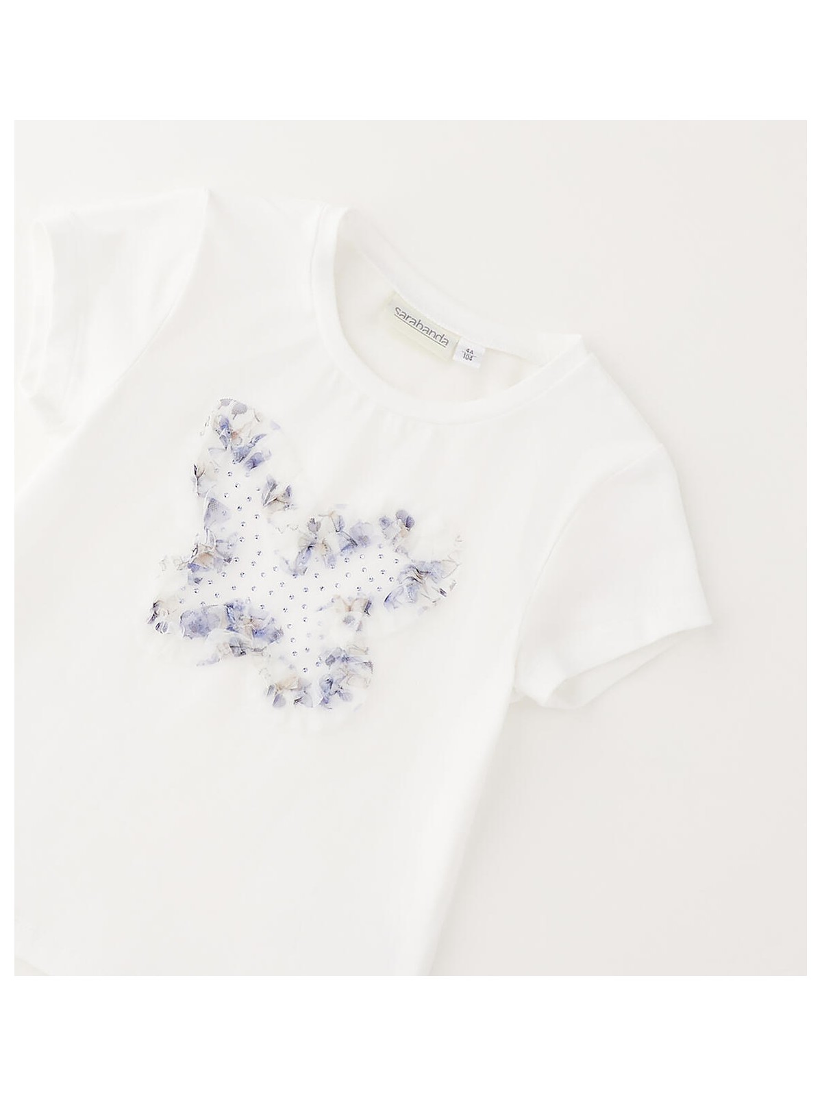 T-shirt per bambina Sarabanda realizzato in jersey stretch di cotone con applicazioni in tulle e strass