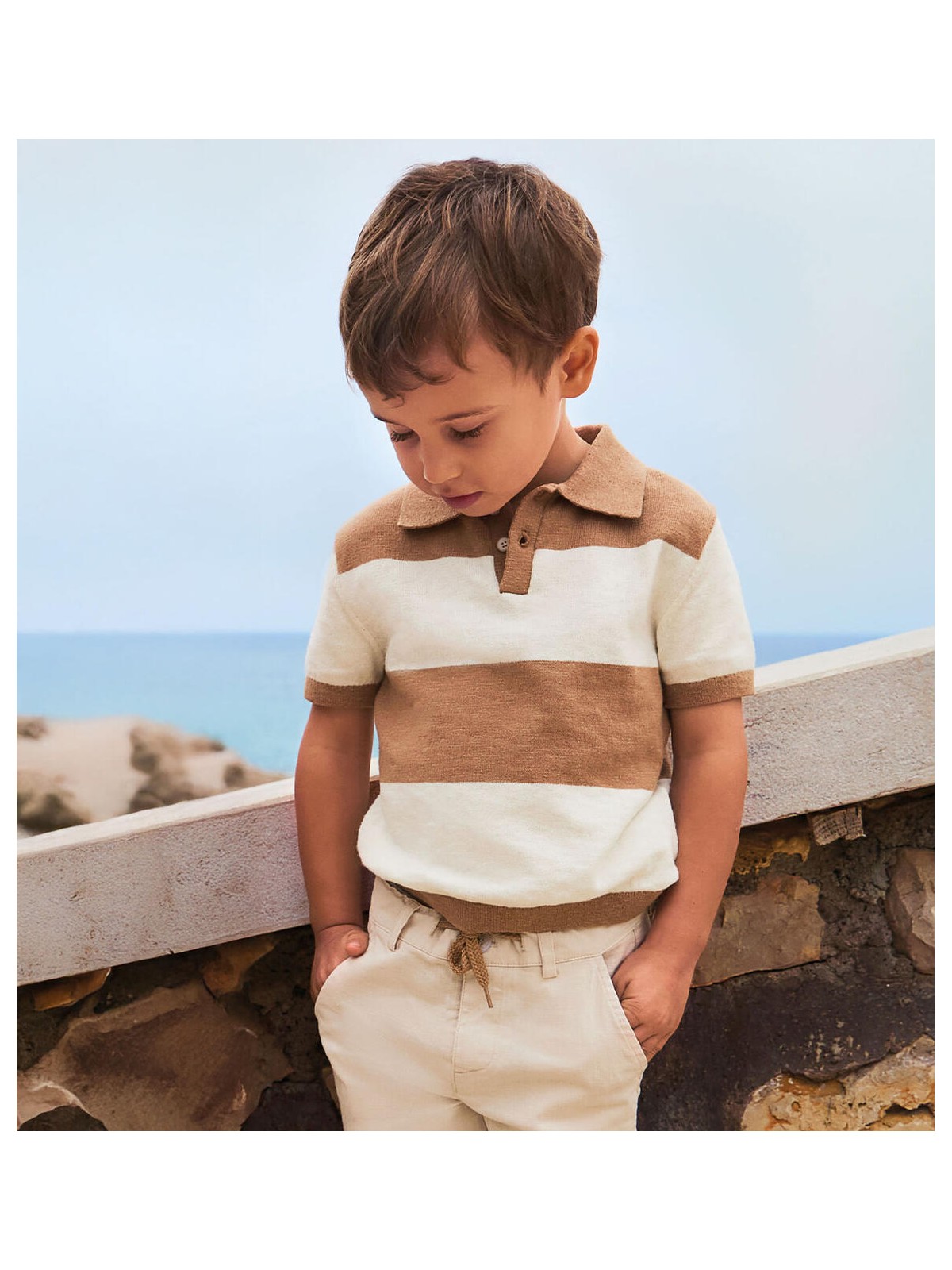 Polo in tricot per bambino Sarabanda con apertura tramite bottoni