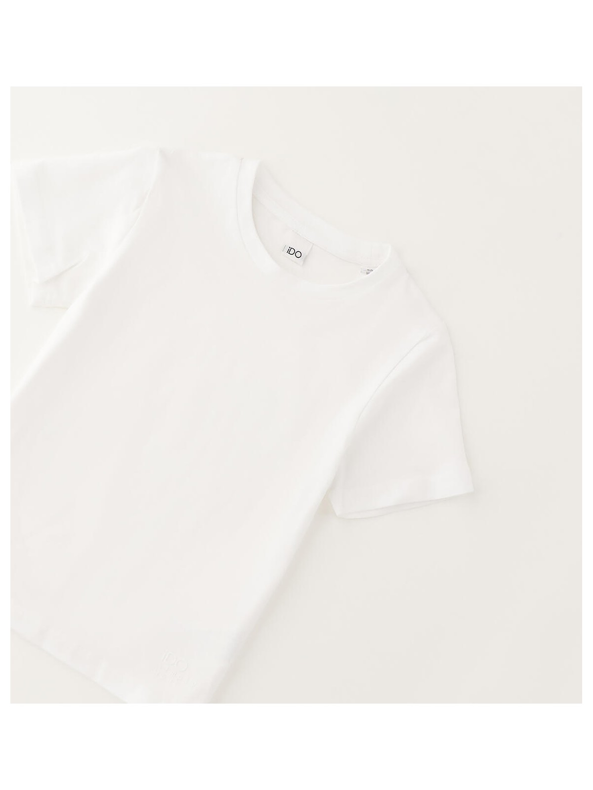 T-shirt per bambino iDO realizzata in jersey stretch di cotone con piccola stampa gommata tono su tono sul fondo.