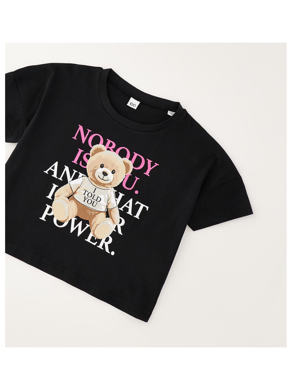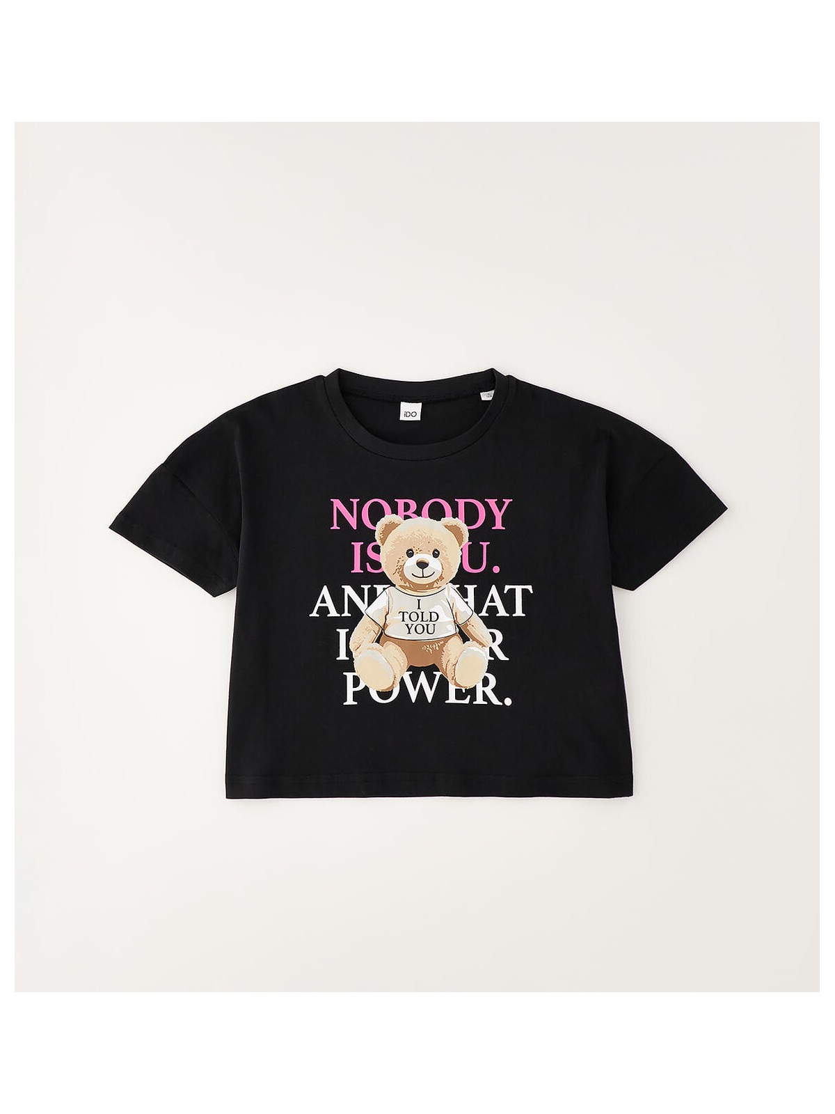 T-shirt per ragazza iDO realizzata in jersey 100% cotone con stampa scritta e orso