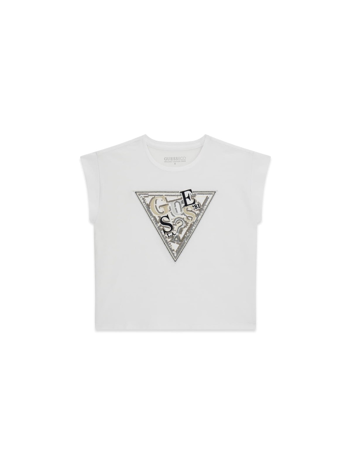 T-shirt in cotone, girocollo , mezza manica , logo frontale strass , vestibilità regular
