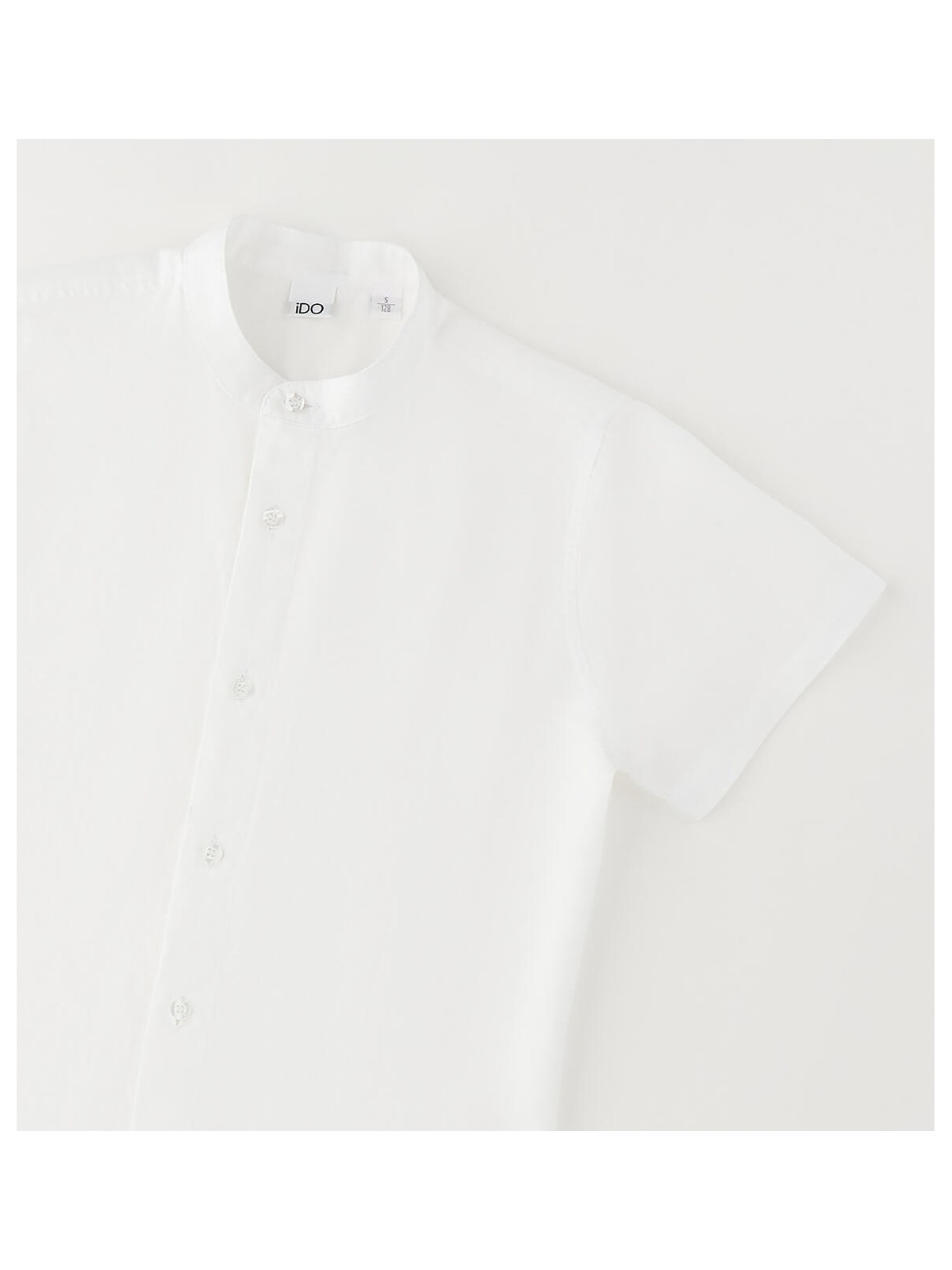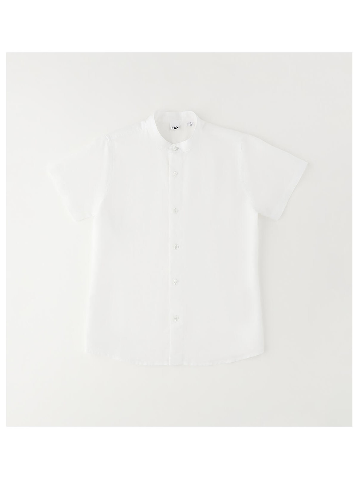 Camicia a manica corta per ragazzo iDO realizzata in lino e cotone. Collo alla coreana e apertura con bottoni