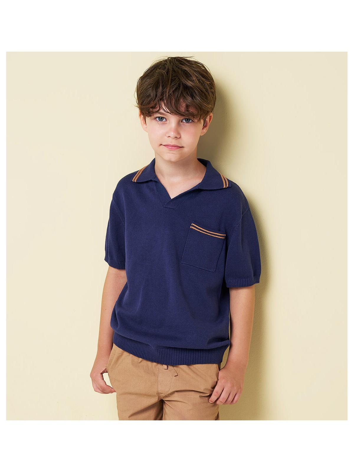 Maglia per ragazzo iDO realizzata in leggero tricot 100% cotone con taschino e dettagli a contrasto colore