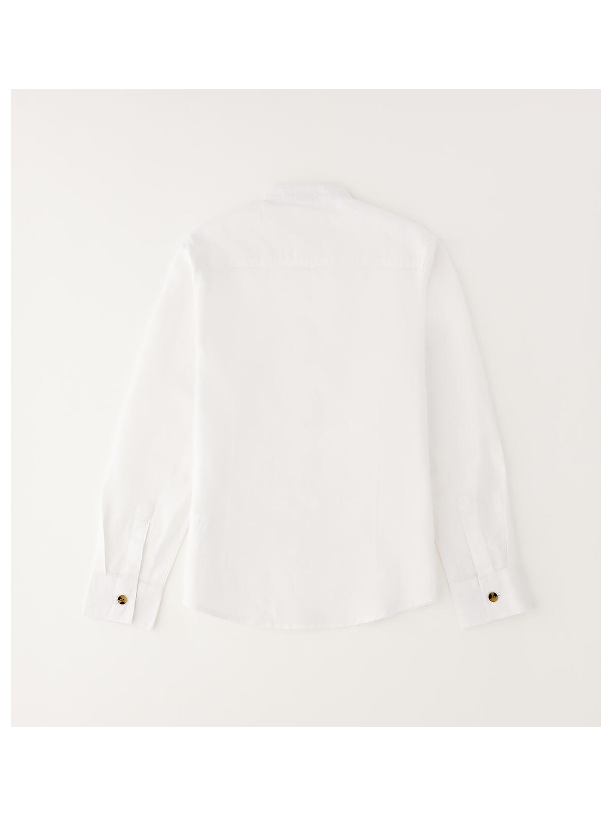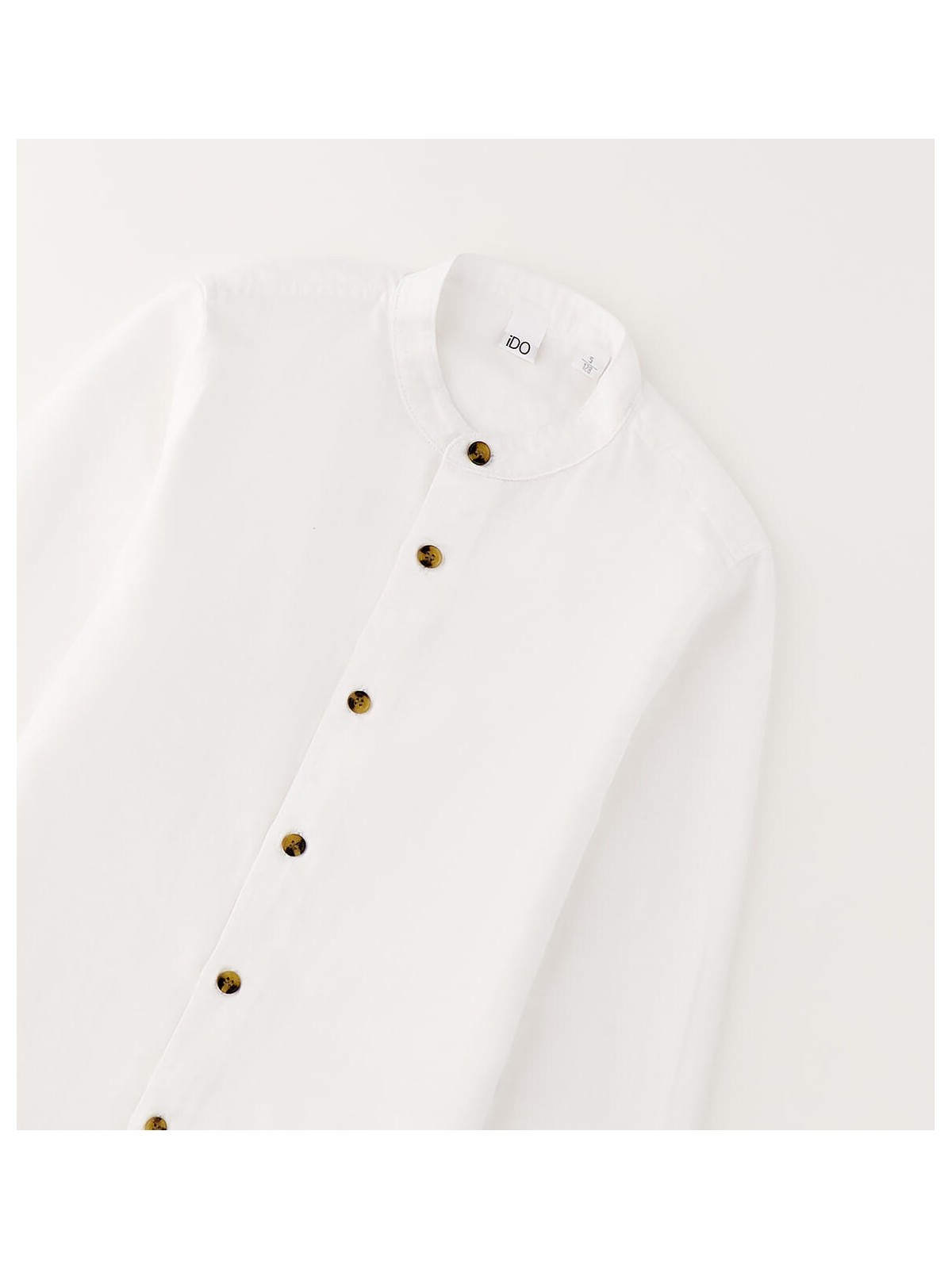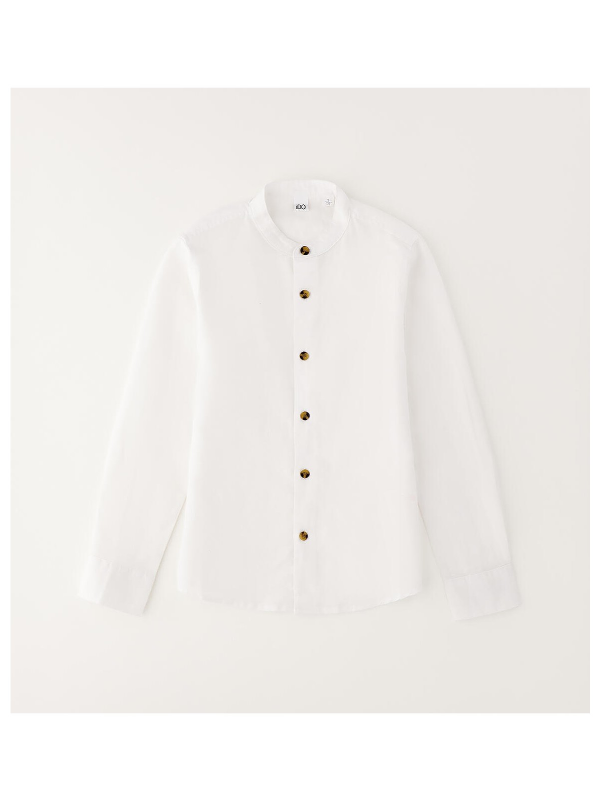 Camicia a manica lunga per ragazzo iDO realizzata in lino e cotone con colletto alla coreana. Modello avvitato