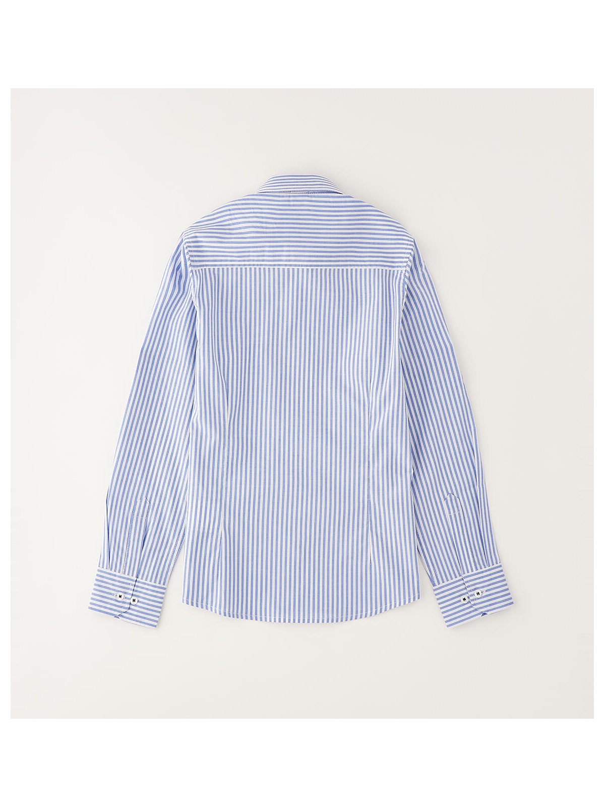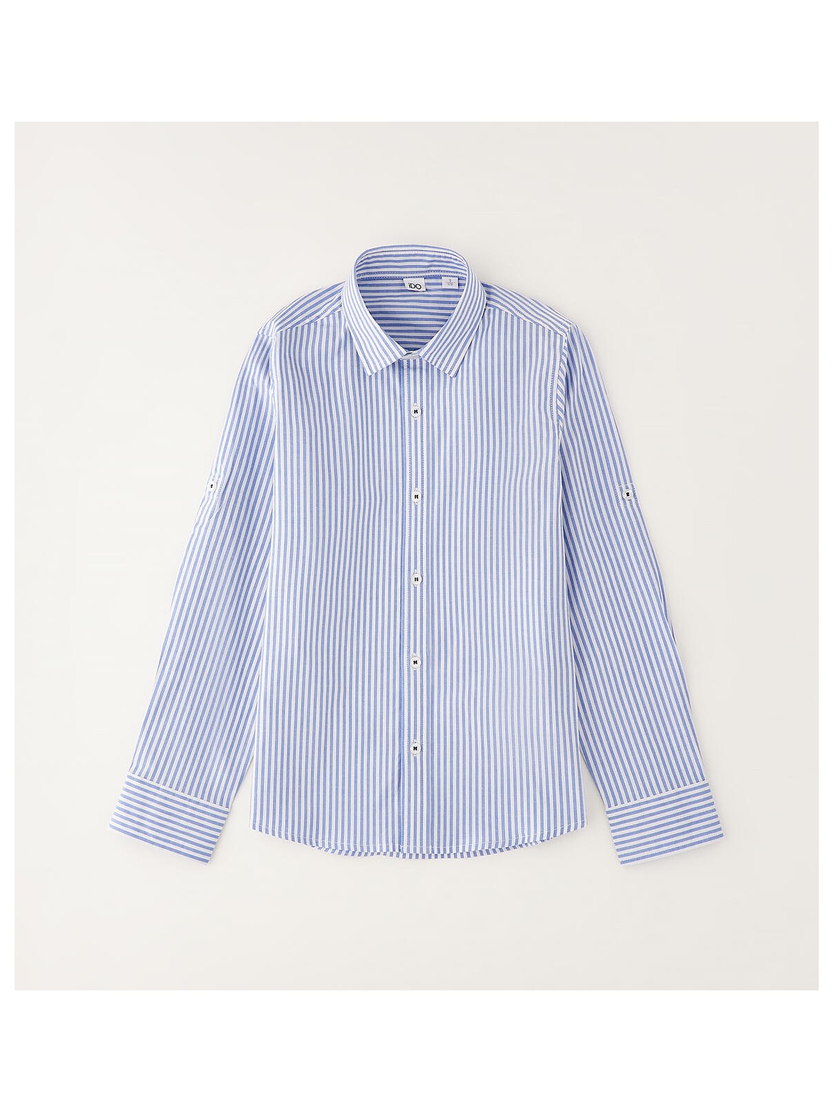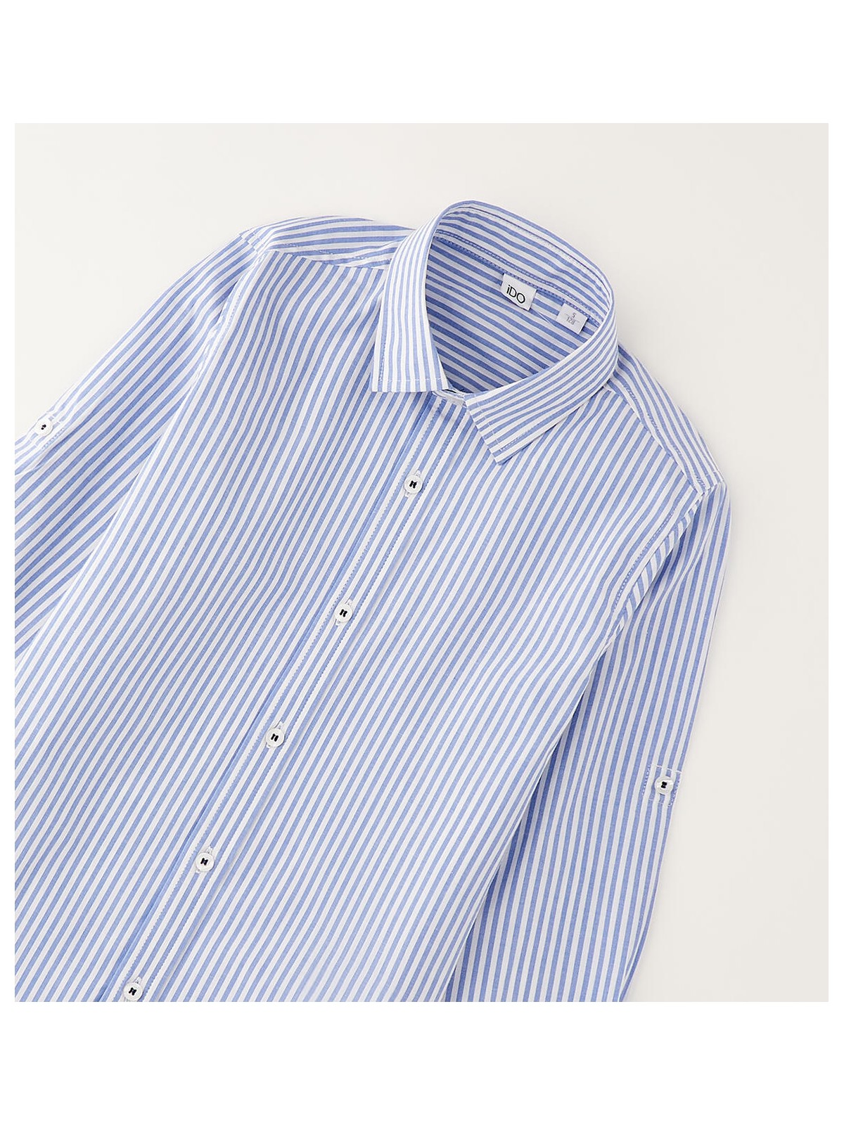 Camicia a manica lunga per ragazzo iDO realizzata in popeline stretch di cotone, dalla fantasia rigata. Bottone esterno sulla manica per la comoda realizzazione della manica corta