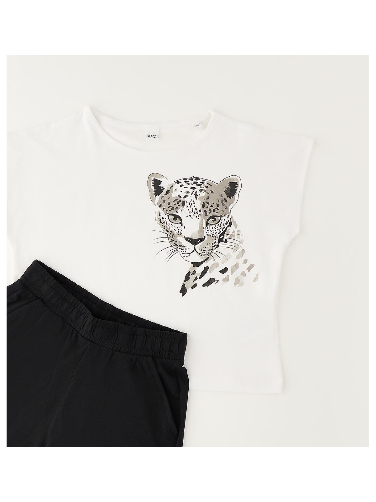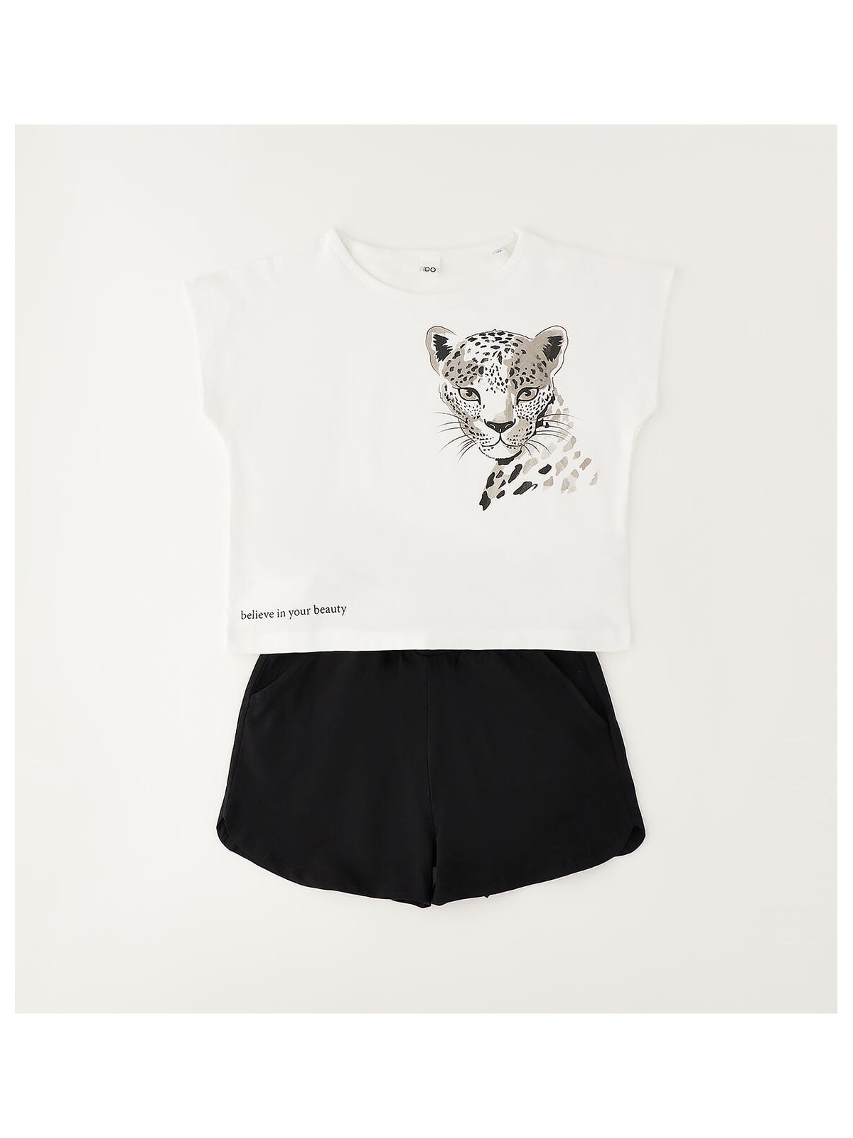 Completo a manica corta per ragazza iDO realizzato in jersey stretch di cotone con stampa tigre