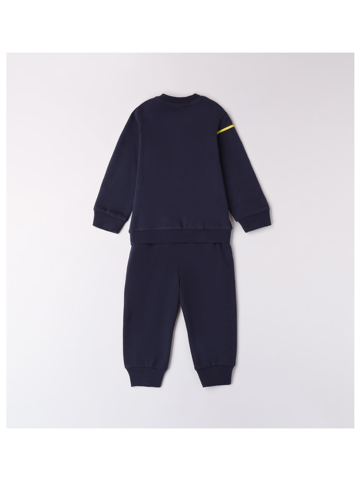 Tuta per bambino Sarabanda 9 mesi - 8 anni realizzata in jersey pesante felpato. Il modello è composto da felpa e pantalone. La felpa è girocollo ed è in fantasia tinta unita. Il pantalone ha vita elasticizzata con coulisse tono su tono e polsini elasticizzati sul fondo