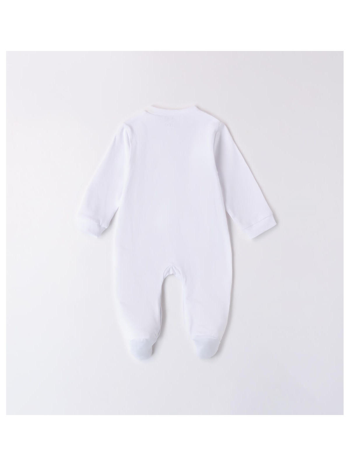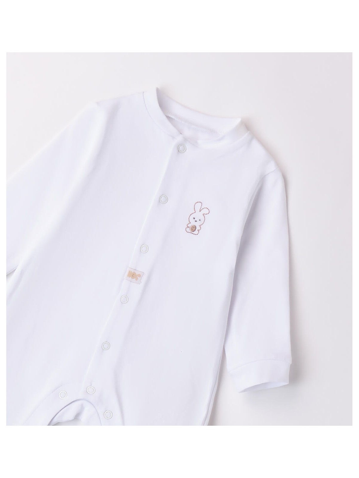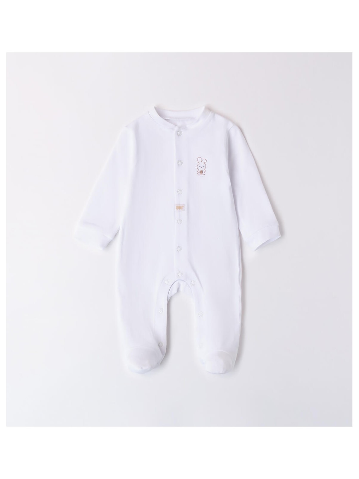 Tutina neonati in jersey stretch di cotone. Il modello unisex presenta apertura frontale e nel sottogamba con bottoni a pressione per agevolare il cambio e la vestizione, tinta unita.