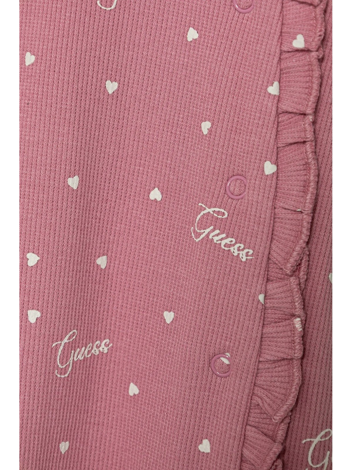 Set neonata 2 pezzi in maglia a costine caldo cotone. Tutina girocollo, maniche lunghe e chiusura con bottoni. Stampa logo e cuori. Fascetta per capelli abbinata .