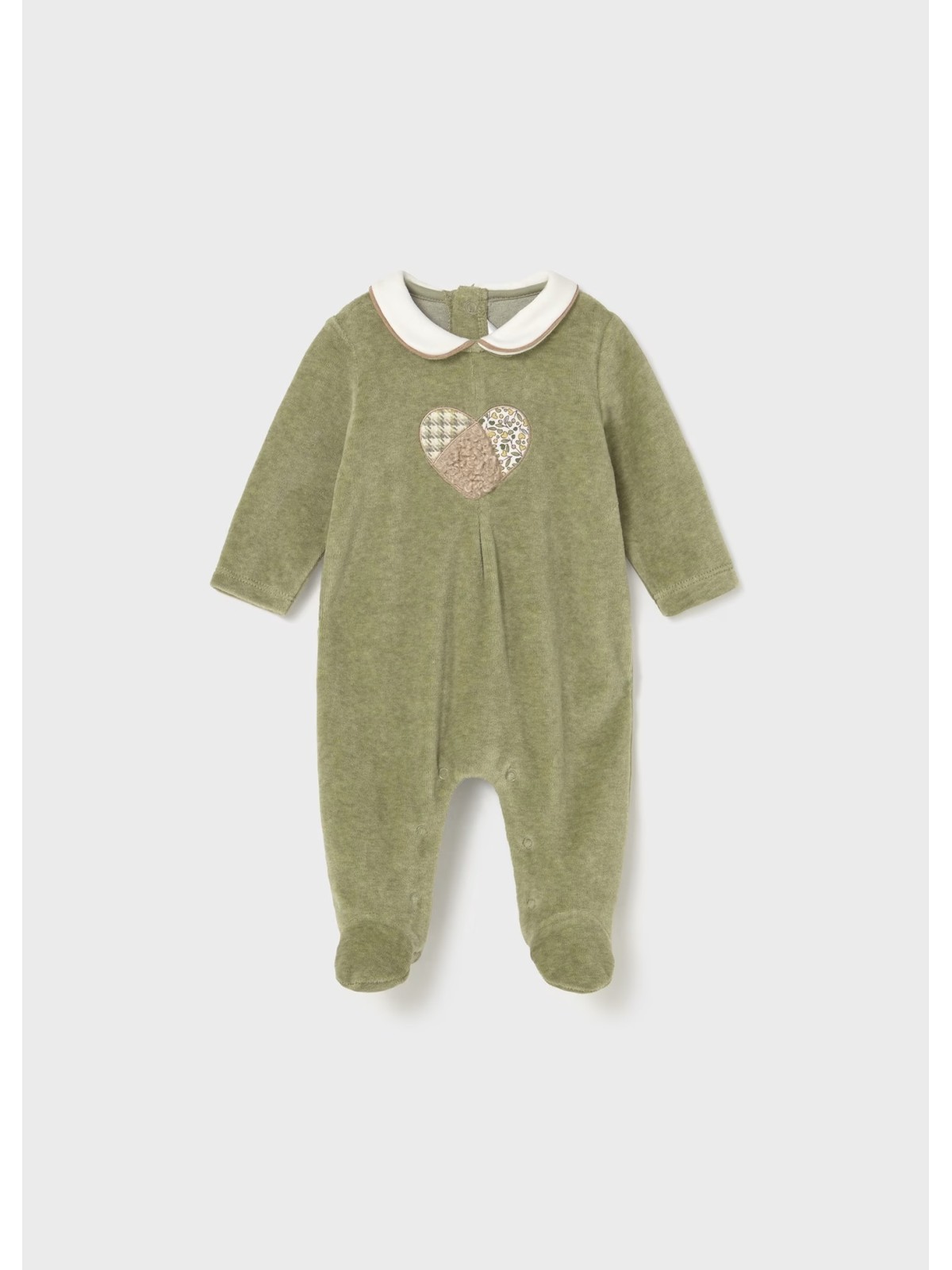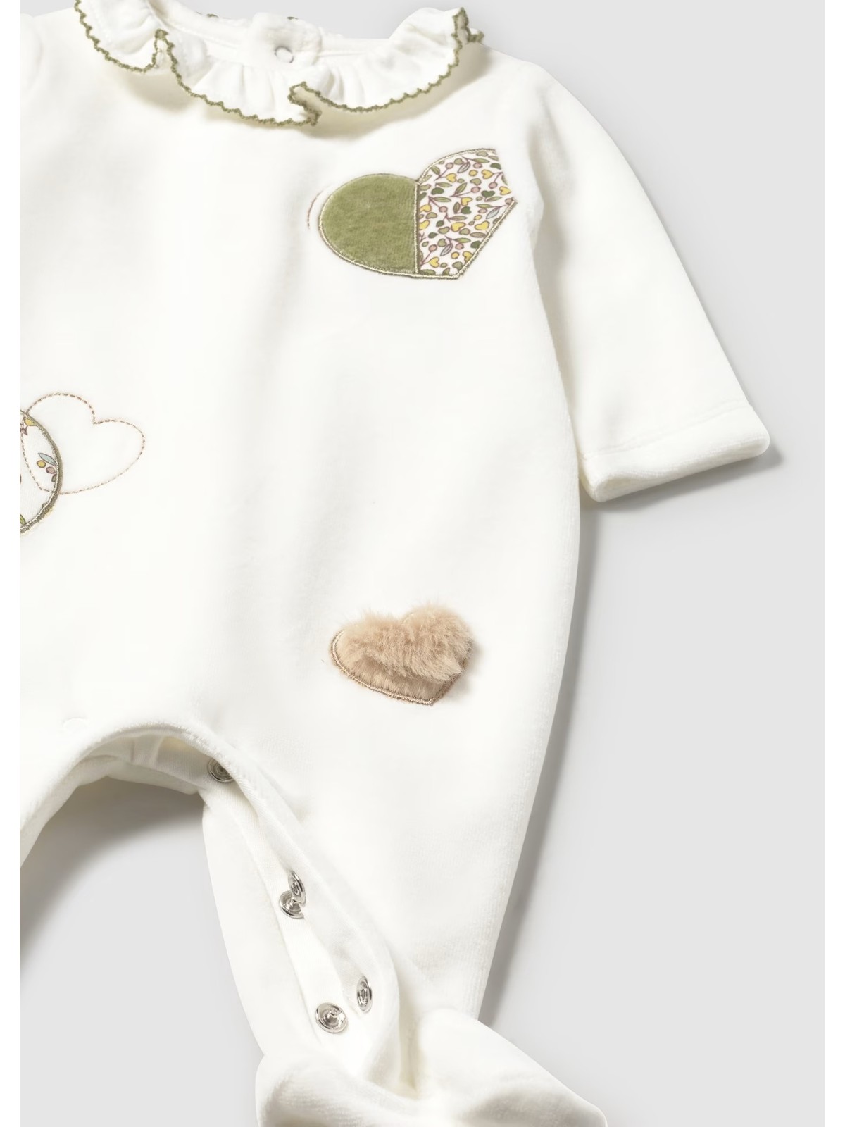 Tuina manica lunga per neonata in ciniglia. Chiusura con bottoni a pressione nella parte posteriore. Chiusura con bottoni a pressione nell'interno cosce per agevolare la vestibilità. Due varianti disponibli .Elementi decorativi: applicazioni decorative, ricami.