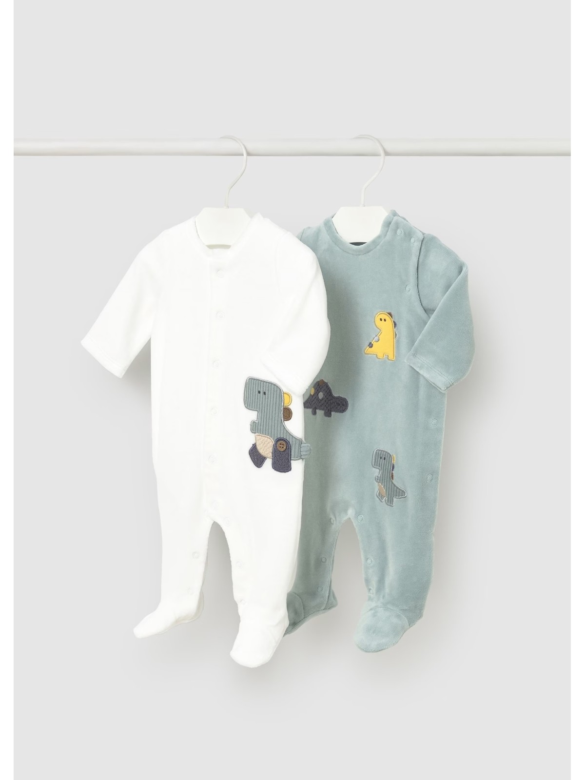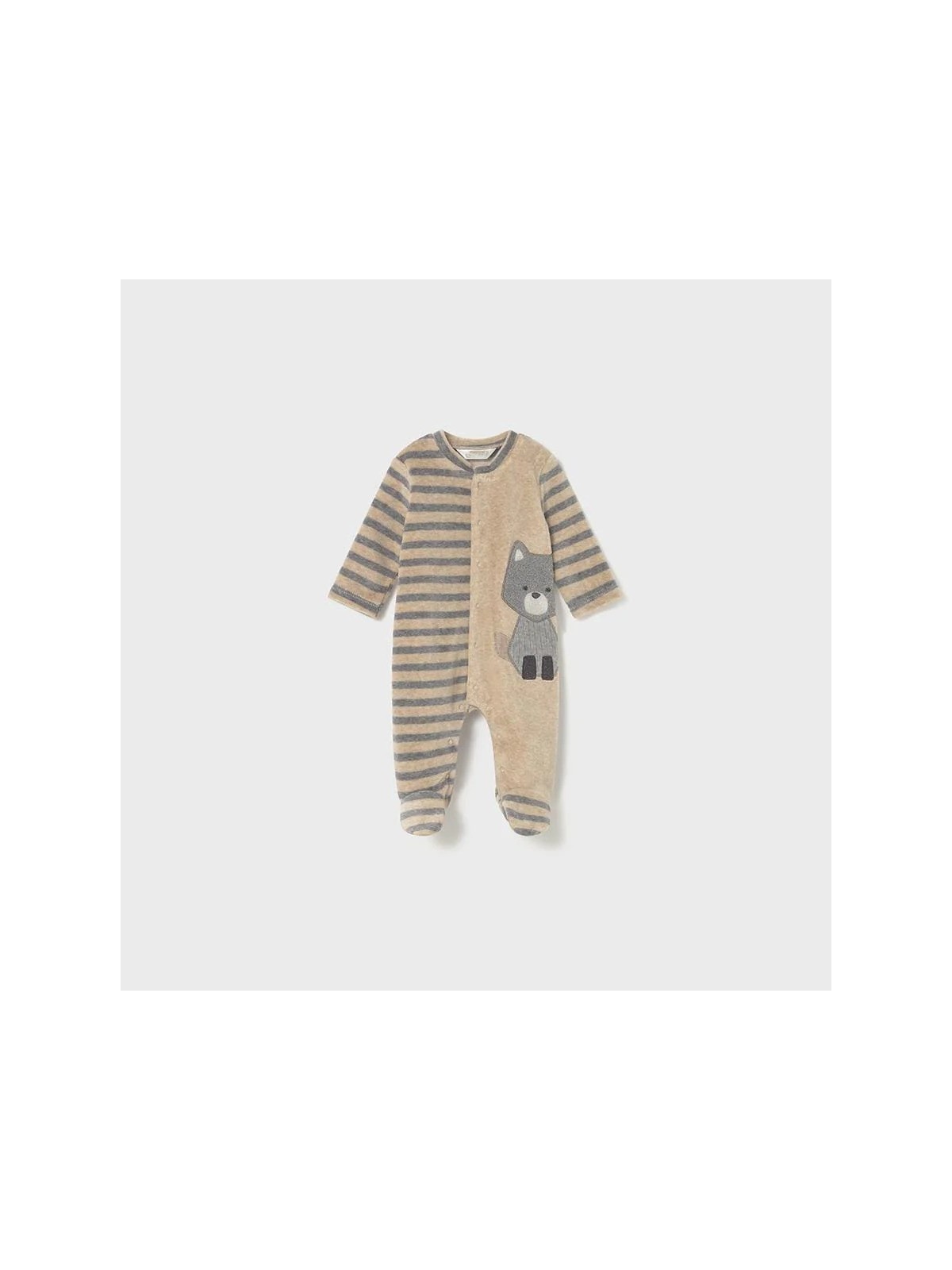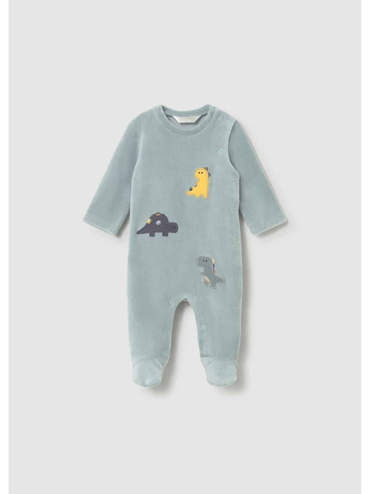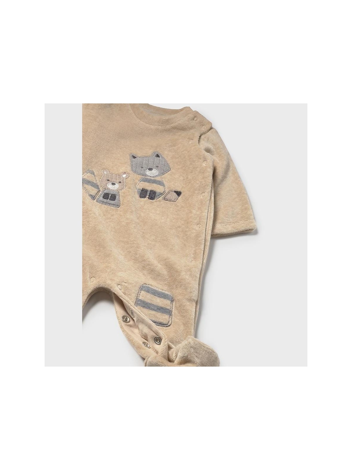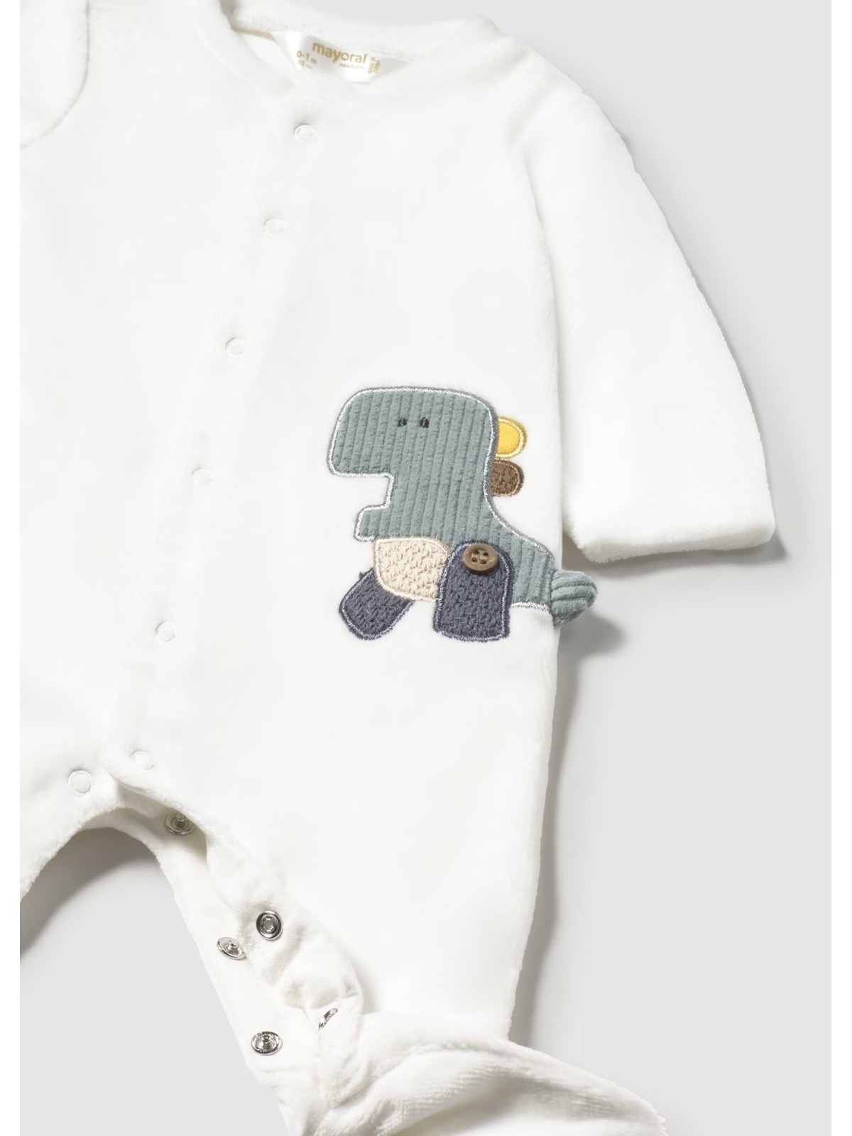 Tutina in ciniglia manica lunga per neonato. Girocollo.  Chiusura con bottoni a pressione nella parte anteriore. Chiusura con bottoni a pressione nell'interno cosce per agevolare la vestibilità. Elementi decorativi: ricami. Quattro varianti disponibli.