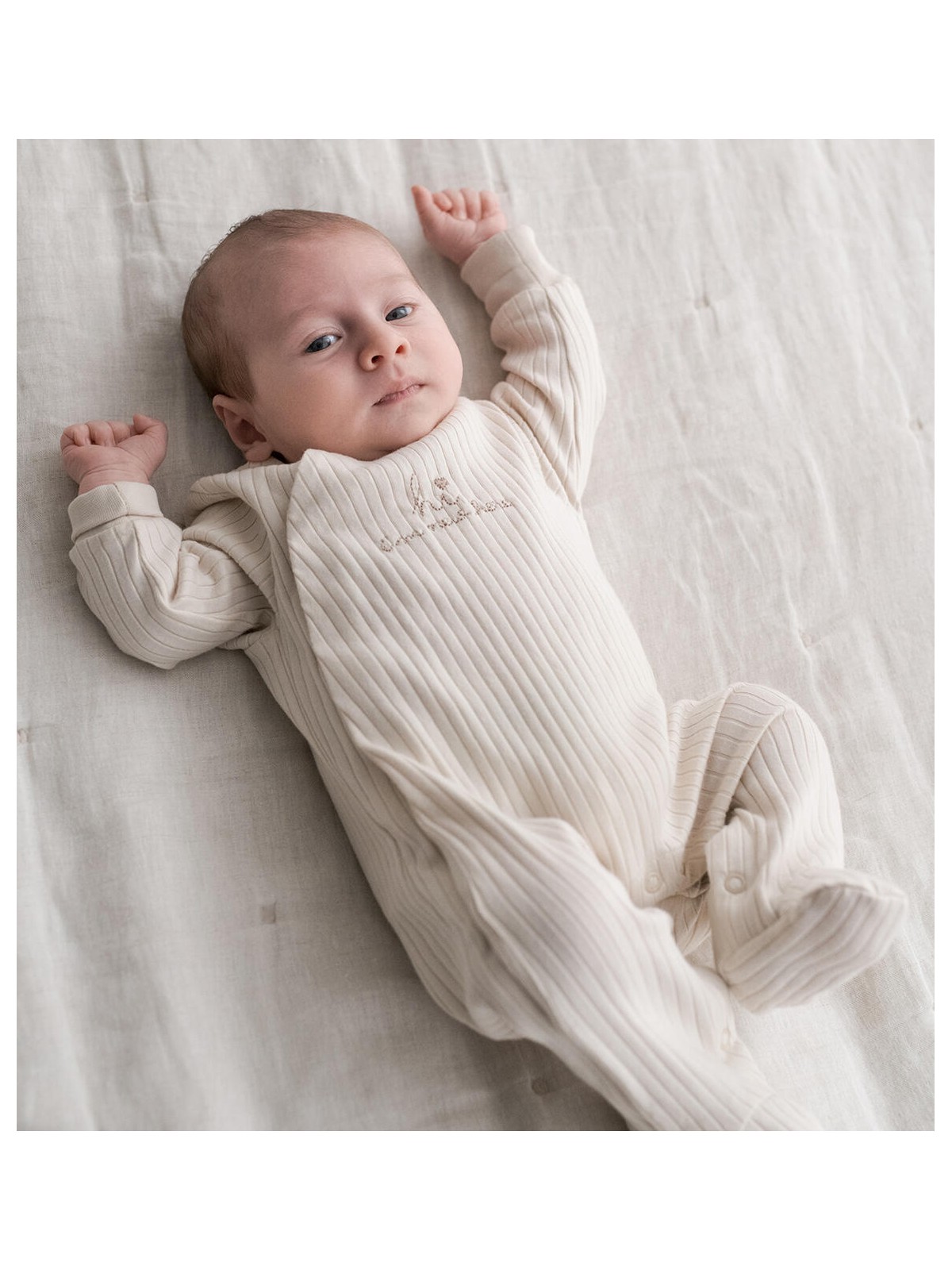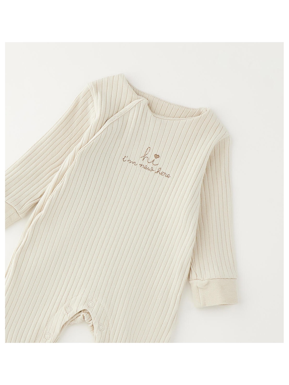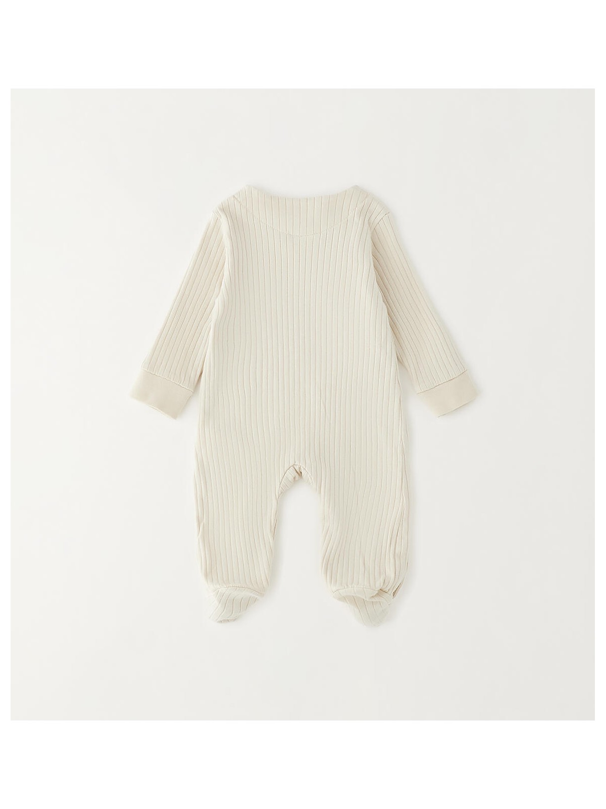 Tutina per neonati in costina 100% cotone. Modello unisex con apertura davanti e nel sottogamba con bottoni a pressione per agevolare il cambio e la vestizione. Ricamo davanti.