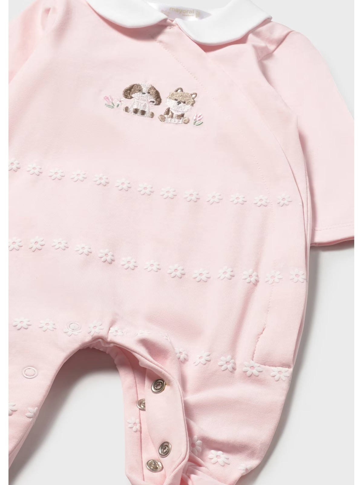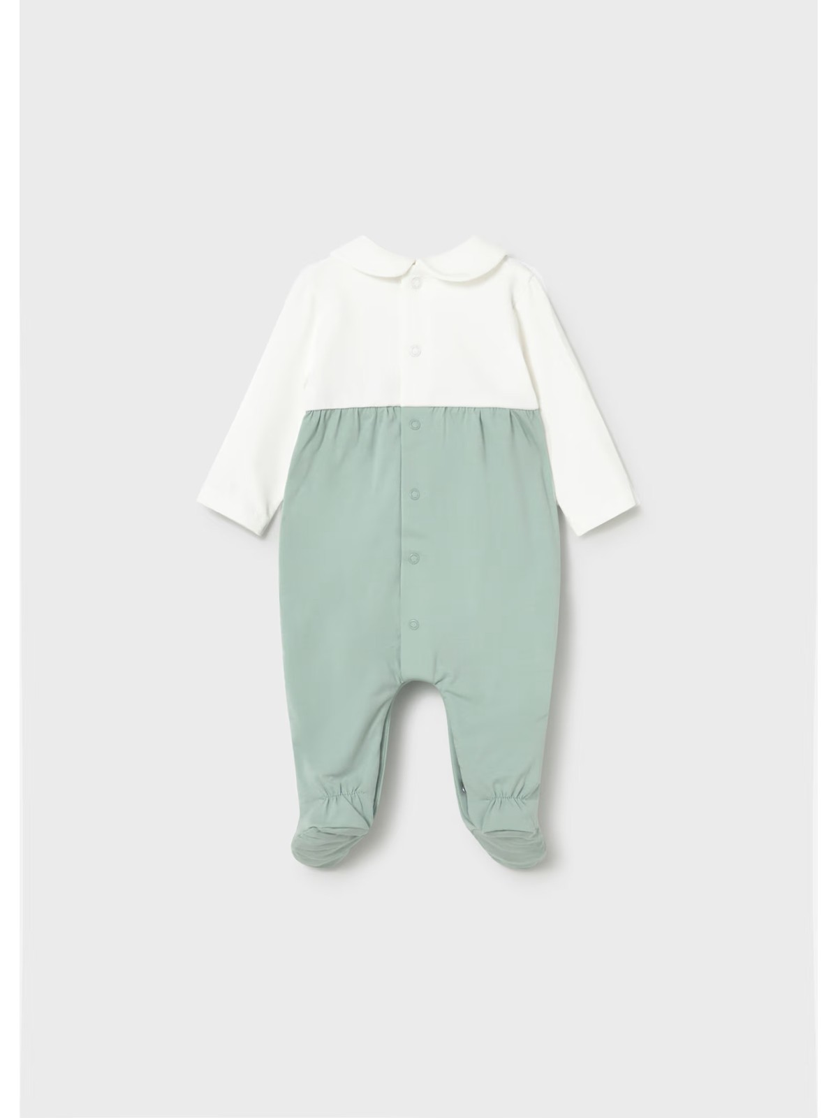 Tutina manica lunga per neonata girocollo in cotone . Chiusura con bottoni a pressione nella parte anteriore. Chiusura con bottoni a pressione nell'interno cosce per agevolare la vestibilità. Quattro varianti disponibili.